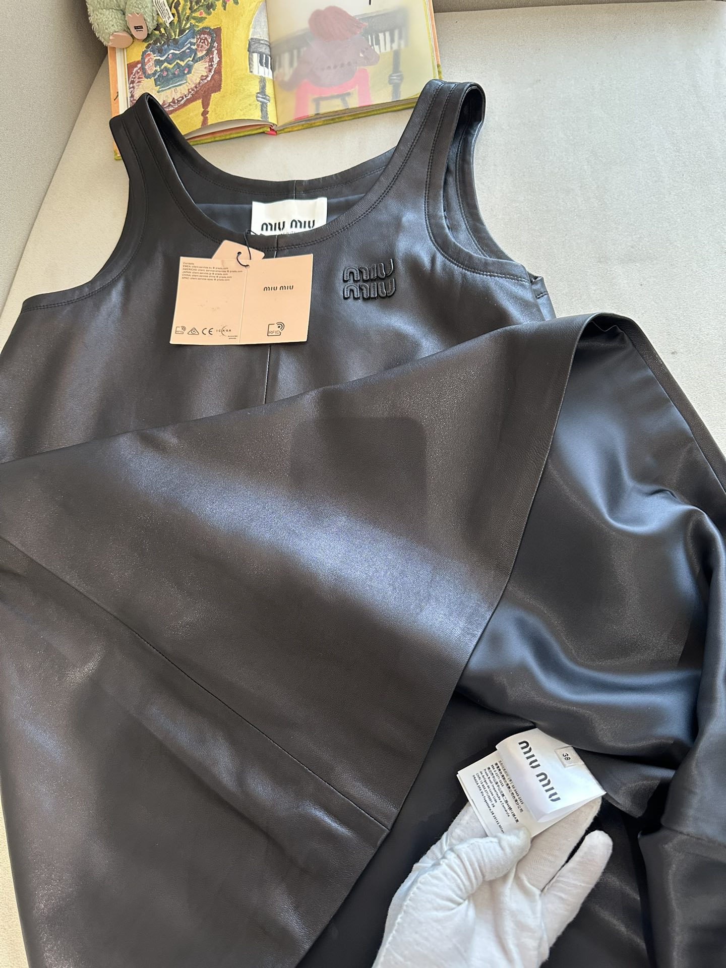 Элегантное платье от Miu Miu выполнено из высококачественной новозеландской овчины, что обеспечивает мягкость, комфорт и благородный внешний вид. Минималистичный, но стильный дизайн в актуальном черном цвете подчеркивает изящество и современность образа.