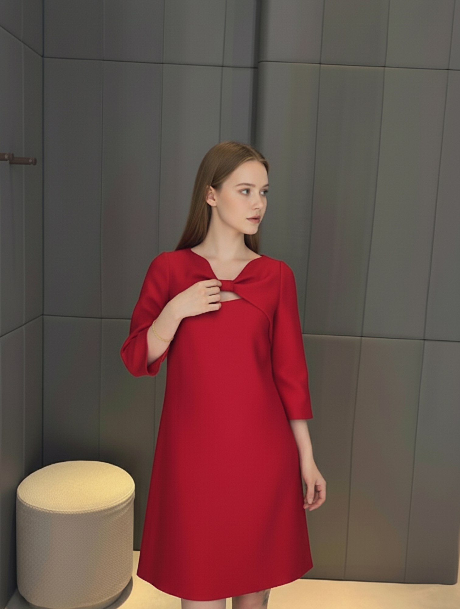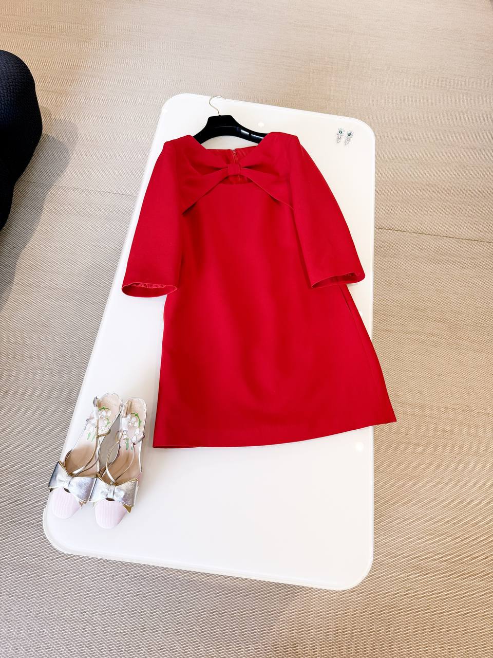 Элегантное женское платье Valentino насыщенного красного цвета — идеальный выбор для торжественных выходов и вечерних мероприятий. Сдержанный, немного расклешённый силуэт и выразительная деталь — крупный плоский бант — создают женственный и запоминающийся образ.