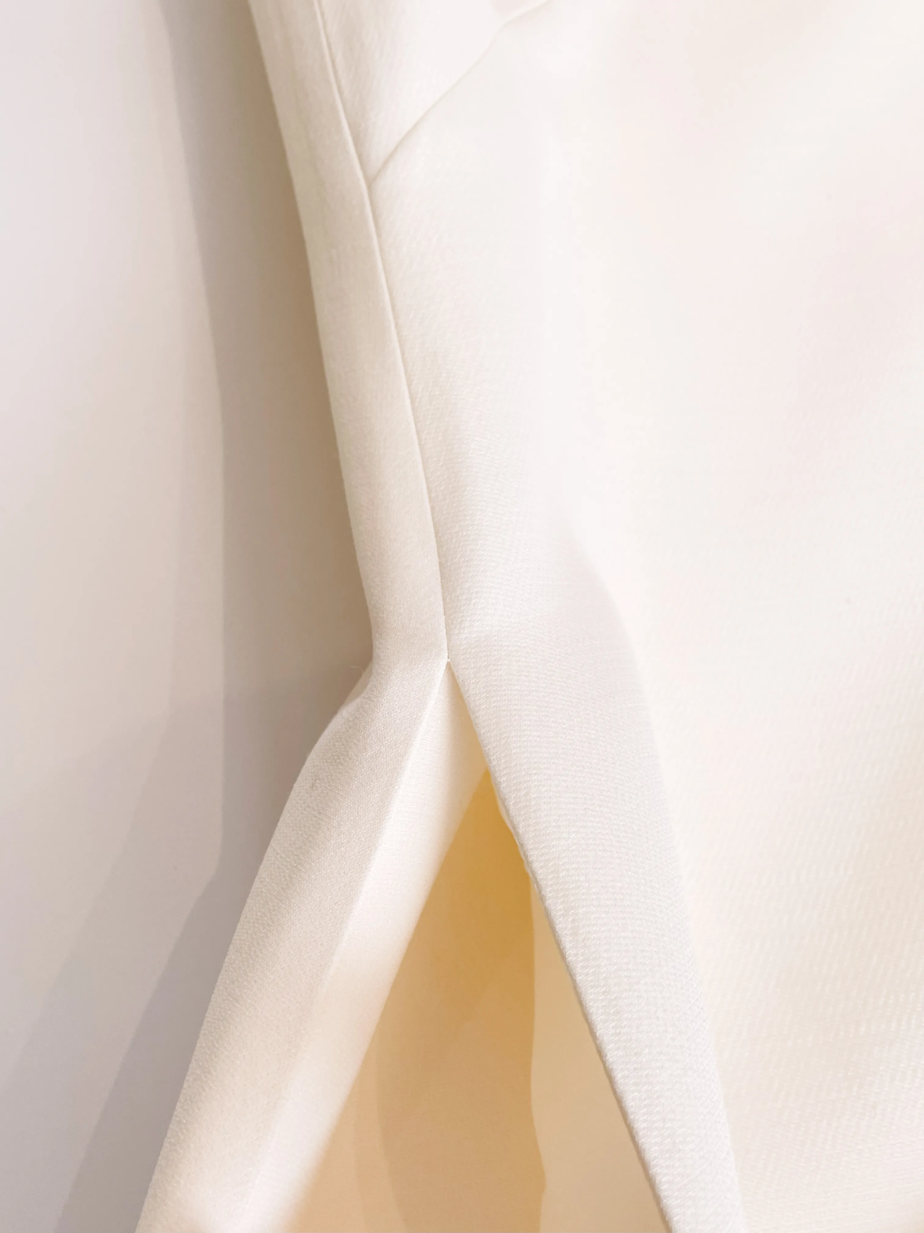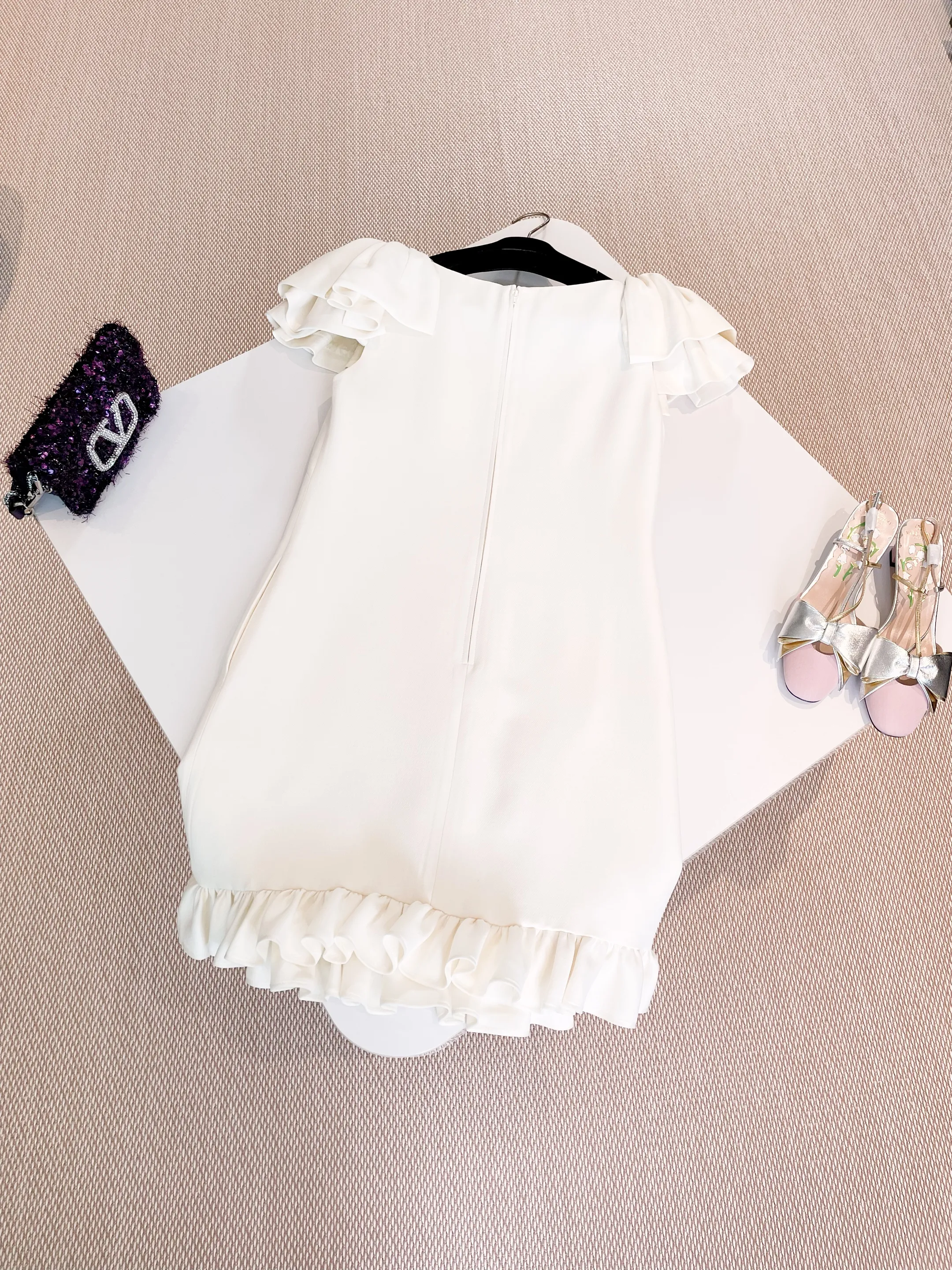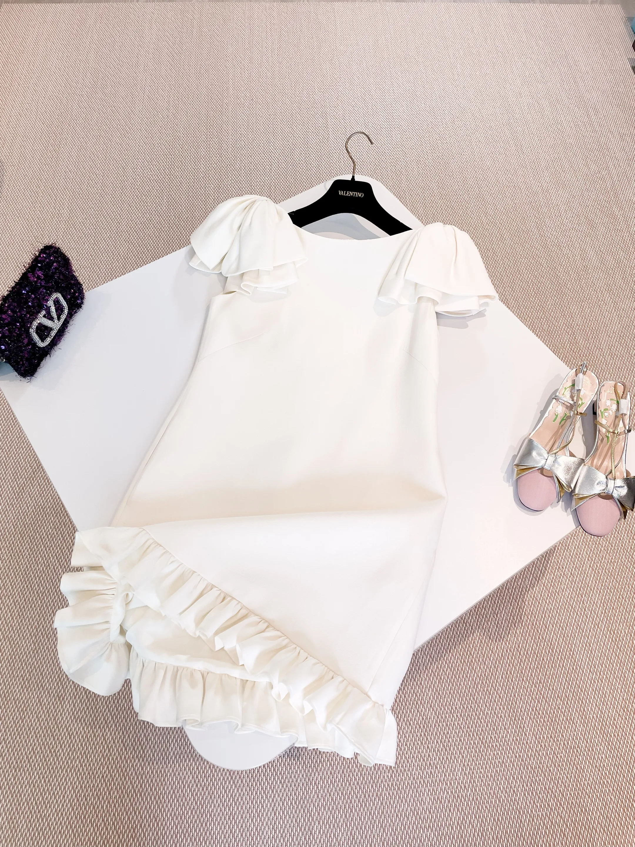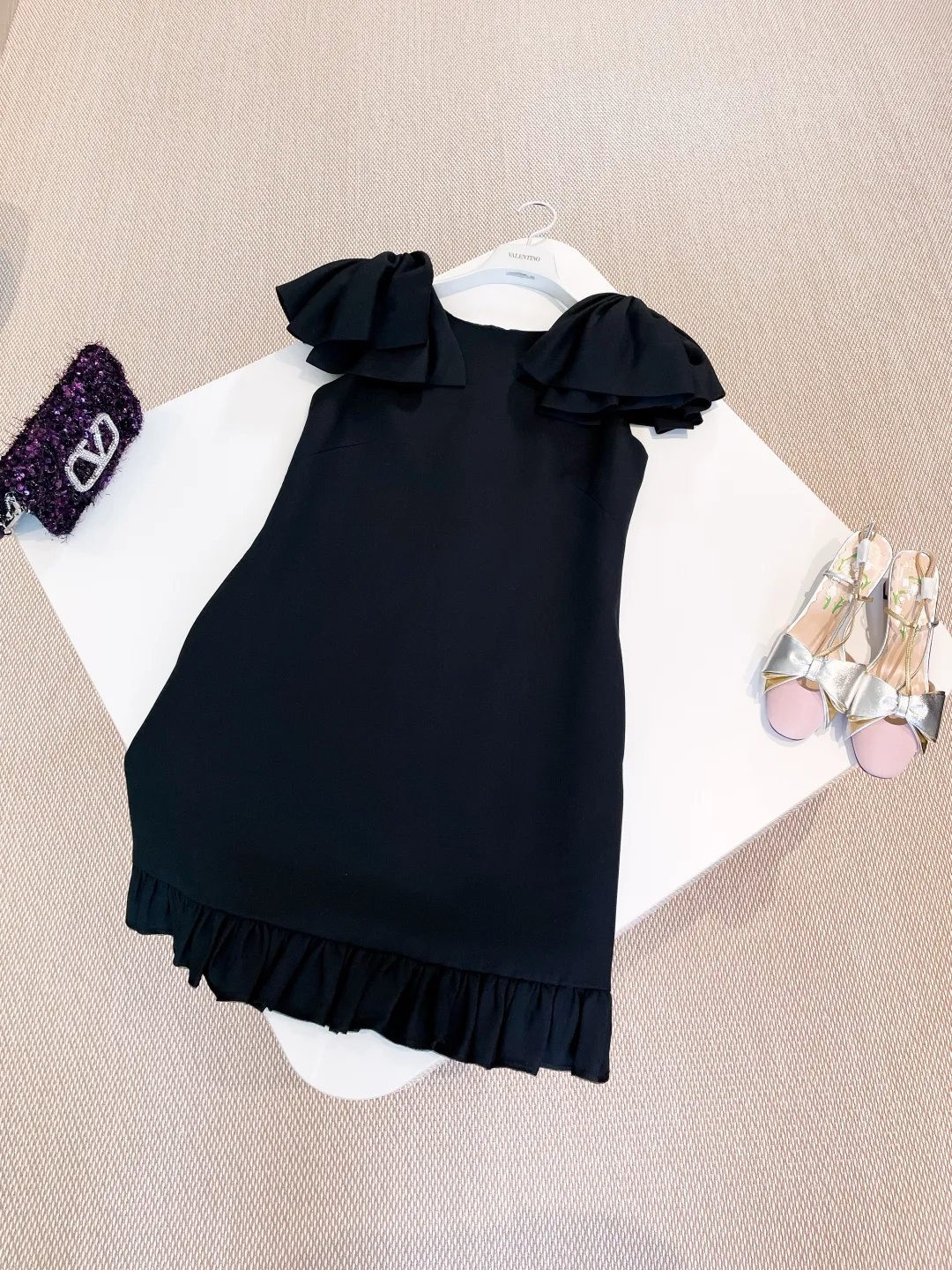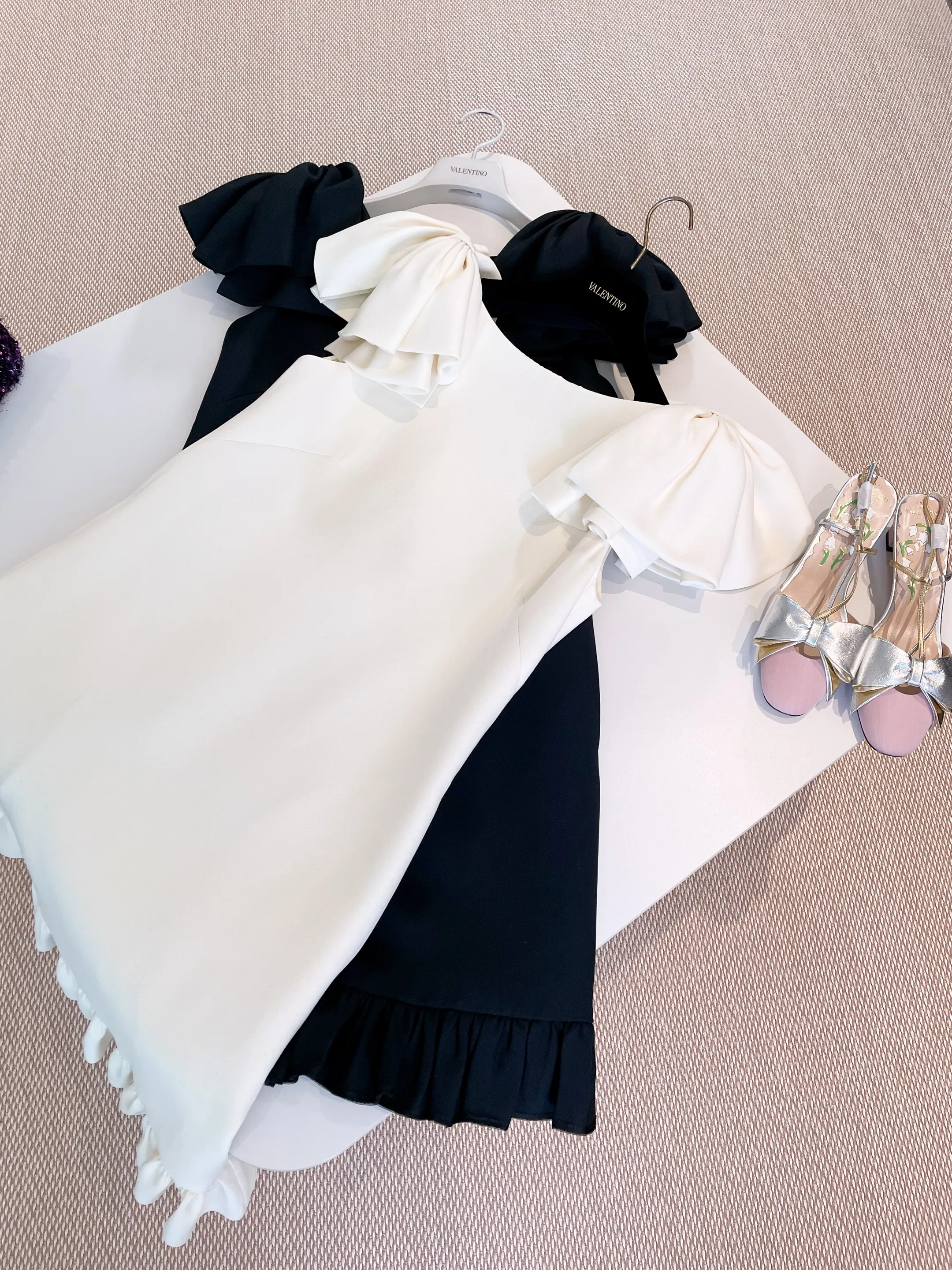 Встречайте весну и лето в этом элегантном платье, созданном из изысканного сочетания шелка и шерсти. Плотная, фактурная ткань придает платью неповторимый шарм. Два объемных, трехмерных банта на плечах, выполненных вручную и дополненных кружевом, создают уникальный и запоминающийся образ. Французский шелковый топ, служащий подкладкой, дарит ощущение роскоши и комфорта.