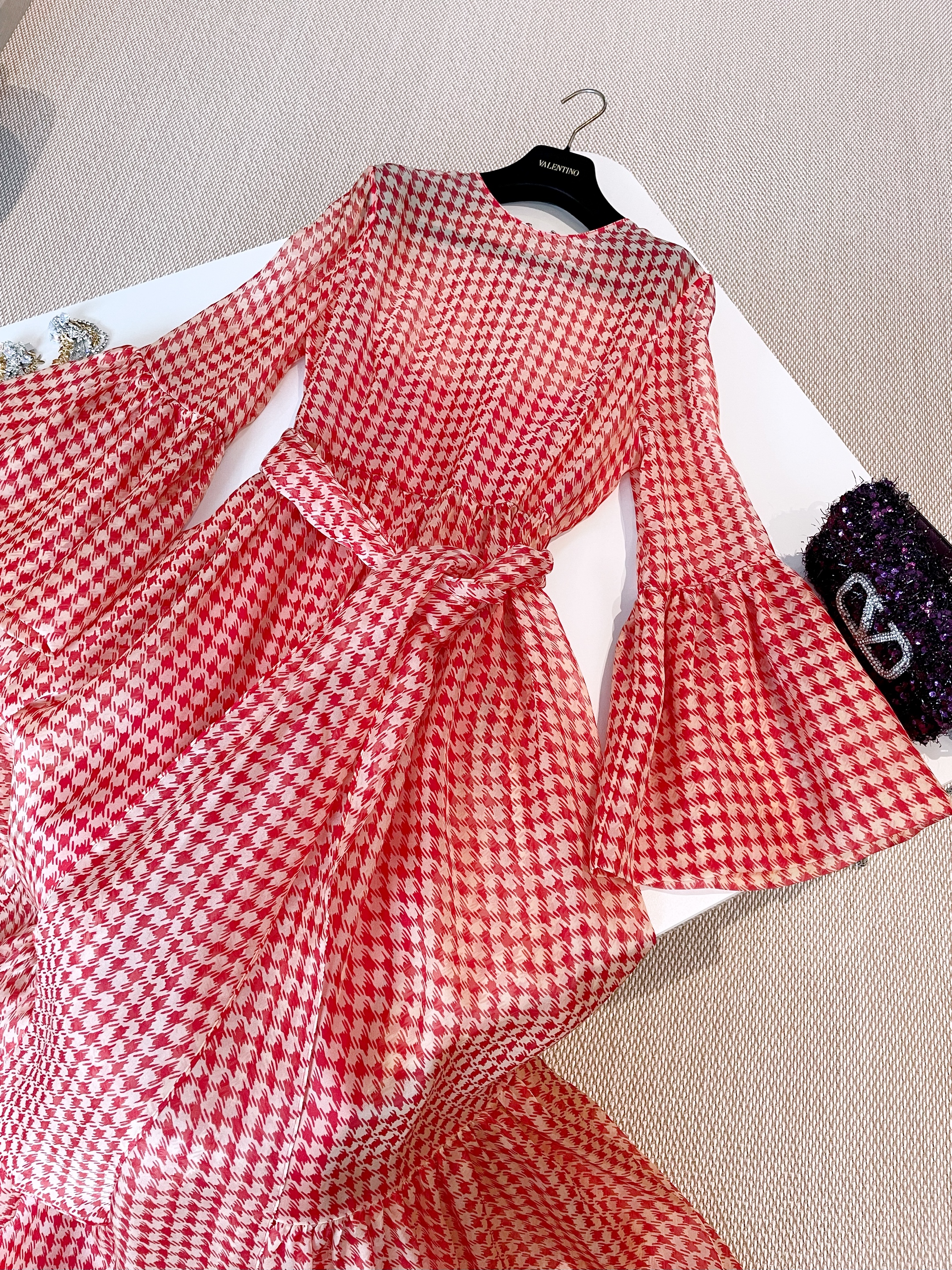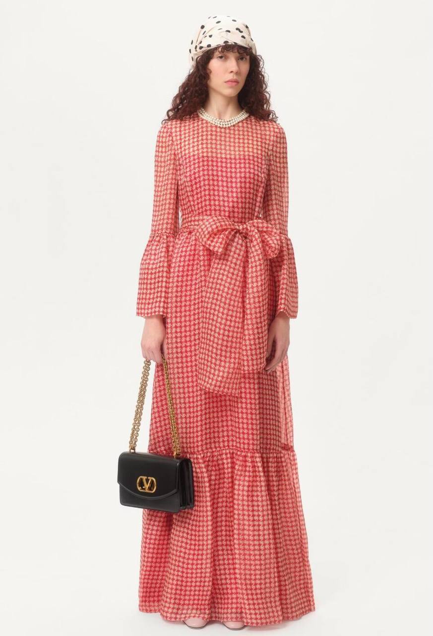 Платье из органзы и шелка с узором «гусиные лапки» для весенне-летнего сезона – это идеальное сочетание элегантности и утонченного стиля. Подкладка из органзы и шелка YB обеспечивает комфорт и легкость в носке, а объемный пошив создает изысканный силуэт. Юбка со съемными подтяжками из атласного шелка добавляет нотки ретро и позволяет варьировать образ в зависимости от настроения или повода. Свободные расклешенные рукава придают платью воздушность и романтичность, подчеркивая благородство верхней части тела.