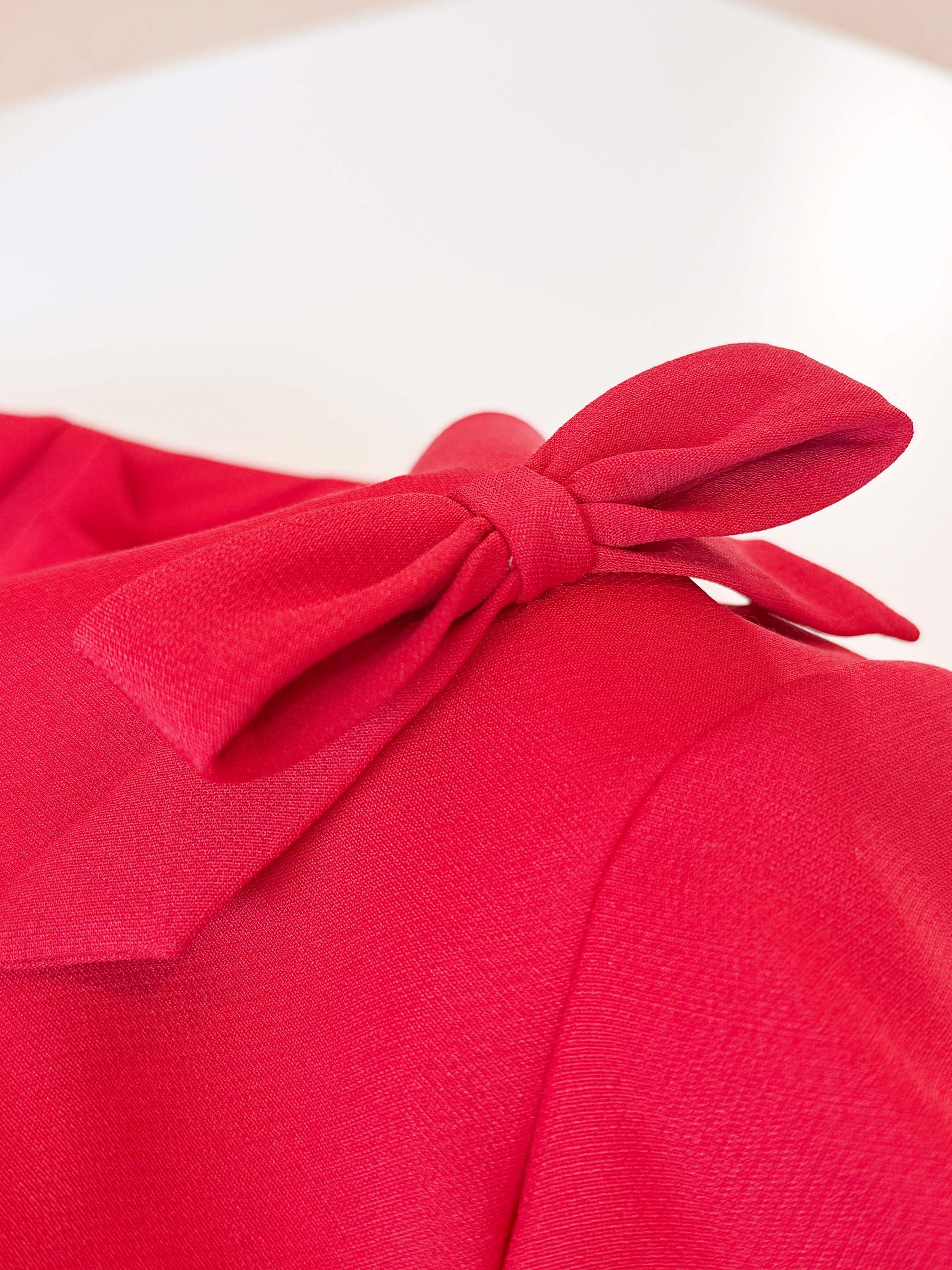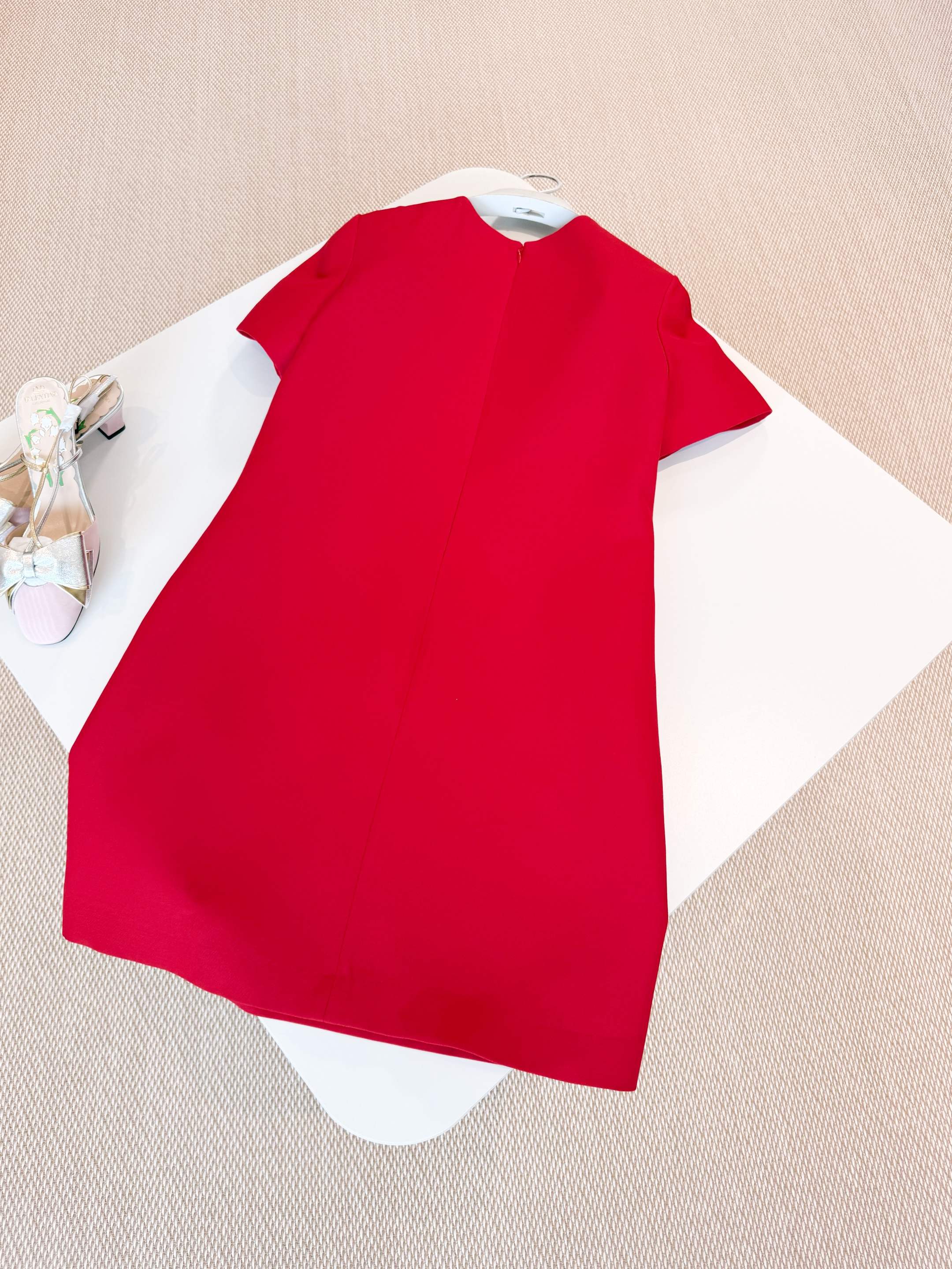 Короткие рукава и лаконичный прямой крой создают утончённый силуэт, а оригинальные декоративные элементы на плечах придают платью особый шарм. Идеально подойдет как для дневных выходов, так и для особых случаев.