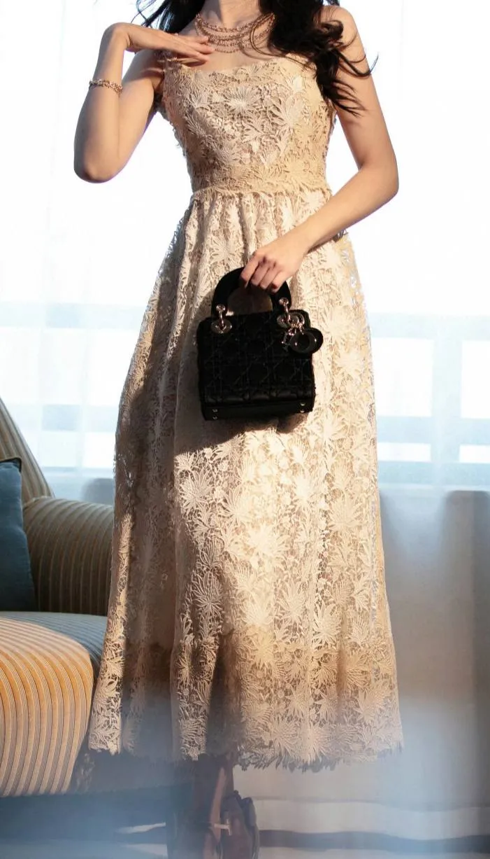 Окунитесь в мир волшебства с платьем от Zimmermann, словно сотканным из лунного света. Это не просто платье, а настоящее произведение искусства, где каждая деталь – это кропотливая работа и вдохновение природой. Нежный молочно-белый цвет, деликатно укрывающий вас ажурной вышивкой. Ткань, словно холст, расцветает филигранными узорами, создавая объемную, четкую и стильную картину. Платье элегантно облегает фигуру, подчеркивая изящество силуэта. Потайная молния на спине обеспечивает безупречную посадку и комфорт. В этом наряде вы почувствуете себя настоящей феей, одновременно нежной, утонченной и уверенной в себе.
