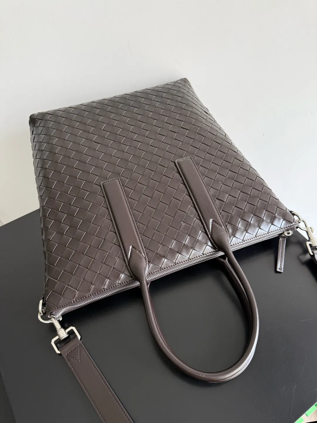 Мужская сумка от Bottega Veneta из телячьей кожи — воплощение элегантности и фирменного итальянского стиля. Аксессуар выполнен вручную с использованием культовой техники Intrecciato, благодаря чему изделие приобретает уникальную текстуру и дополнительную прочность.