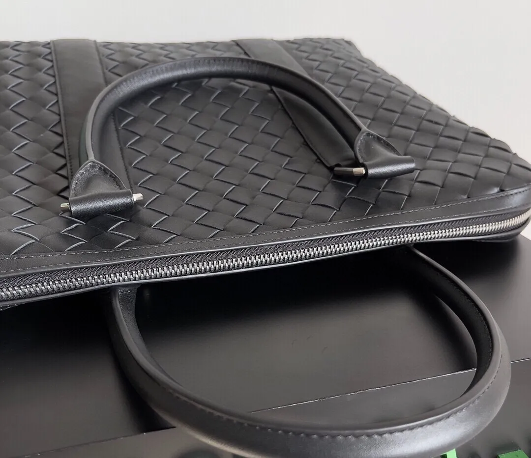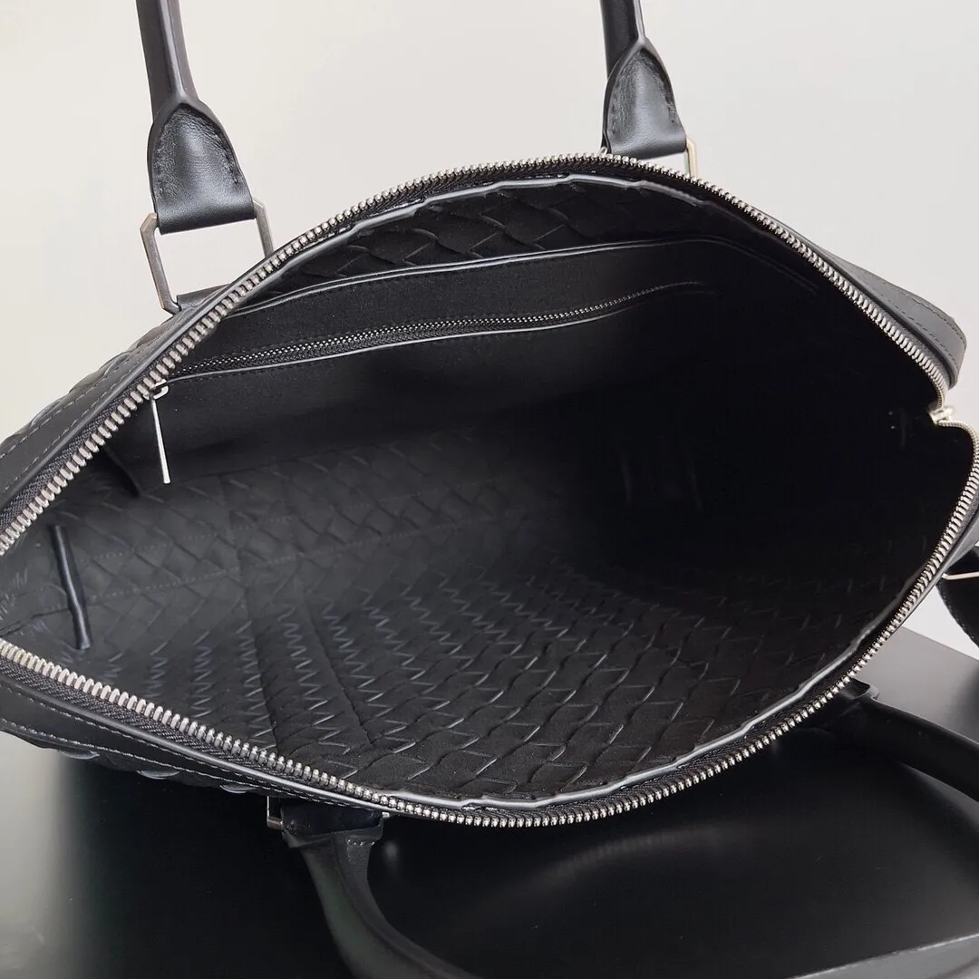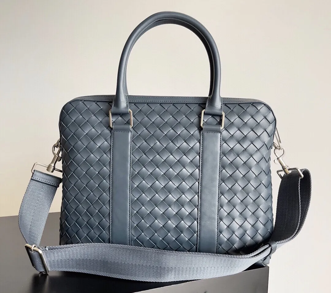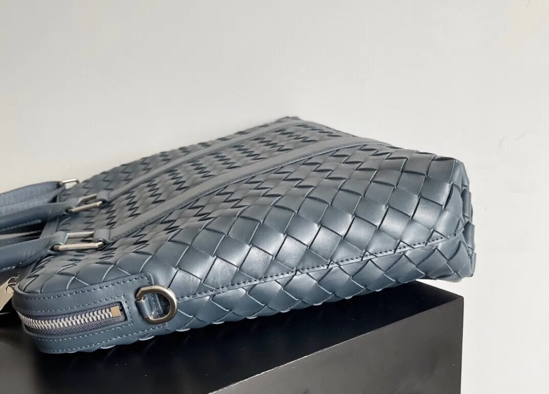 Классический портфель, изготовленный из мягкой телячьей кожи в технике Intrecciato. Оснащен съемным плечевым ремнем, одним внутренним карманом на молнии и застежкой-молнией. Внутренняя отделка выполнена из замши, а фурнитура украшена серебристым покрытием.