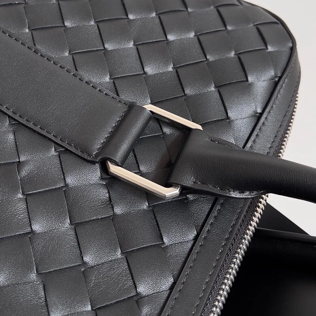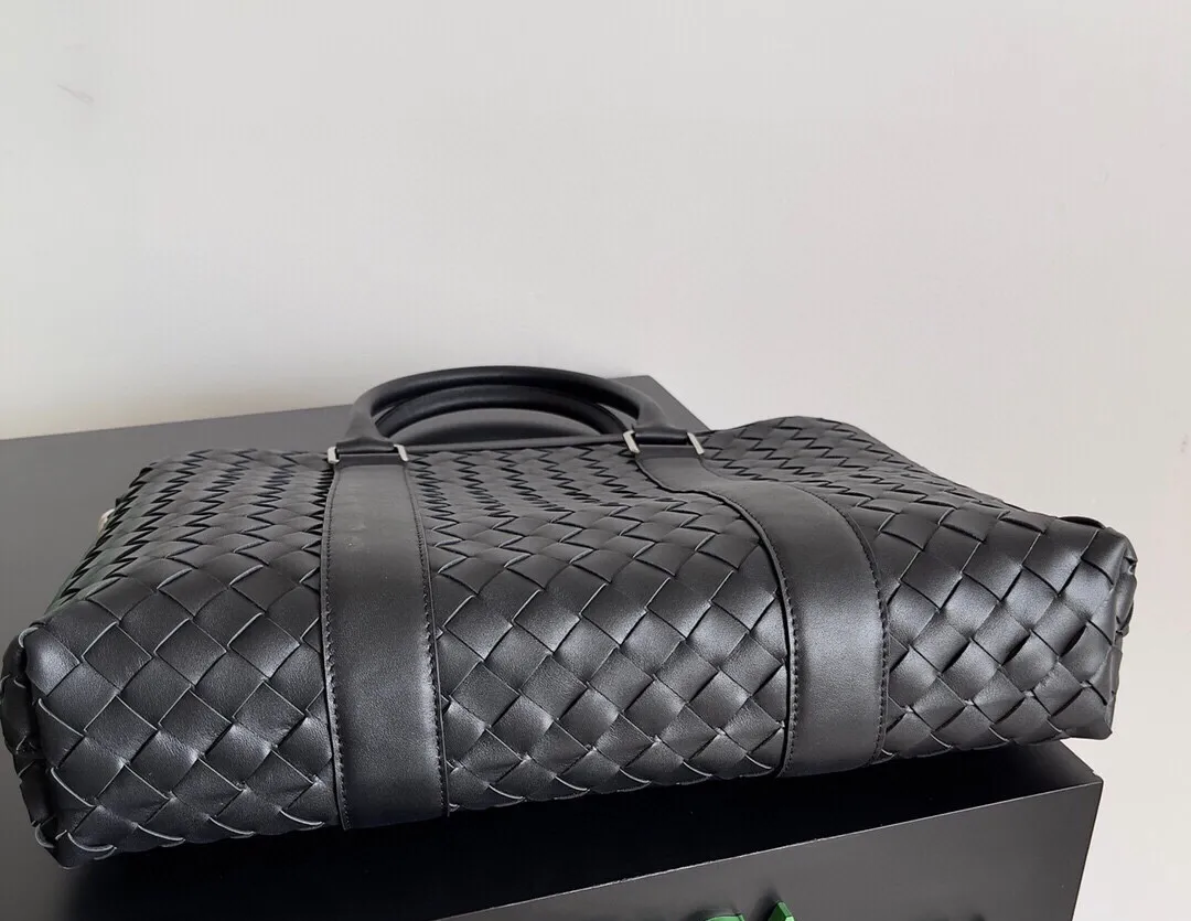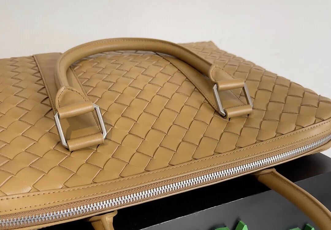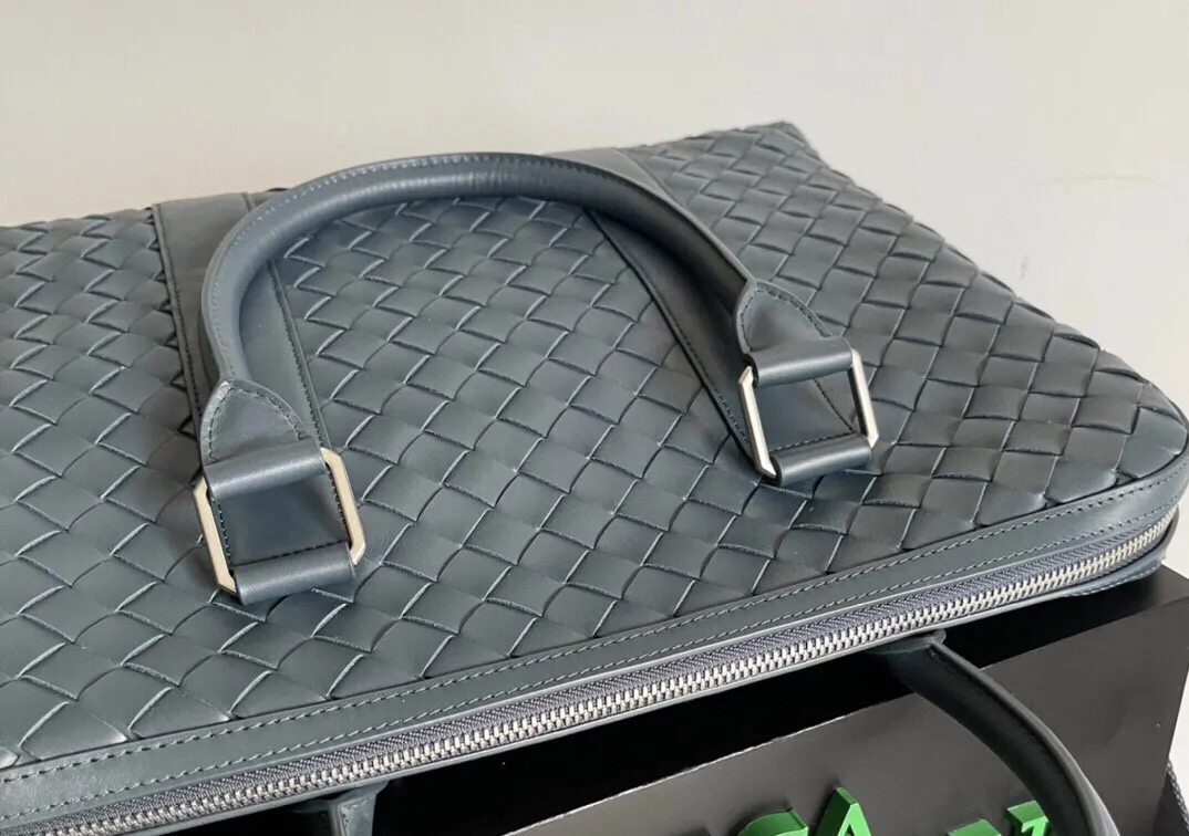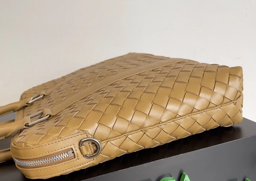 Классический портфель, изготовленный из мягкой телячьей кожи в технике Intrecciato. Оснащен съемным плечевым ремнем, одним внутренним карманом на молнии и застежкой-молнией. Внутренняя отделка выполнена из замши, а фурнитура украшена серебристым покрытием.