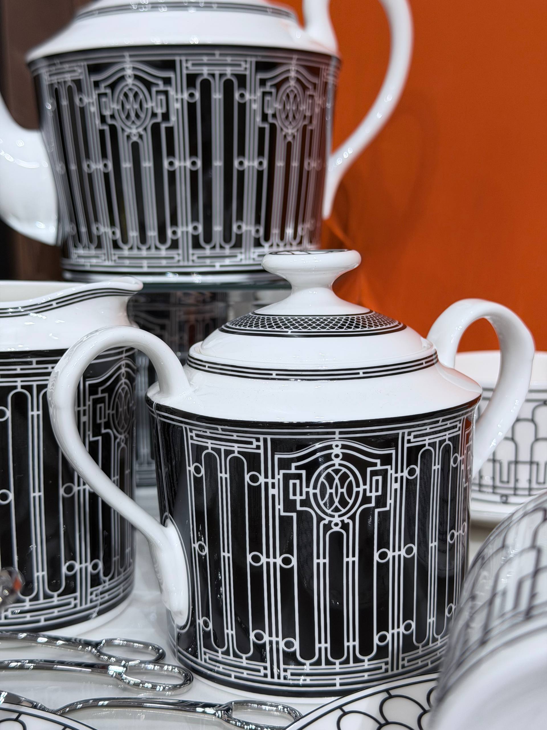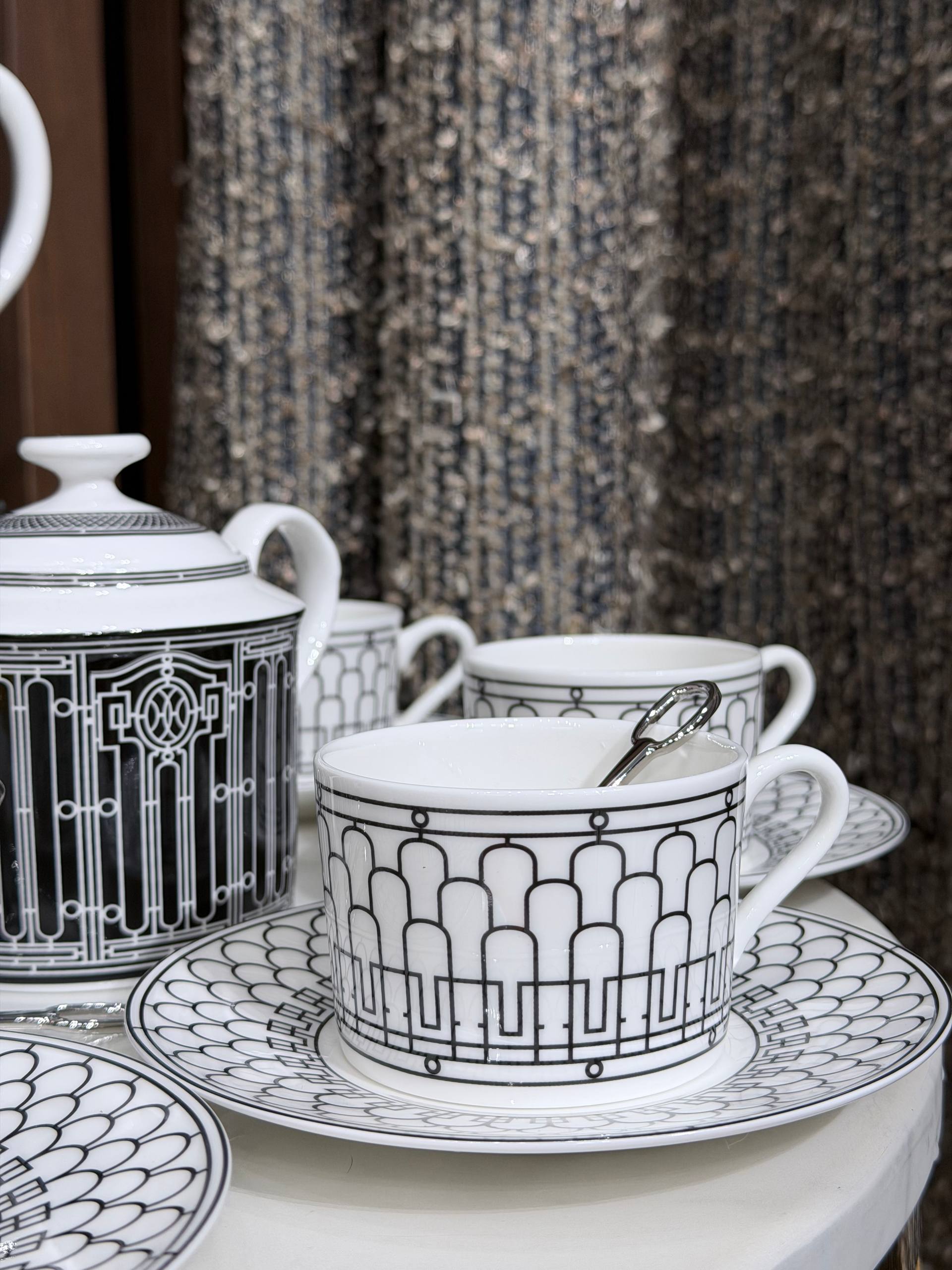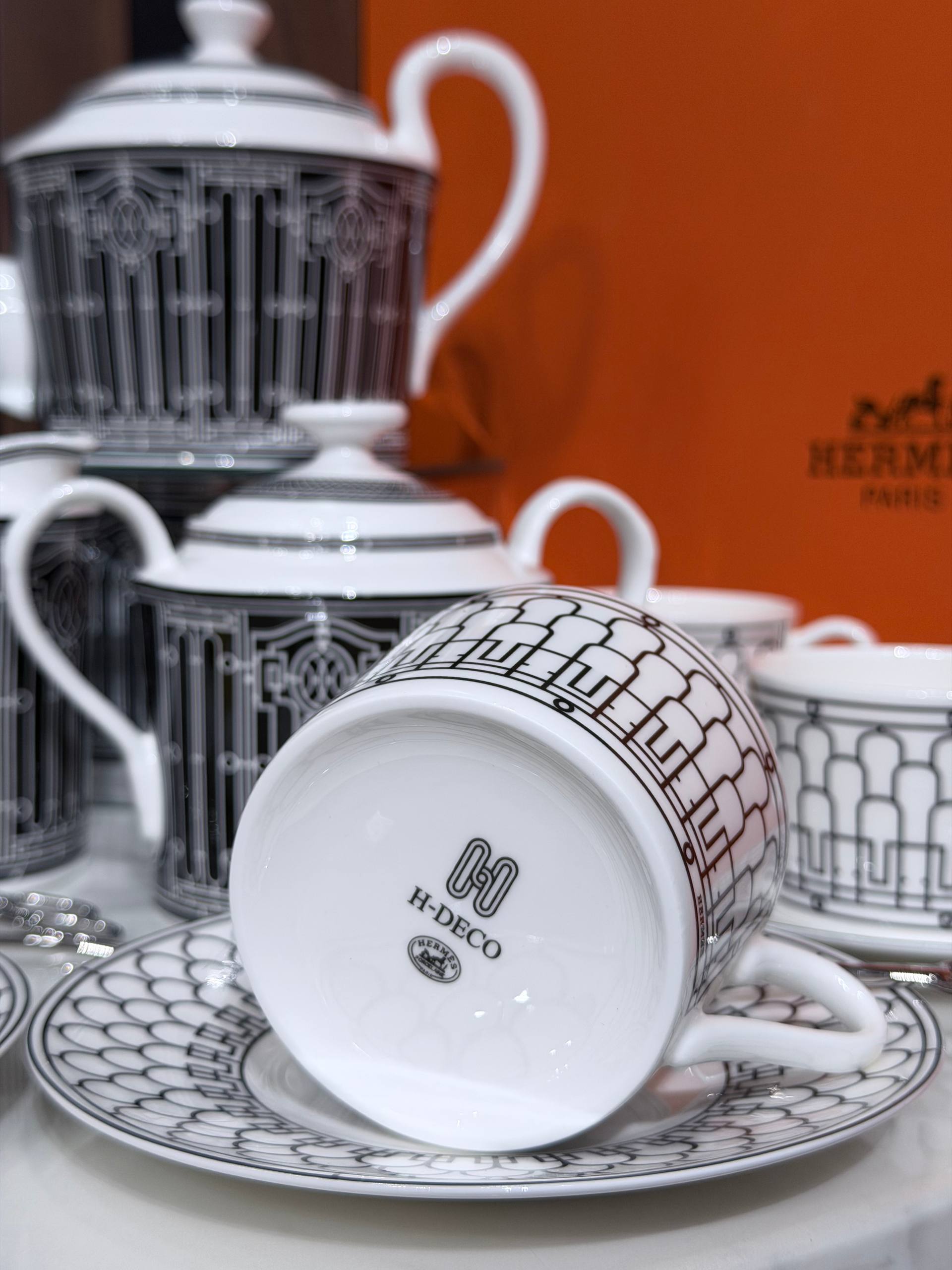 Изысканный чайный сервиз Hermès H Deco — идеальный выбор для тех, кто ценит элегантность и безупречное качество. Выполнен из тонкого костяного фарфора, набор сочетает лаконичный геометрический декор в стиле H Deco и утончённую графичность, прекрасно впишется в современный и классический интерьер.