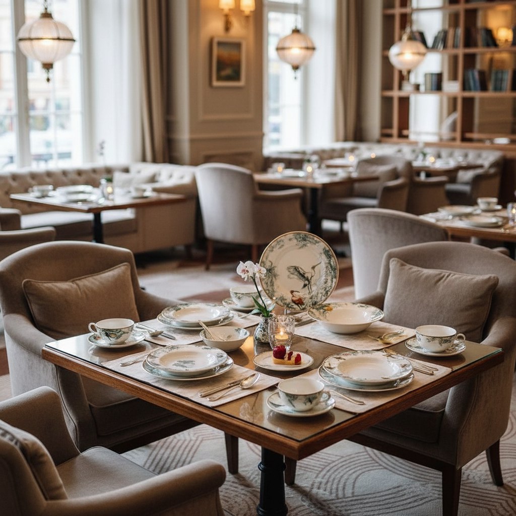 Спокойные и гармоничные оттенки, используемые в оформлении, делают сервиз универсальным для различных случаев — от повседневных обедов до торжественных мероприятий. Он создает атмосферу уюта и умиротворения.