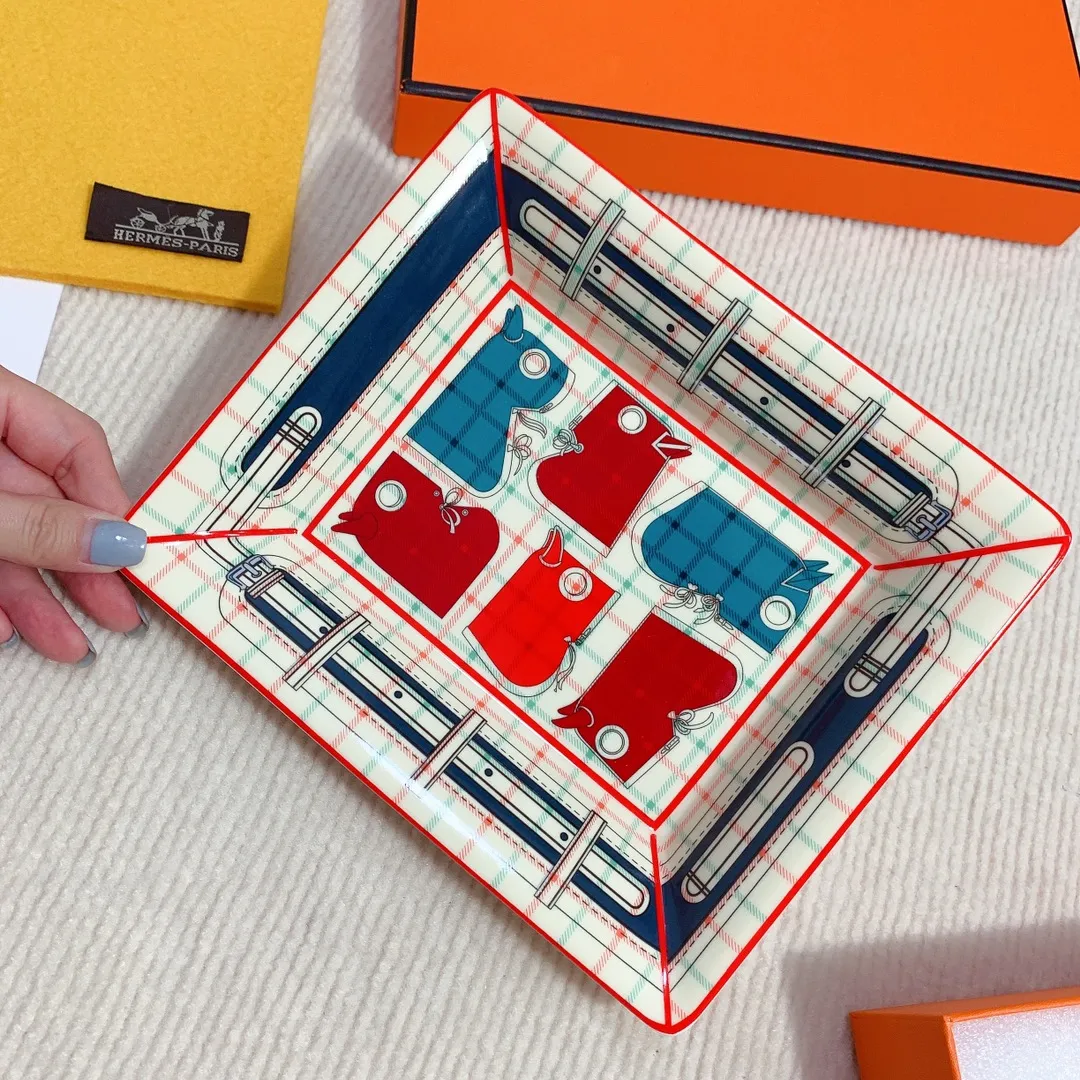 Пепельница Hermes размером 17 см с нескользящей подошвой из натуральной кожи. Покрытие 18 К