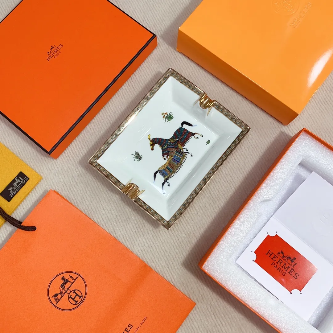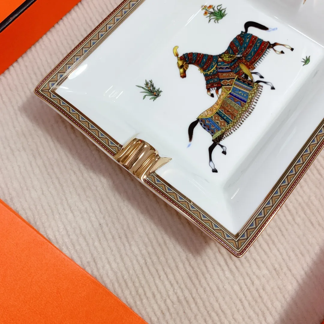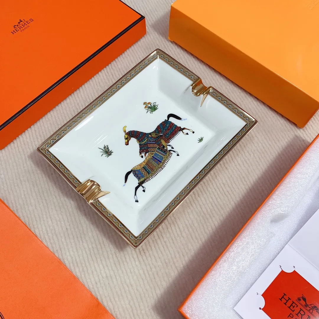 Пепельница Hermes размером 17 см с нескользящей подошвой из натуральной кожи. Покрытие 18 К
