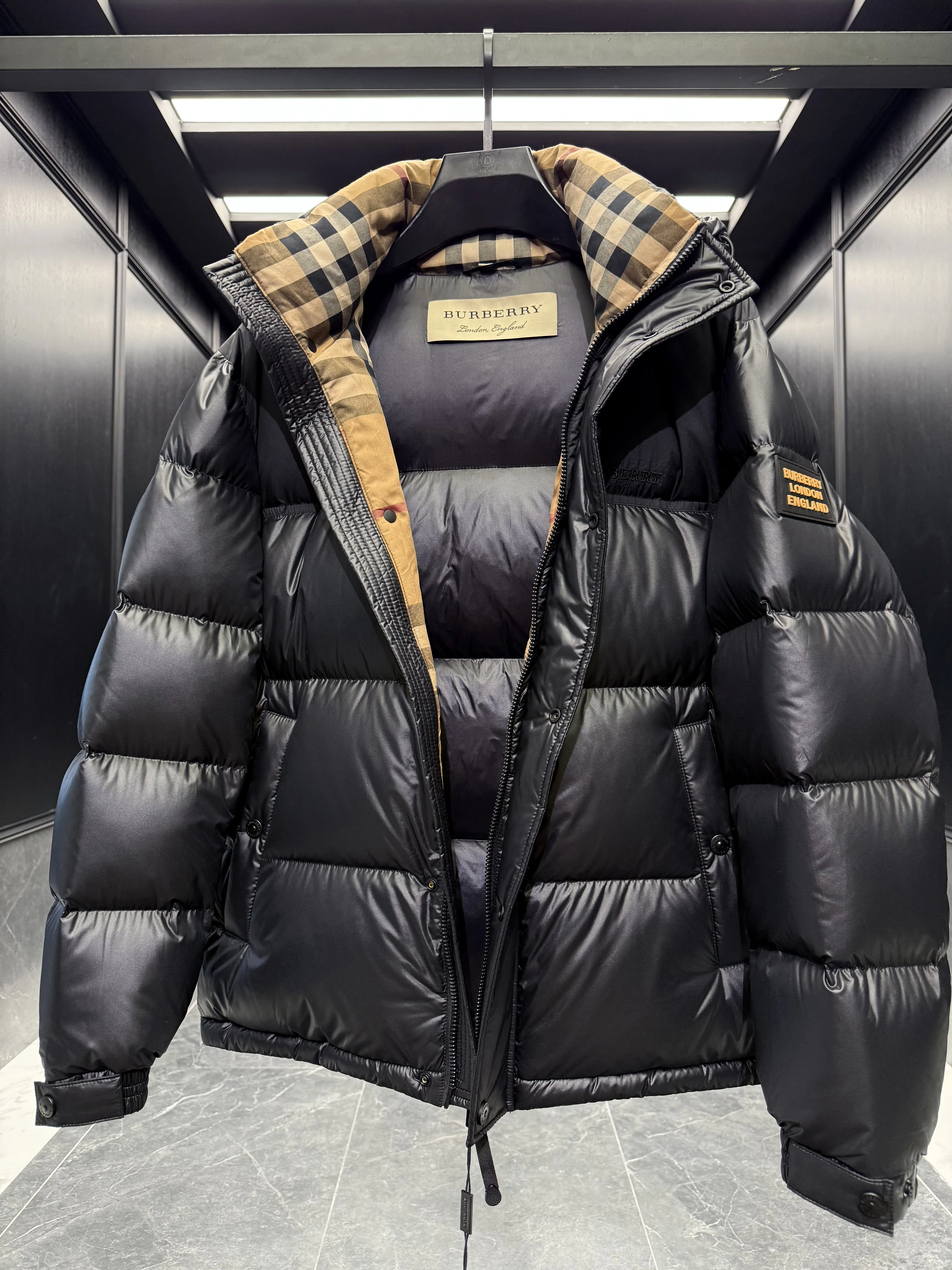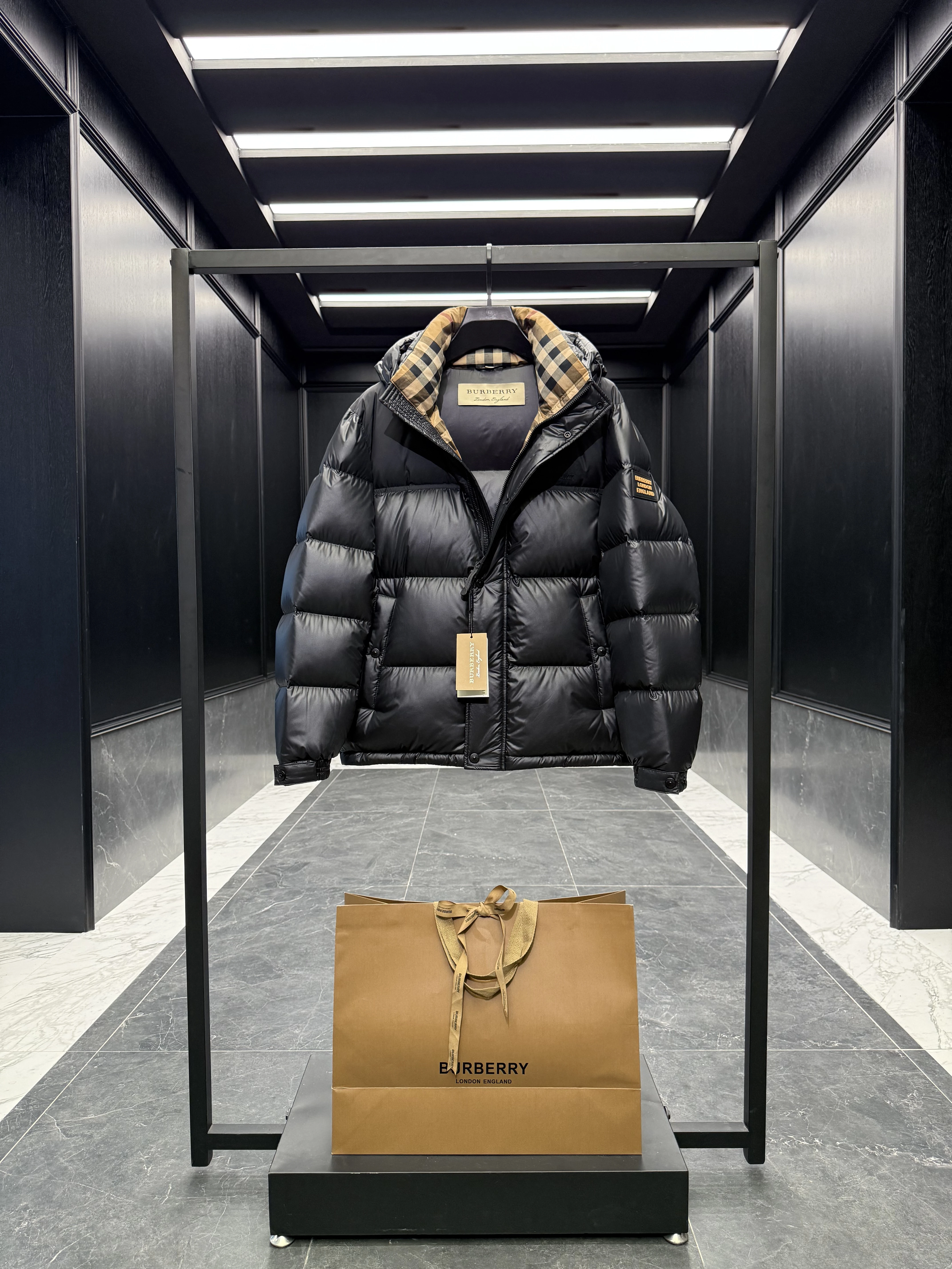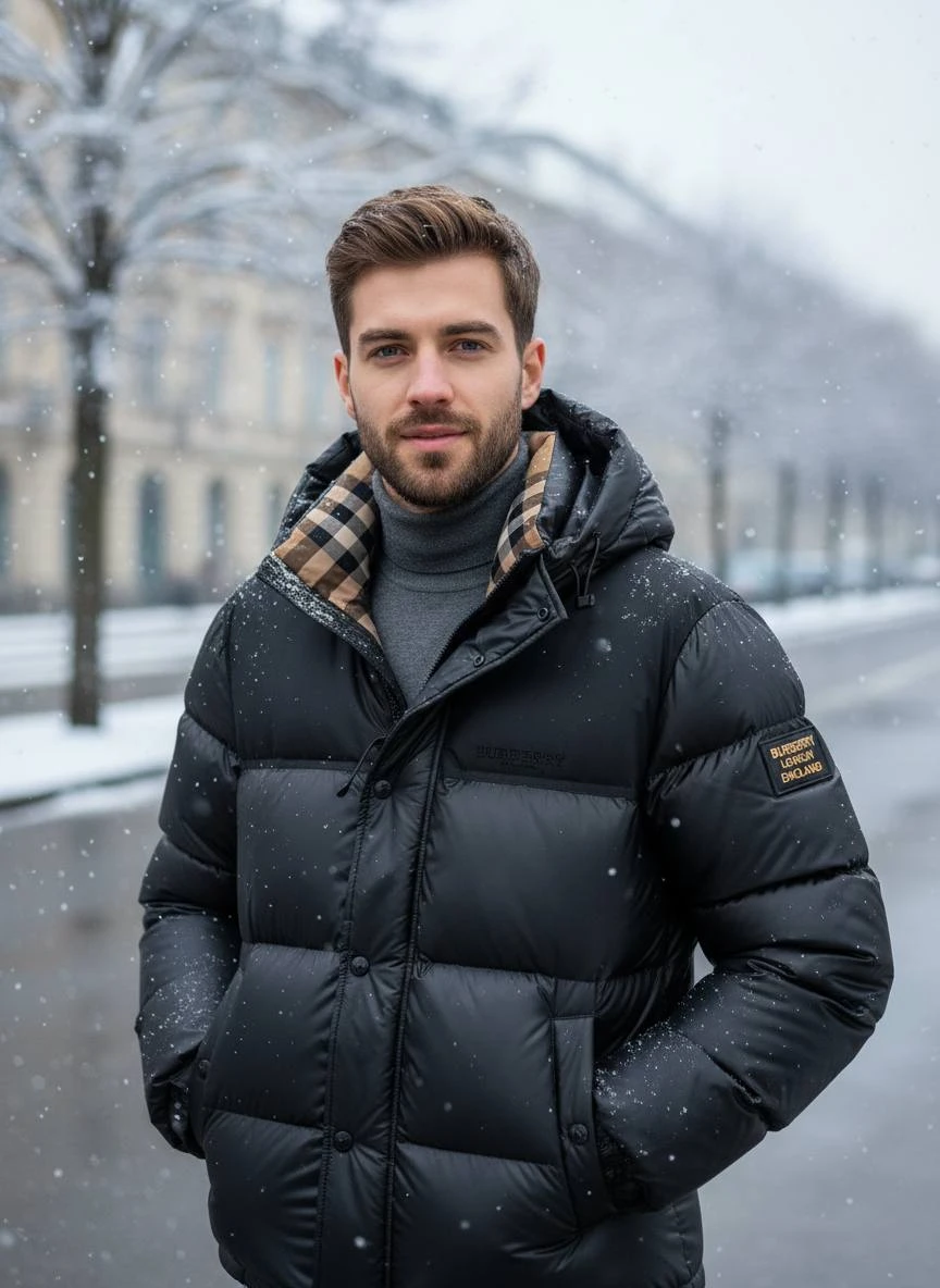 Современный мужской пуховик Burberry в чёрном цвете — идеальное сочетание городской эстетики и функционального тепла. Объёмный, тщательно стёганый силуэт обеспечивает отличную теплоизоляцию, а внутренняя отделка капюшона выполнена в фирменную клетку Burberry, добавляя изделию классический акцент.