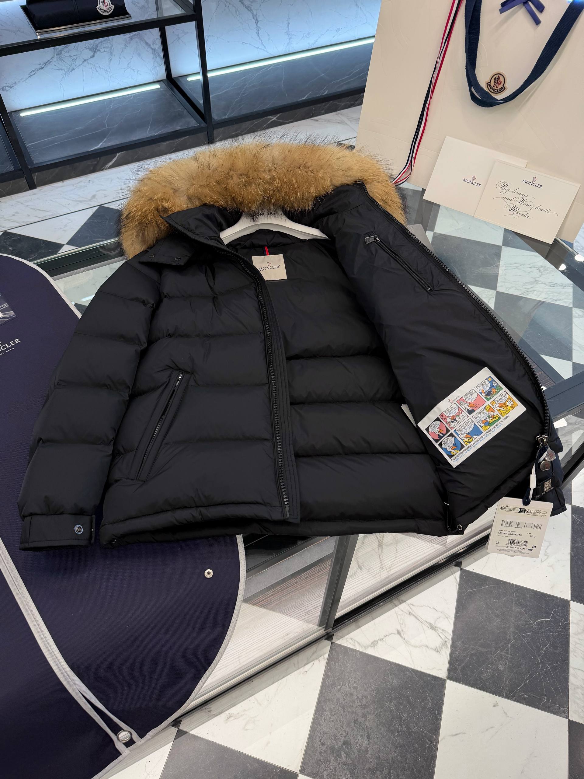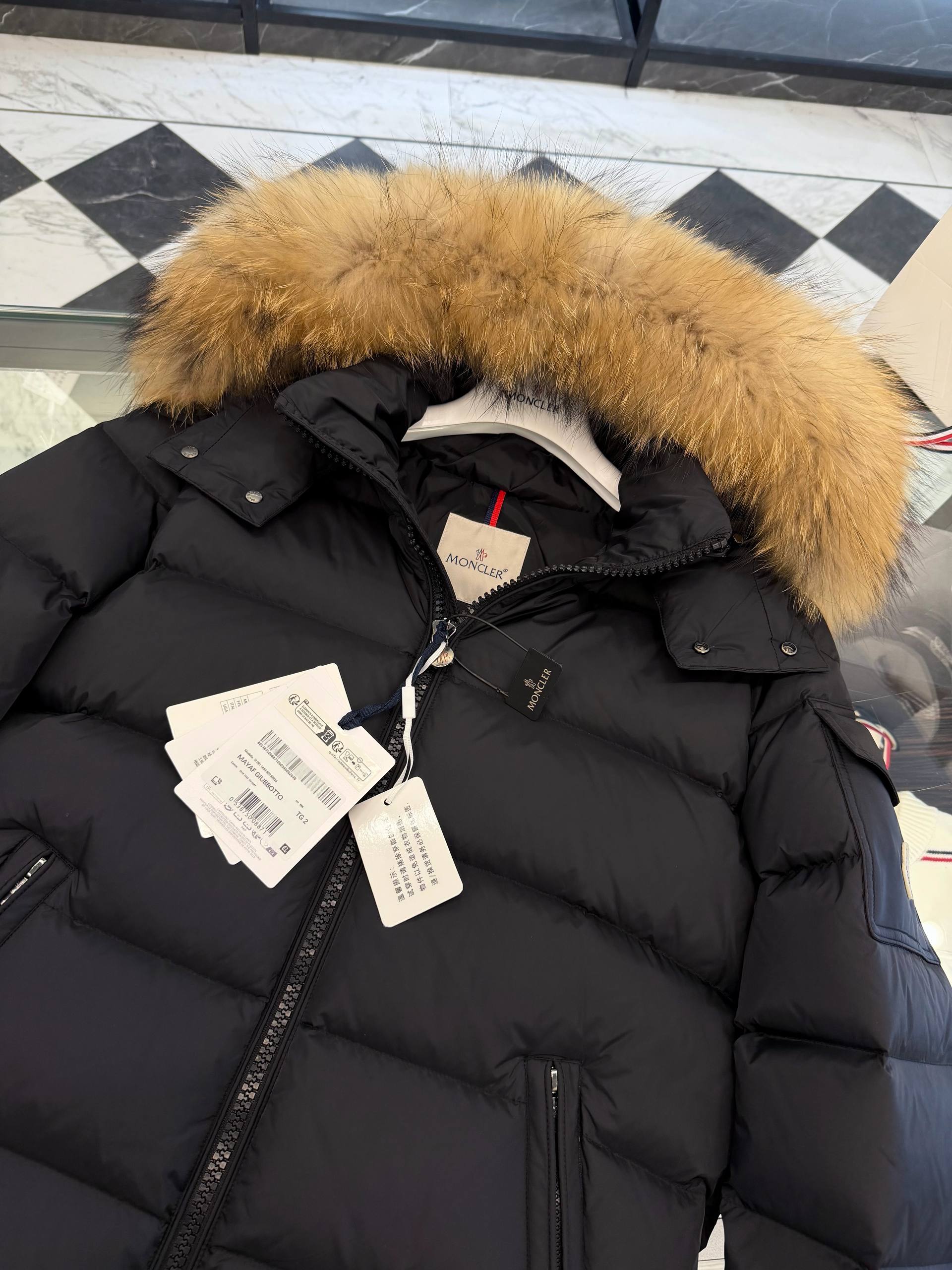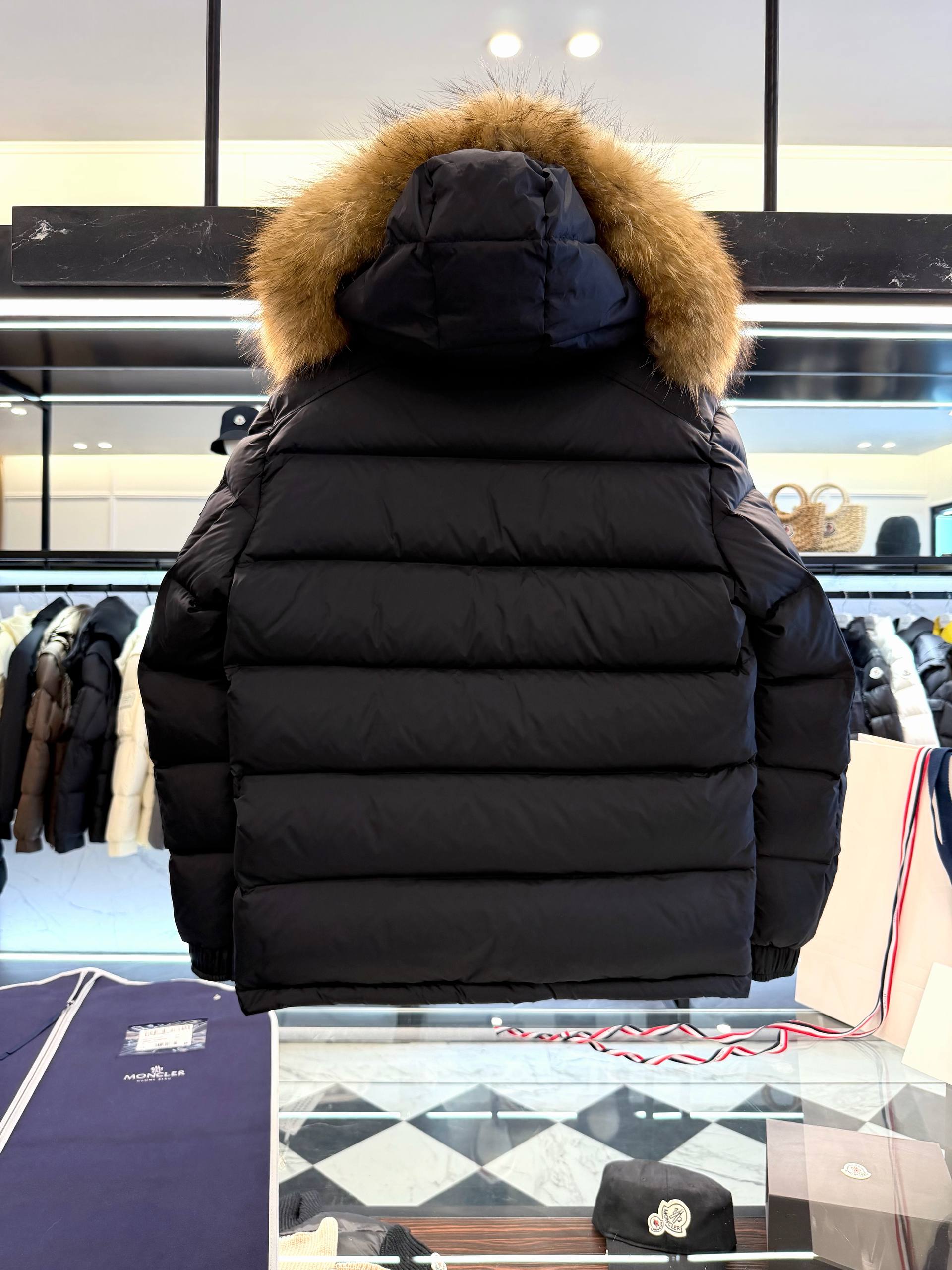 Элегантная и тёплая мужская куртка MONCLER с пуховым наполнителем, съёмной меховой опушкой на капюшоне и характерной стеганой конструкции. Идеальный выбор для города и путешествий в холодное время года — сочетает функциональность, защиту от холода и фирменный стиль.