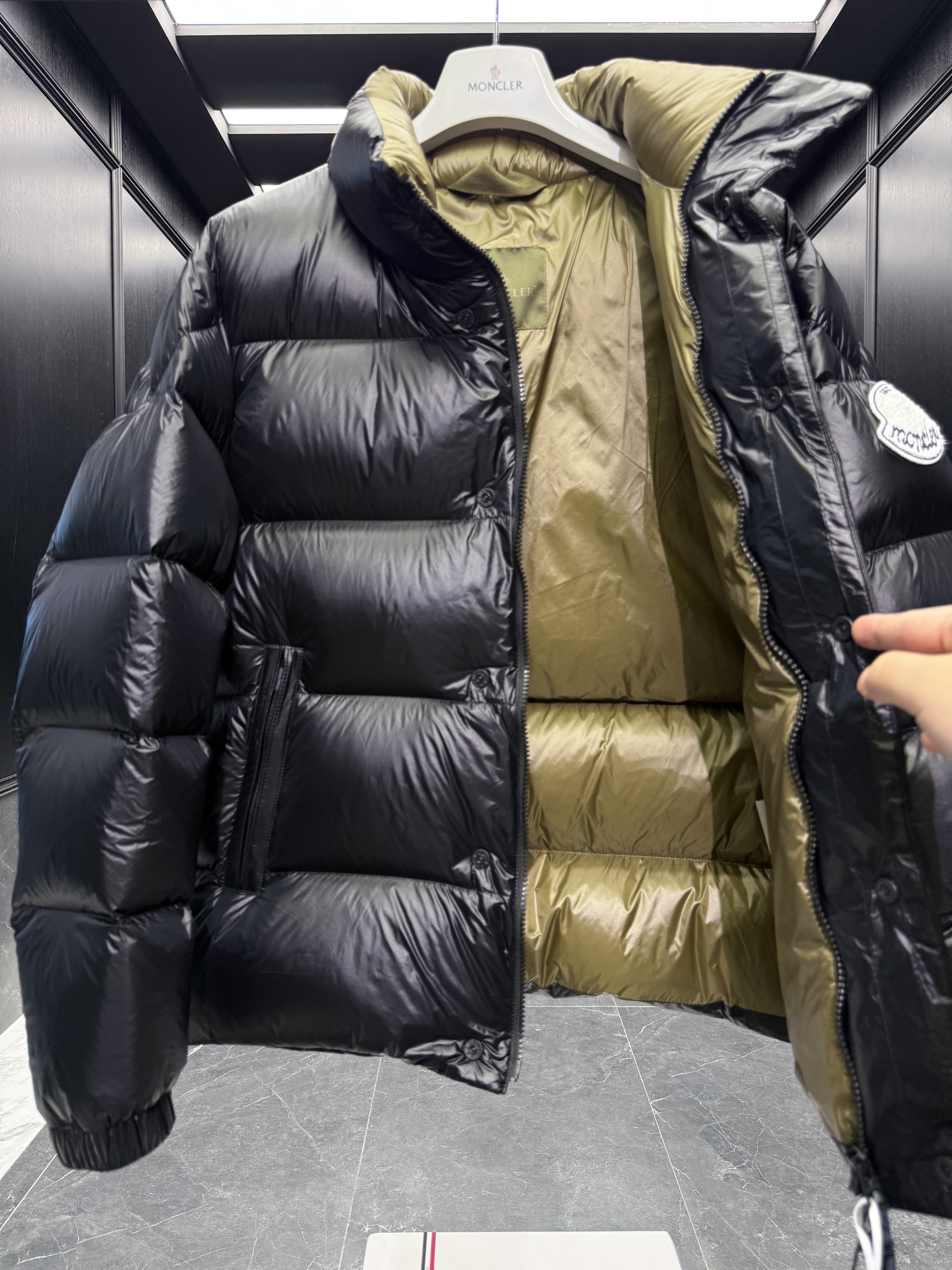 Мужской пуховик Moncler Tripiti — это сочетание классического стиля и высоких технологий для максимального комфорта в холодное время года. Внешняя сторона изделия выполнена из гладкой, блестящей ткани чёрного цвета, которая придаёт пуховику современный и элегантный вид. Внутренняя подкладка выполнена в контрастном оливковом оттенке, что добавляет модели уникальности и изысканности.
