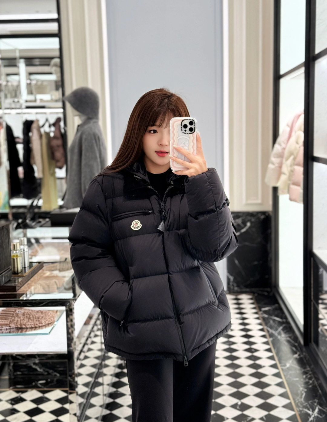 Женский пуховик Moncler Calima — это идеальное сочетание классического стиля и современных технологий для вашего комфорта в холодное время года. Модель выполнена из прочной нейлоновой ткани насыщенного чёрного цвета с матовой фактурой, которая обеспечивает надежную защиту от ветра и влаги. Подкладка из нейлонового лака придаёт изделию дополнительную прочность и элегантный блеск.