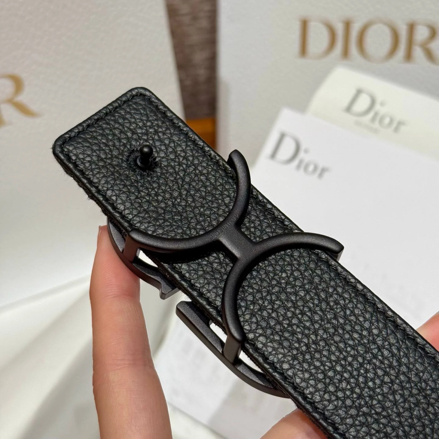 • Пряжка: крупная фирменная пряжка с инициалами CD в матовом чёрном металле — строгий, но выразительный акцент, подчёркивающий статус и стиль.