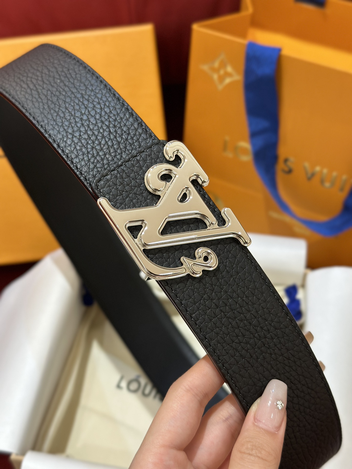 Двусторонний ремень LV Optic шириной 4.0 см выполнен из гладкой телячьей кожи и имеет характерную металлическую пряжку матового черного, серебристого и золотисто-розового цветов. Это модный и незаменимый аксессуар для повседневной носки.