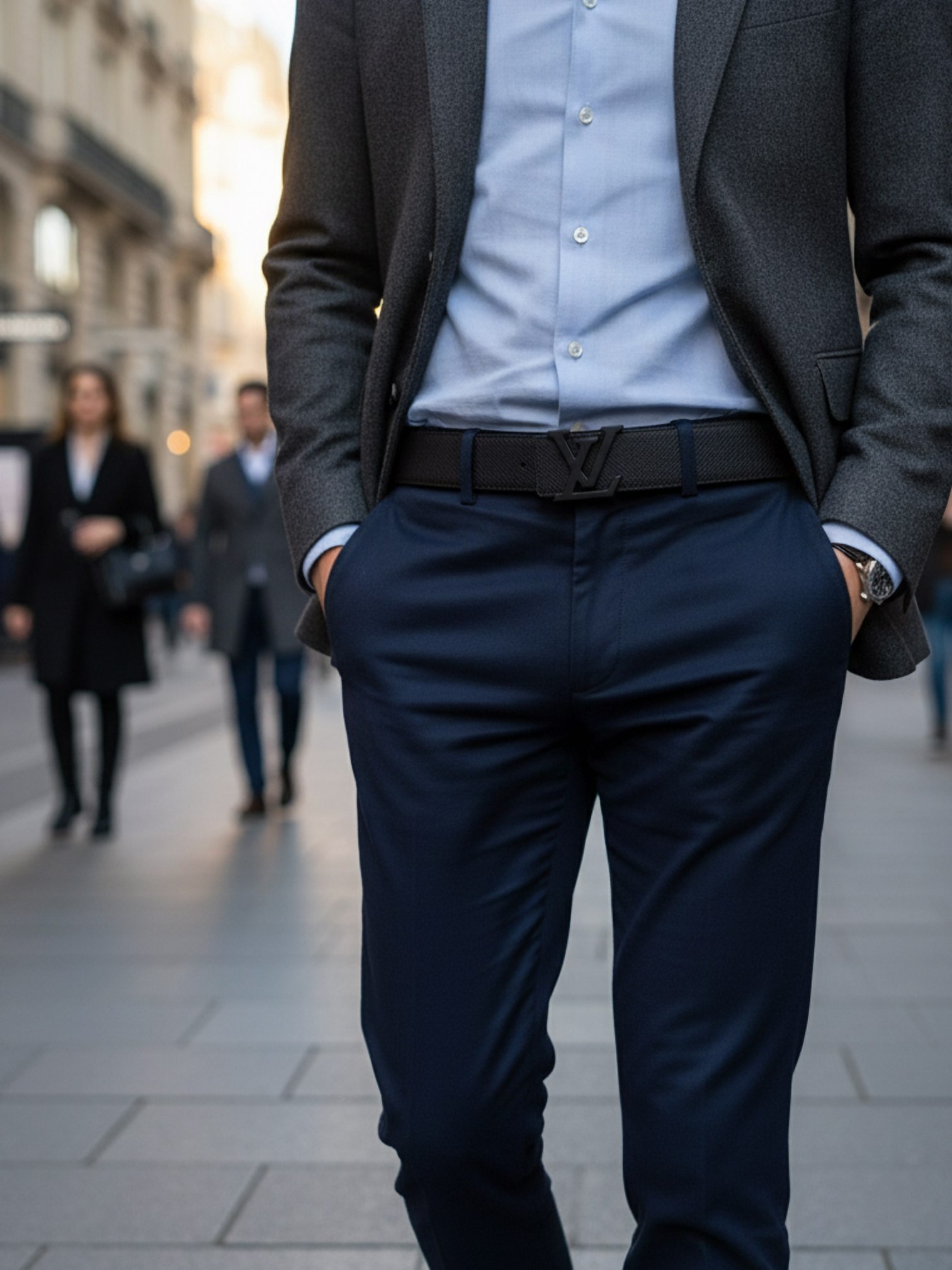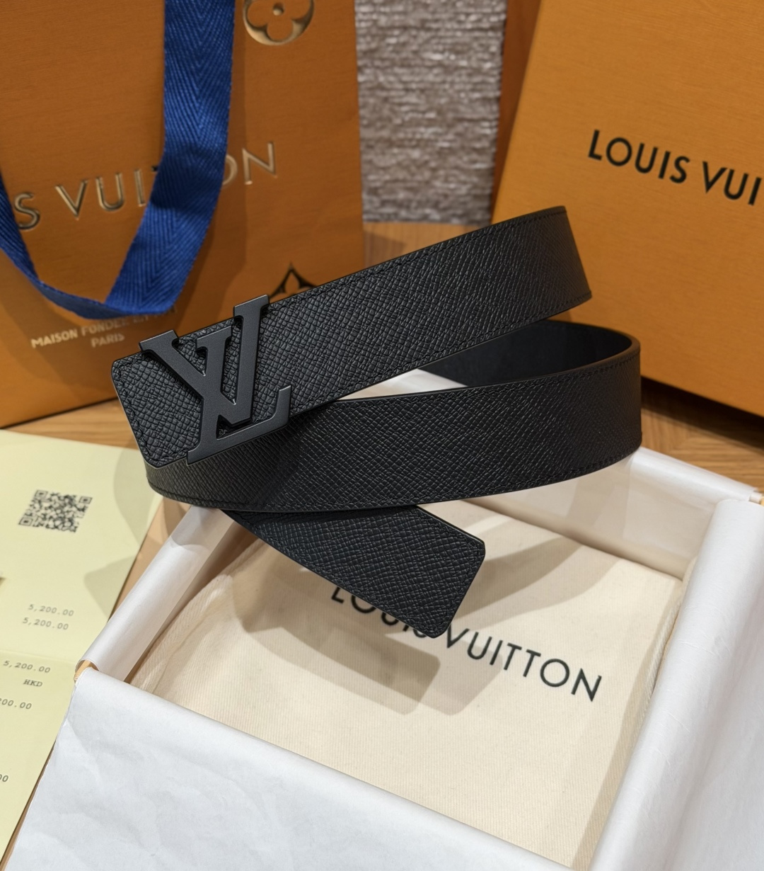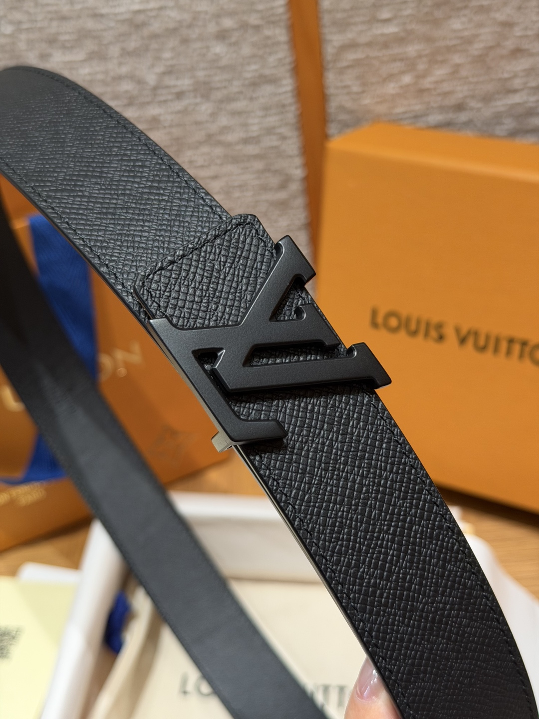 • Тип пряжки: металлическая логотип-пряжка LV (полированная серебристая и матовая черная).