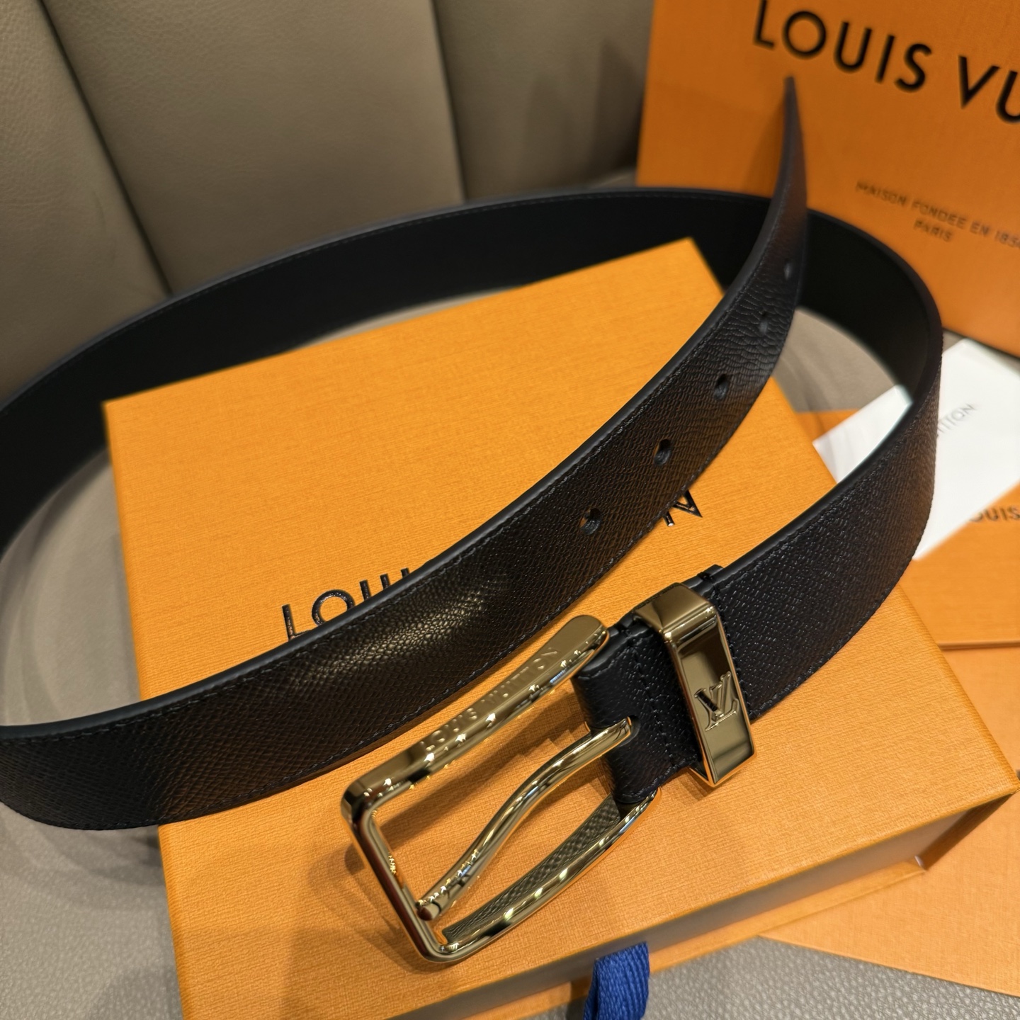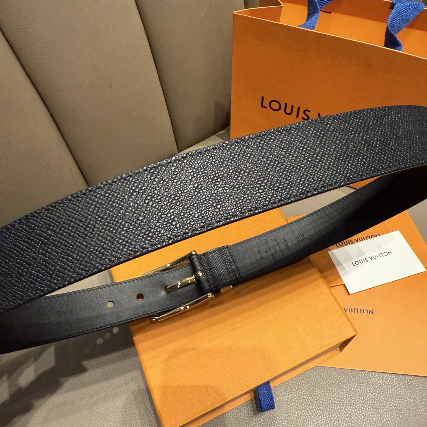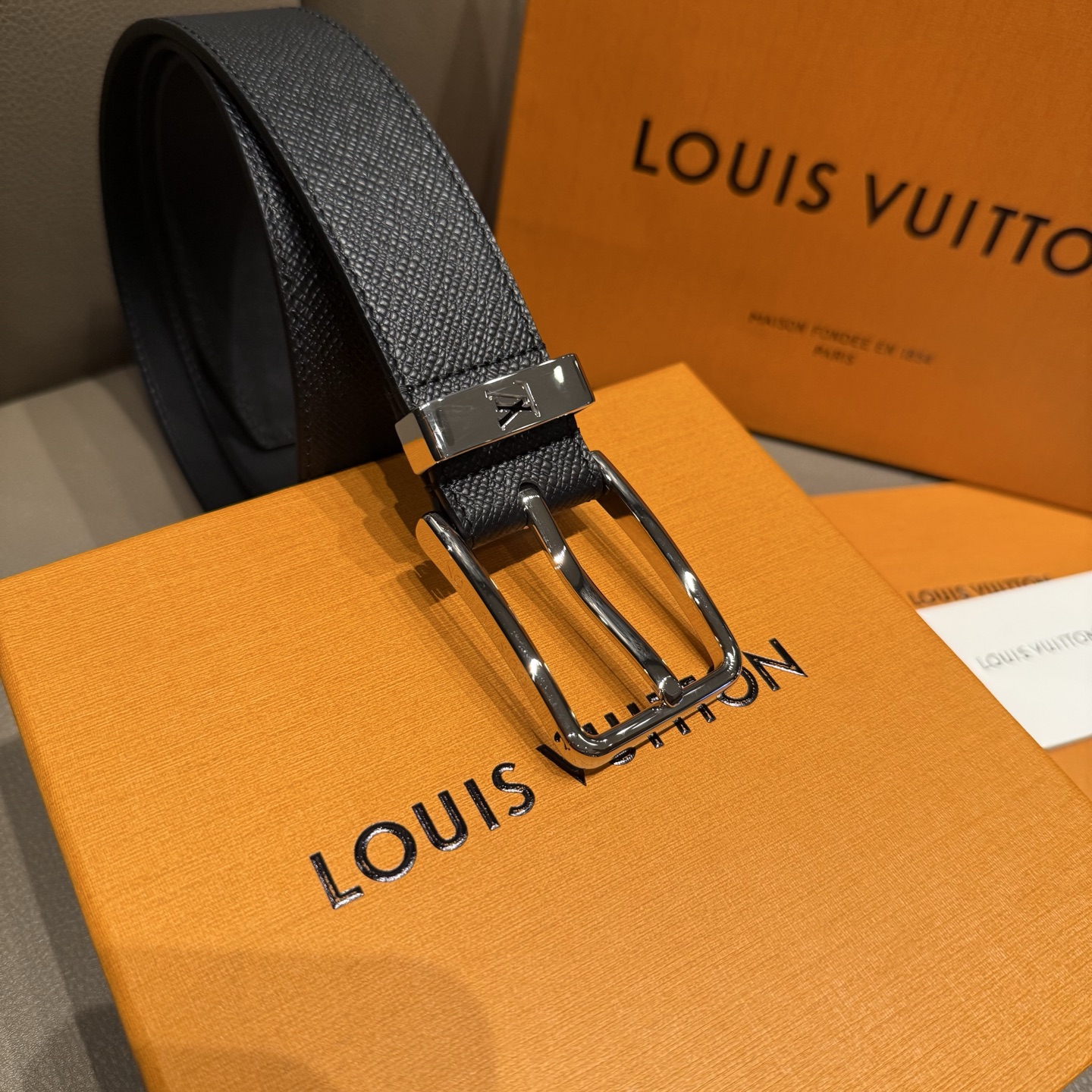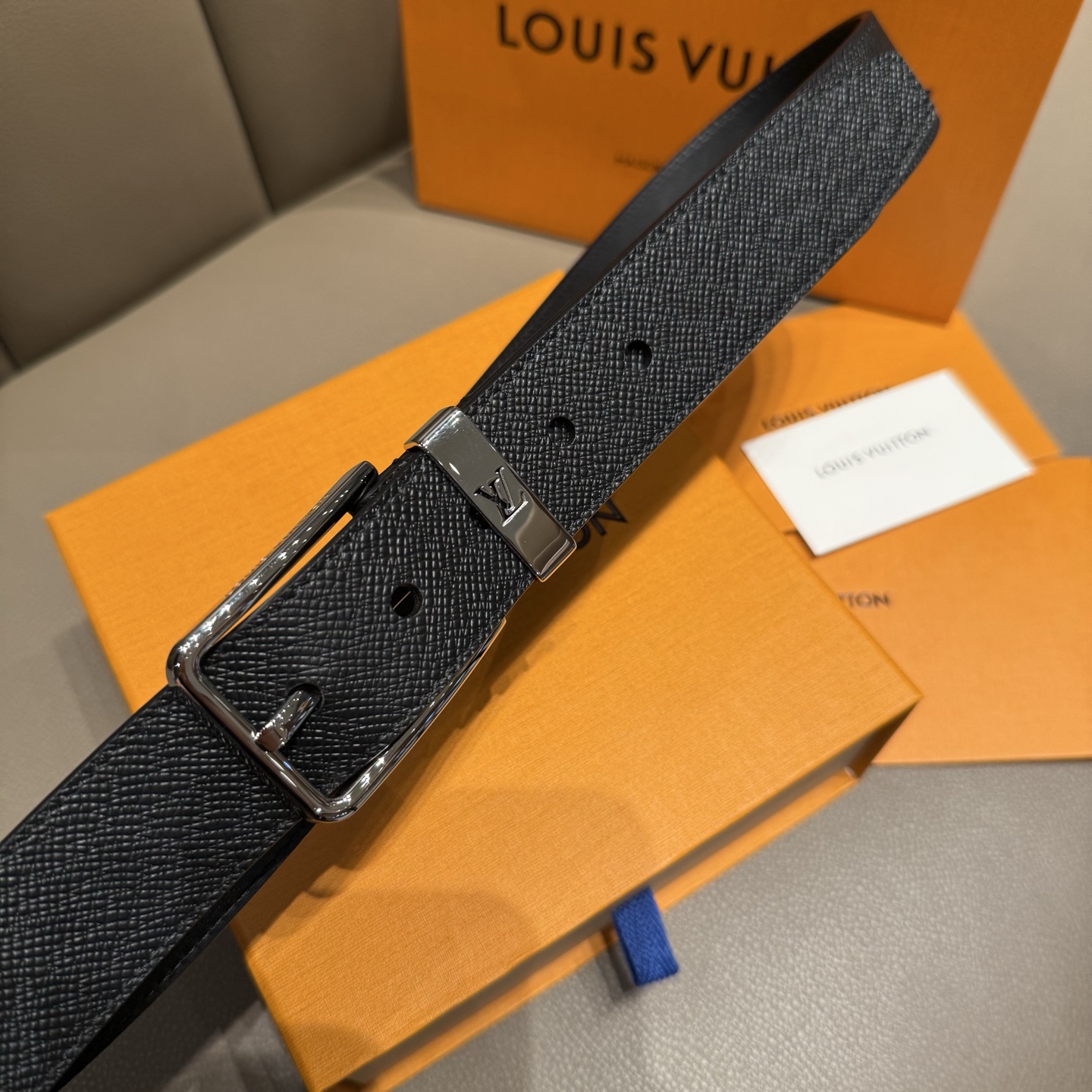 Ремень Louis Vuitton – это воплощение элегантности и высокого качества. Аксессуар выполнен из премиальной зернистой кожи с фирменной текстурой, что придаёт изделию особую изысканность и долговечность. Пряжка украшена лаконичным логотипом LV, подчеркивающим уникальность стиля бренда.