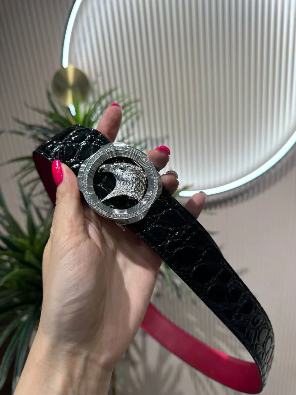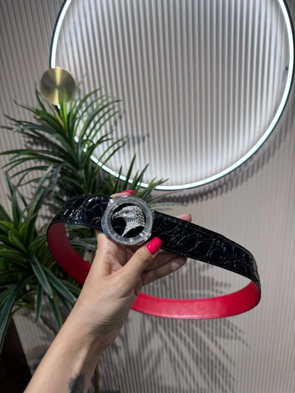 Этот мужской ремень от Stefano Ricci выполнен из высококачественной коровьей кожи с имитацией под крокодила. Подчёркивает образ и привлекает внимание фирменная пряжка с логотипом бренда, подчеркивающая роскошь и стиль аксессуара.