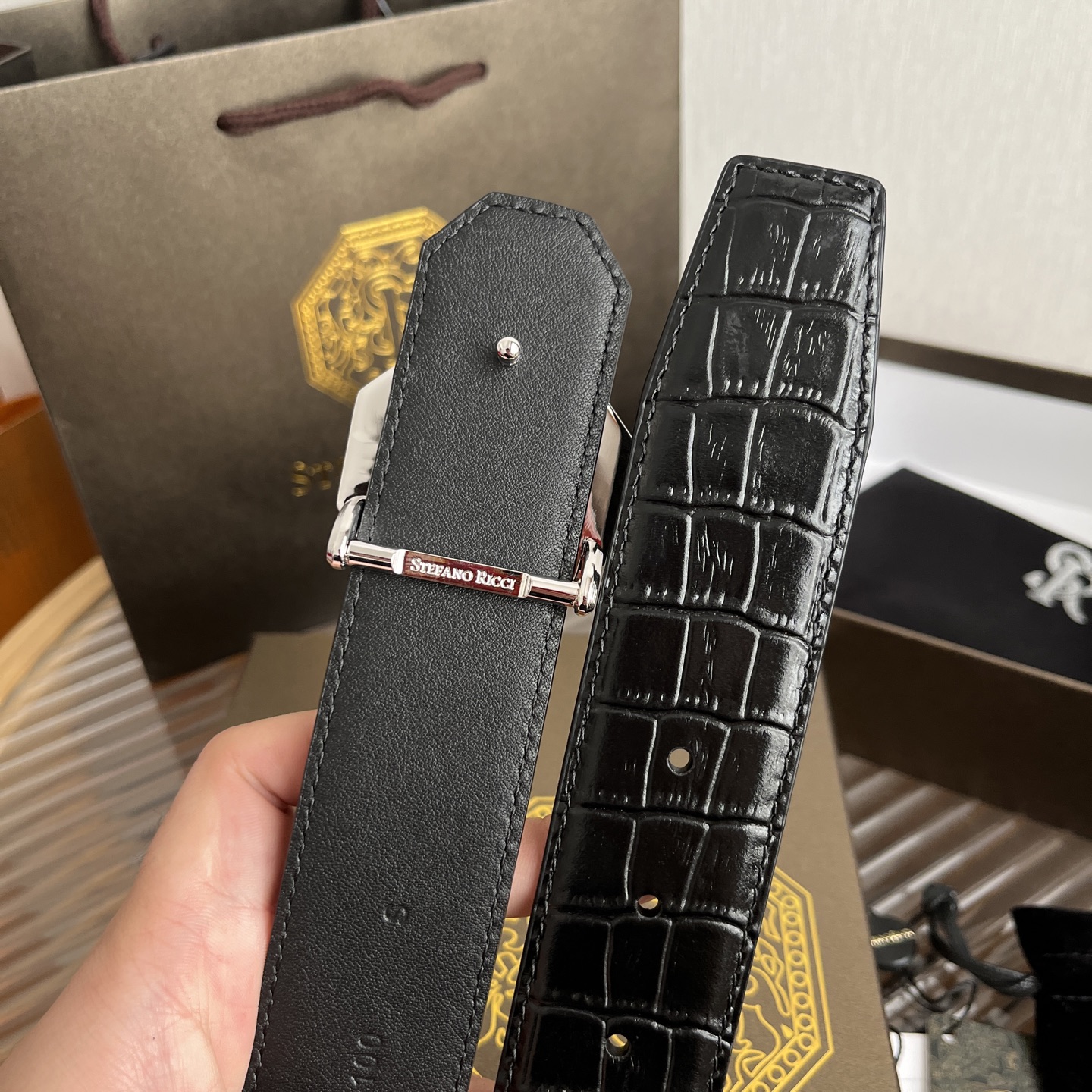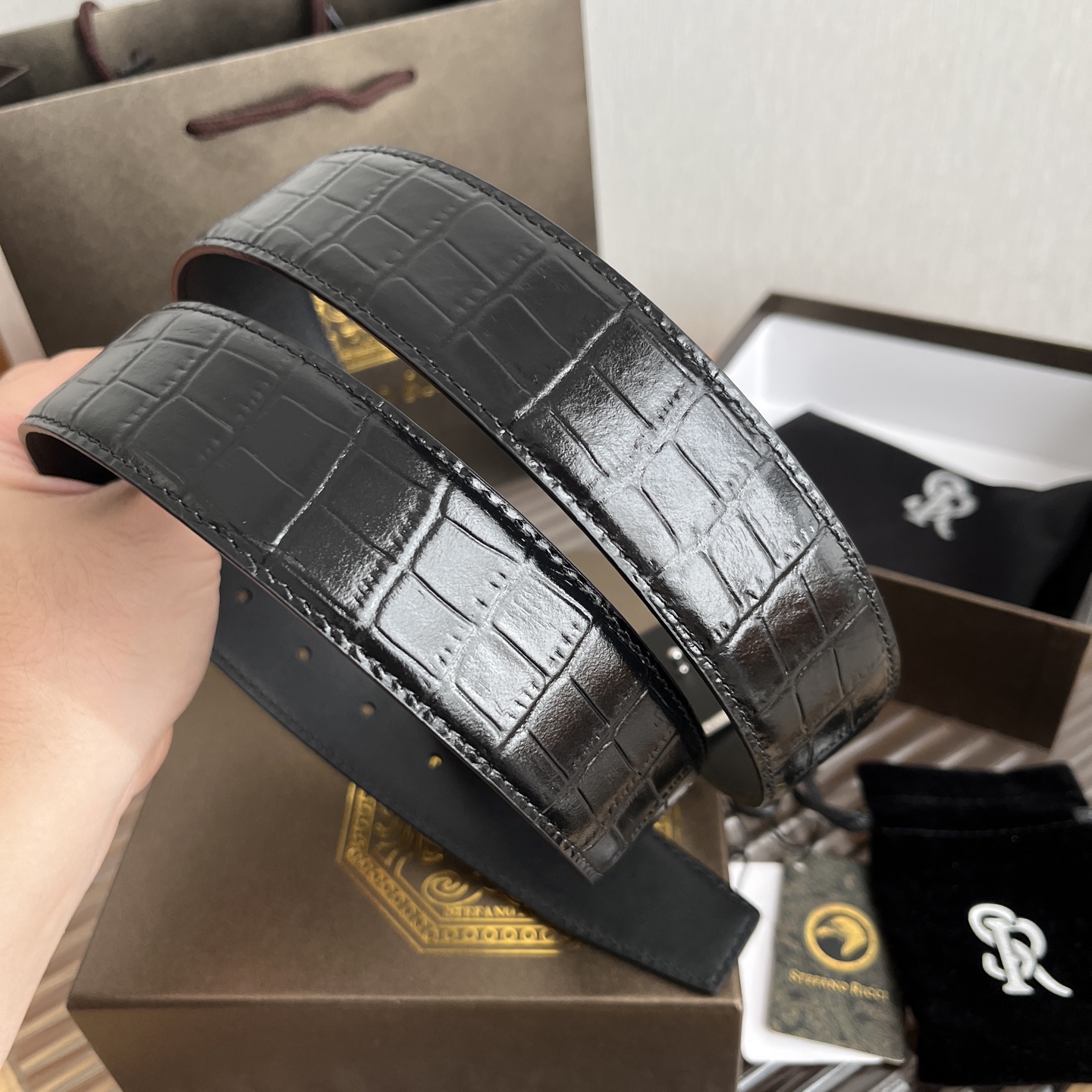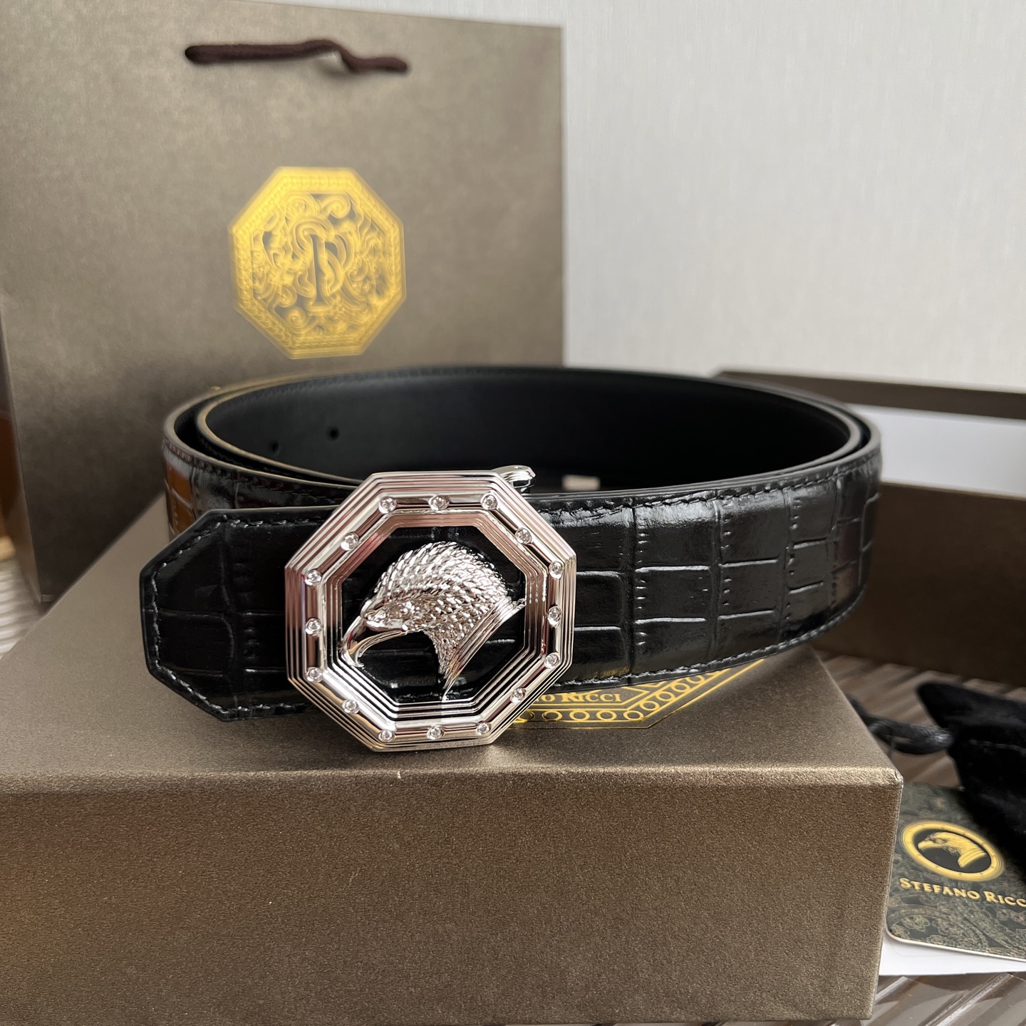 STEFANO RICCI Мужской ремень с тиснением под крокодила