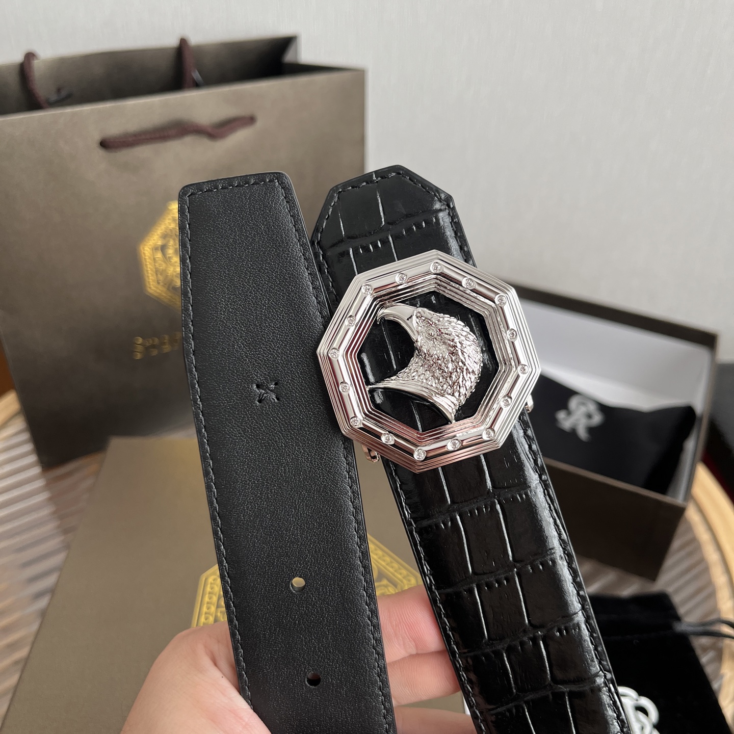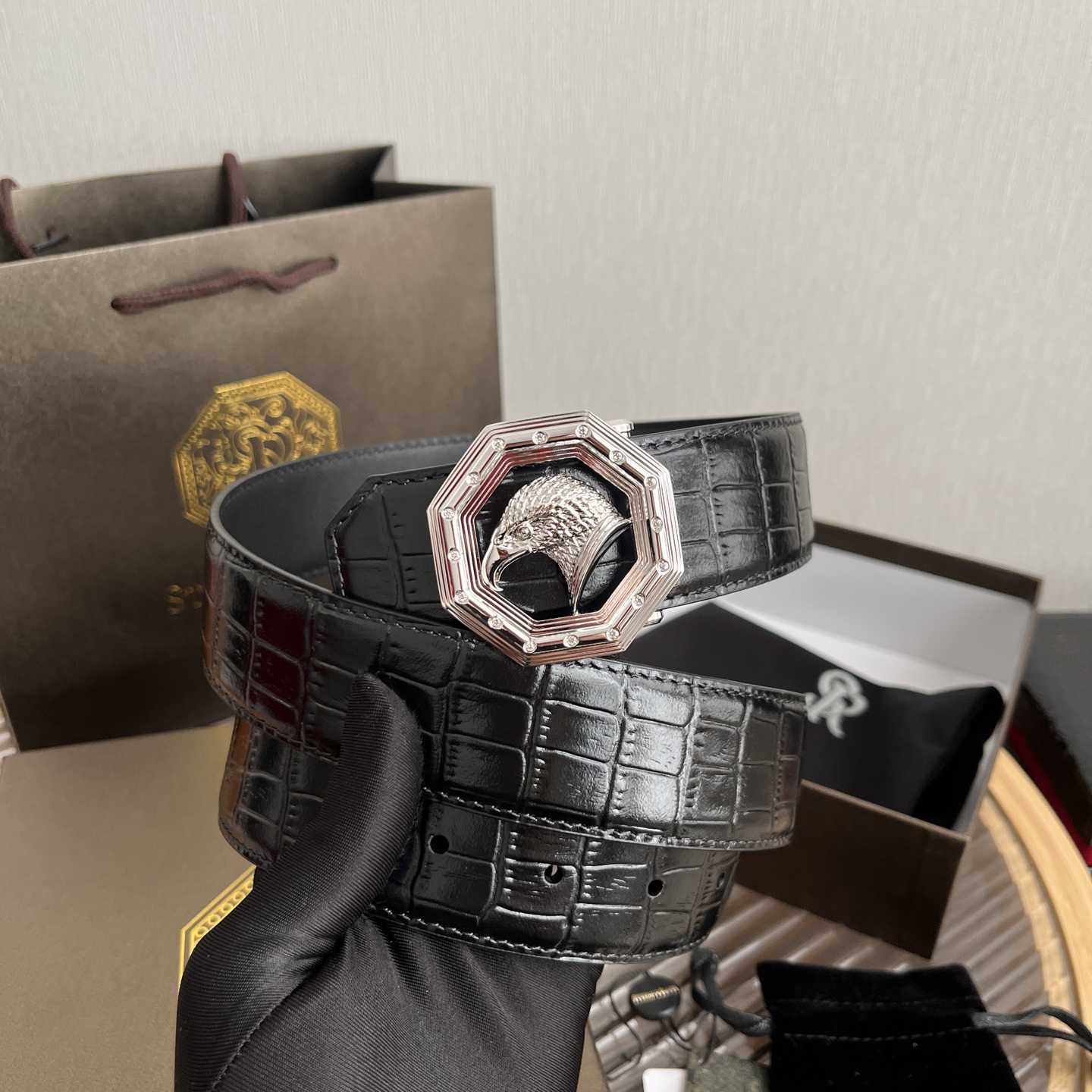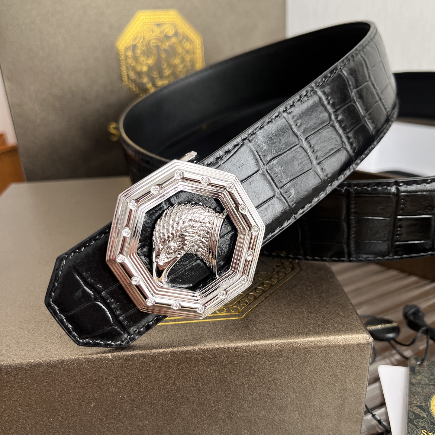 STEFANO RICCI Мужской ремень с тиснением под крокодила
