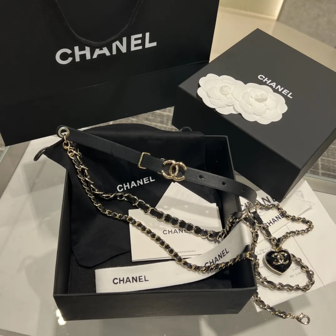 Женский ремень Chanel с пряжкой из меди, декоративной цепью с сердцем и натуральной коровьей кожи.