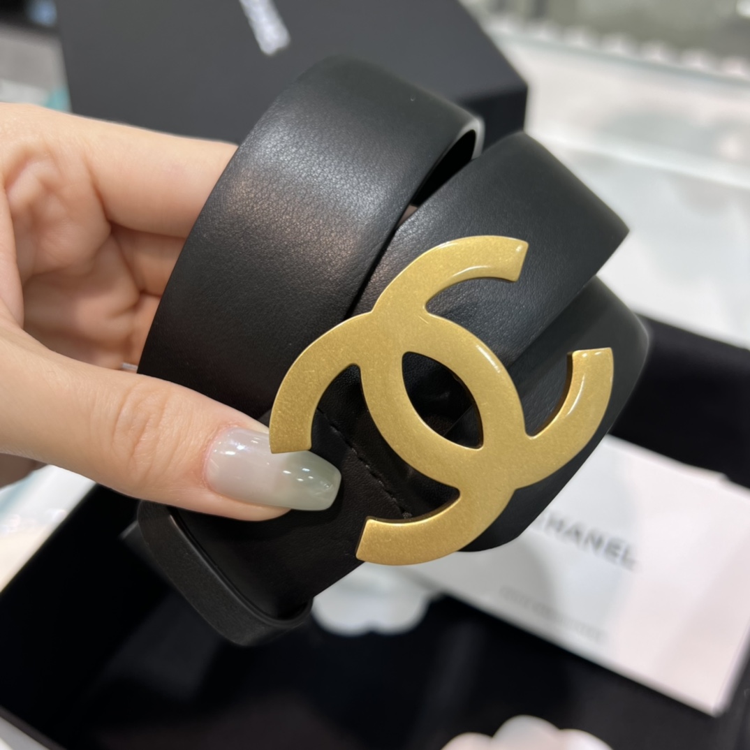 Классический повседневный Женский ремень Chanel с пряжкой из меди и натуральной воловьей кожи.