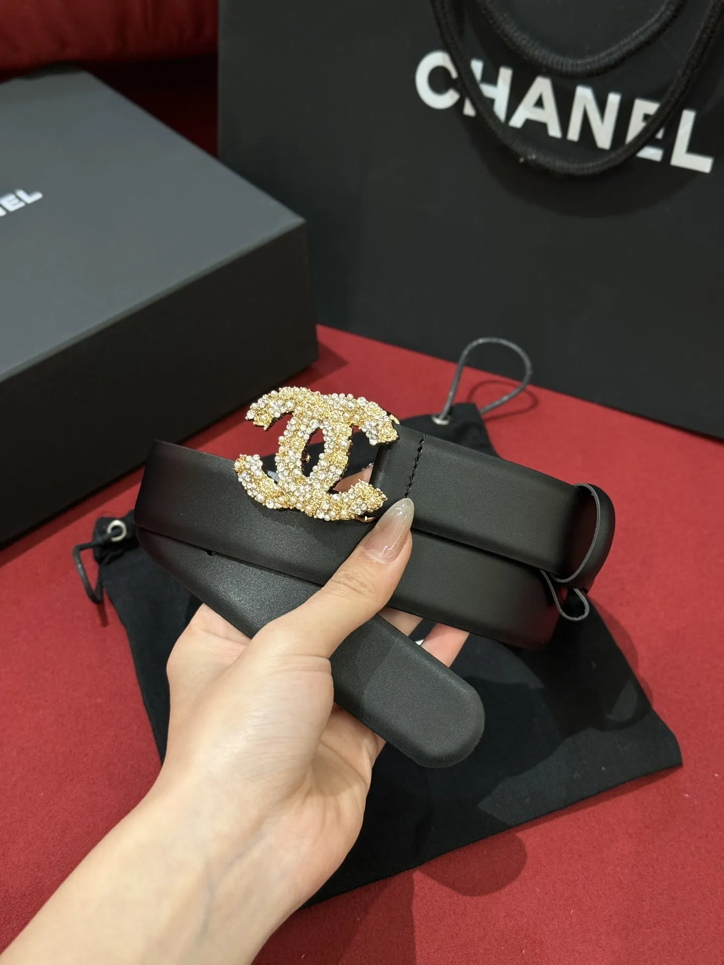 CHANEL Женский ремень с жемчужной пряжкой