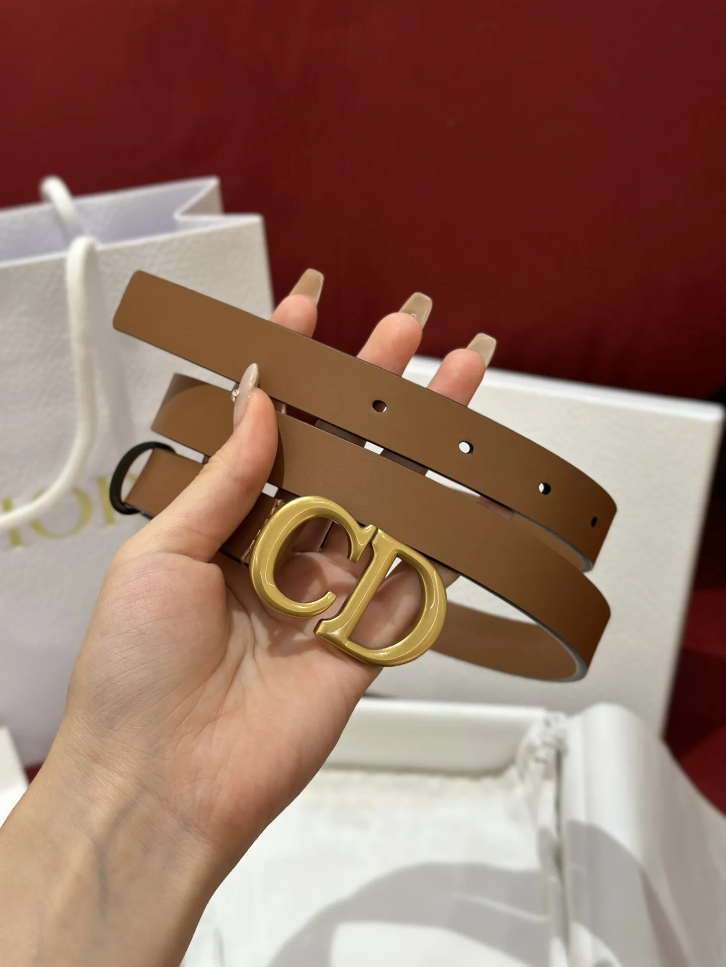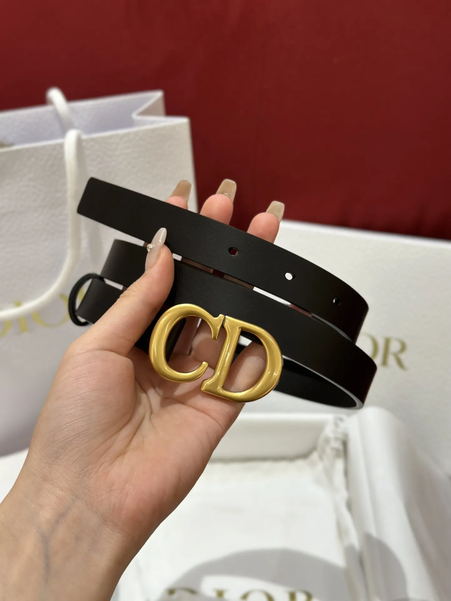 Классический повседневный женский ремень от Dior с пряжкой в СD из меди и натуральной воловьей кожи. Ширина 2,0 см