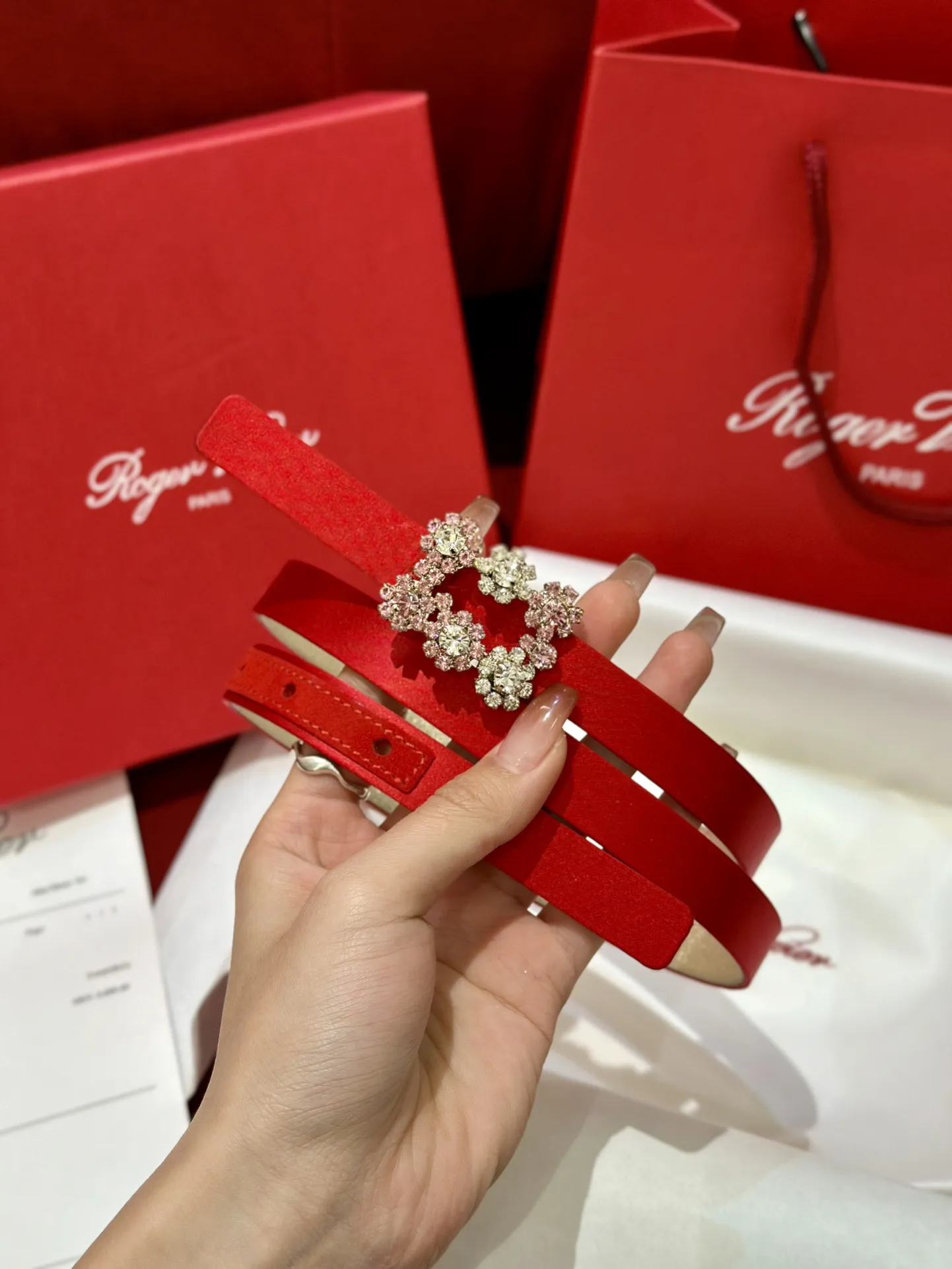 ROGER VIVIER Женский ремень с пряжкой Flower Strass из атласа