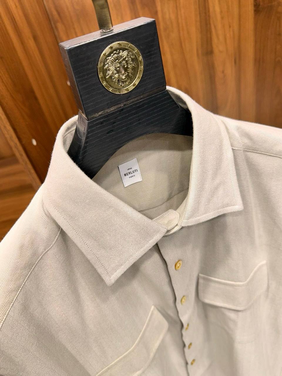 • Пуговицы: Золотистые пуговицы с логотипом BERLUTI придают рубашке изысканный вид. Они аккуратно пришиты и легко застегиваются.