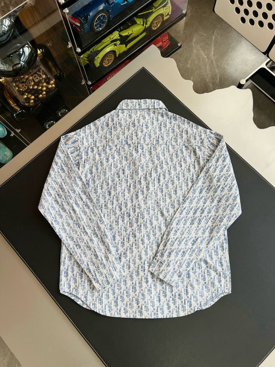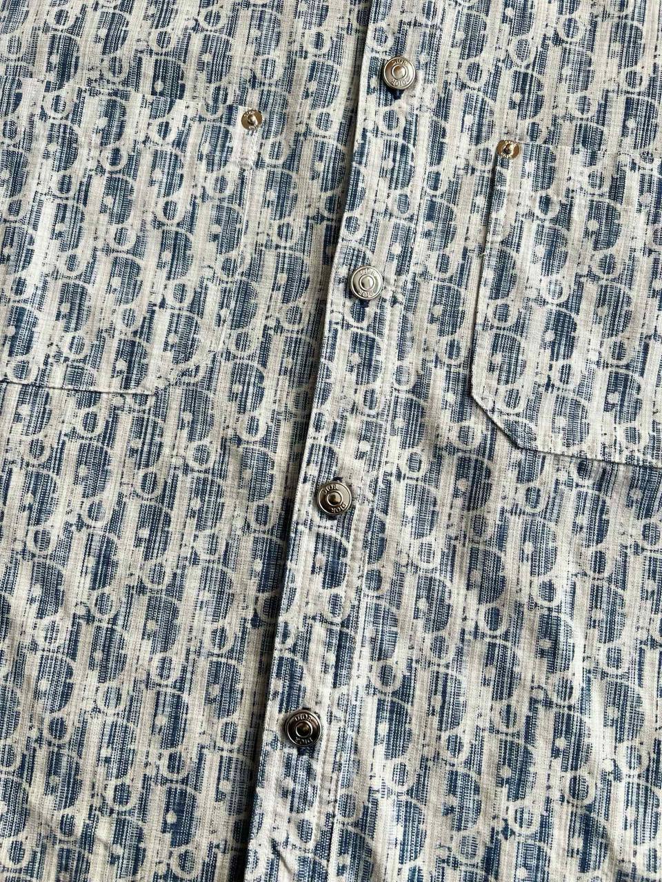 Модель сочетает иконографический диагональный узор с безупречным кроем, идеально подходящим для динамичного городского образа жизни. Christian Dior всегда ставит на премиум-качество, и эта рубашка не исключение. Основной материал — хлопкок, известный своей гладкостью, дышащими свойствами и долговечностью. Ткань прошла специальную обработку для мягкости и устойчивости к складкам, что обеспечивает комфорт в любую погоду. Узор Oblique — фирменный мотив Диора, выполненный в технике цифровой печати с синими линиями на светлом фоне, создающими оптический эффект глубины и движения.