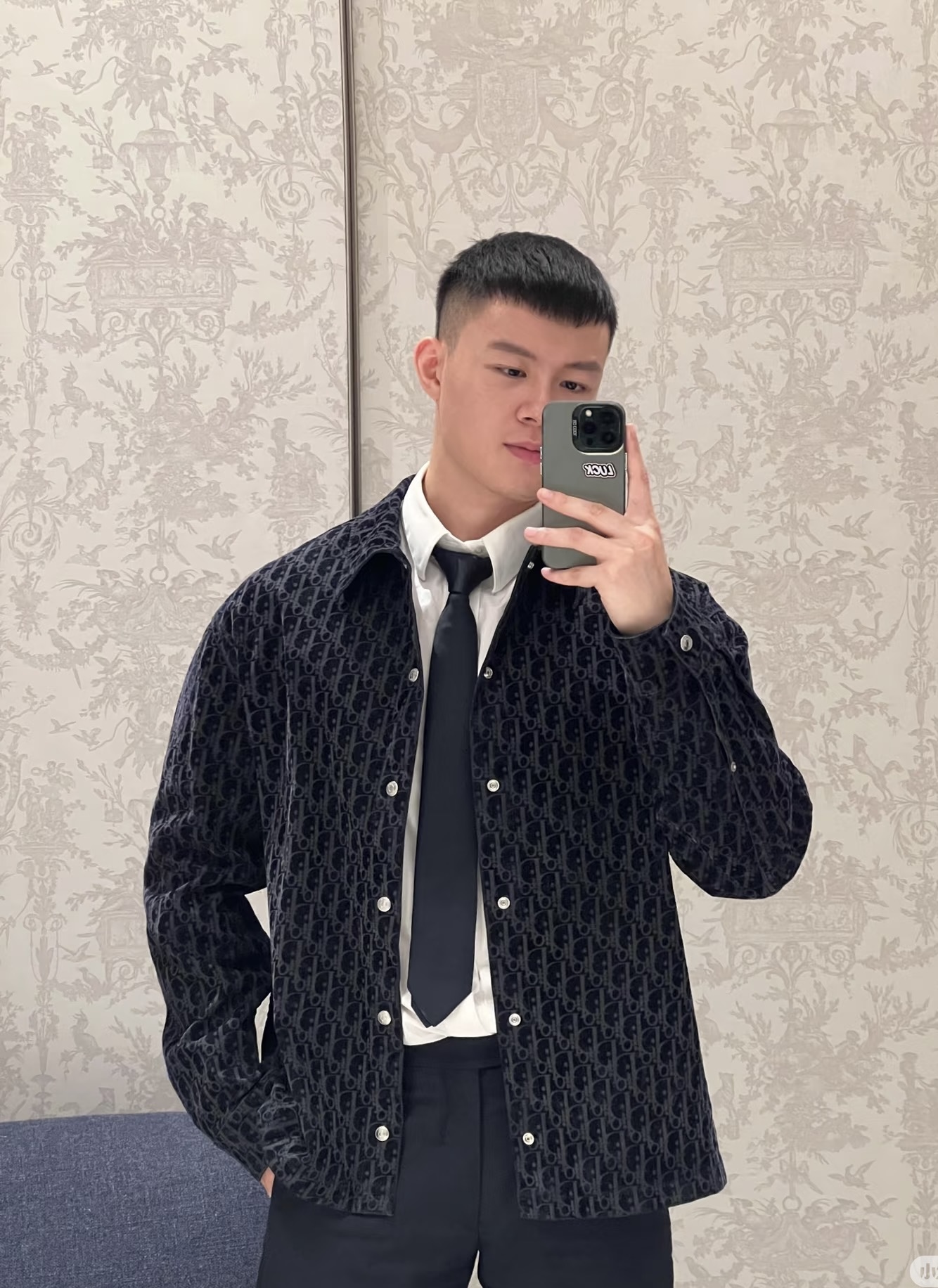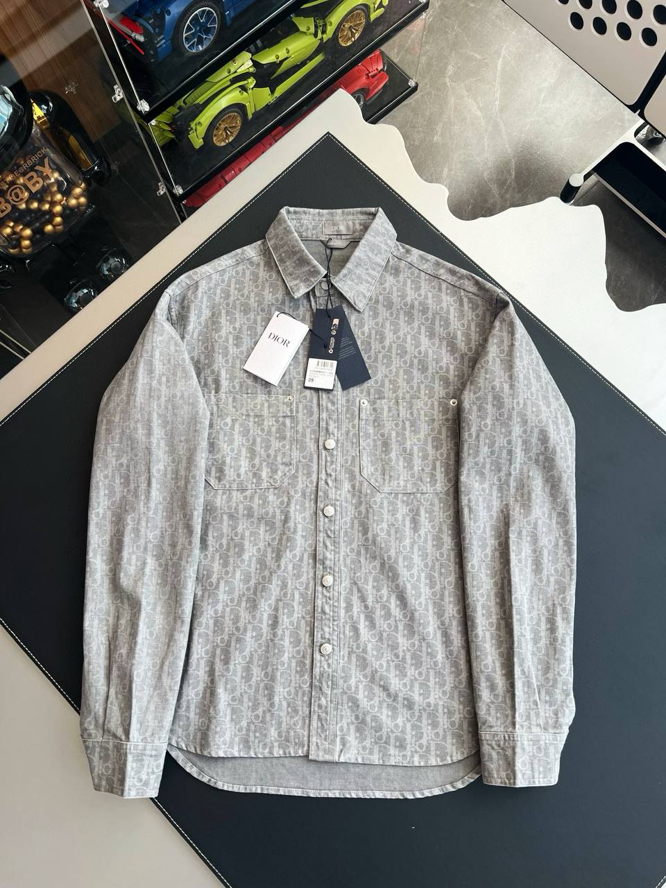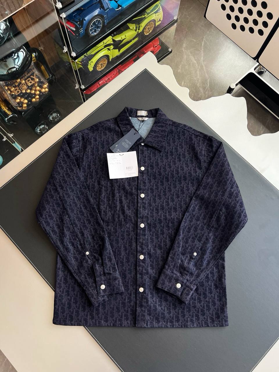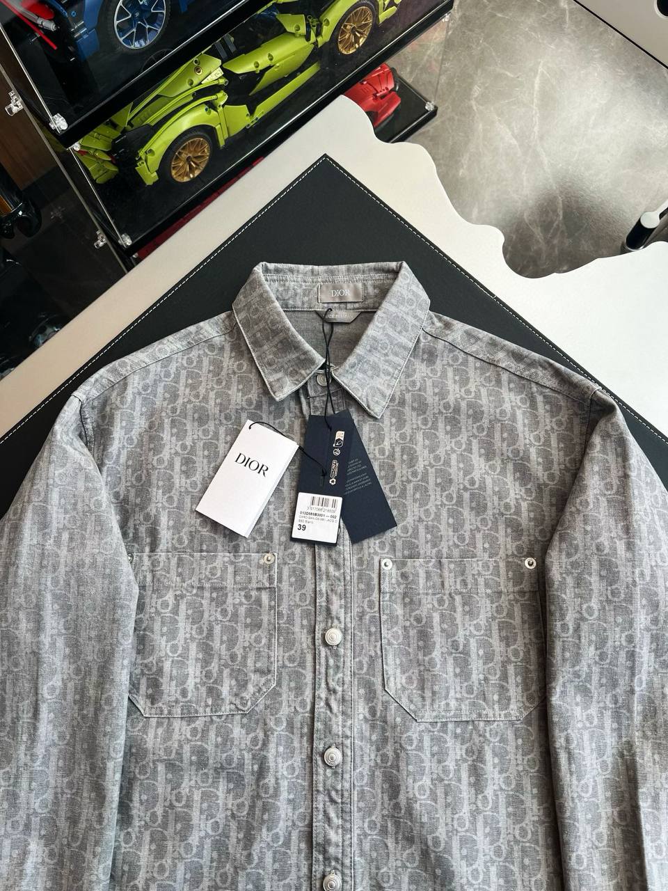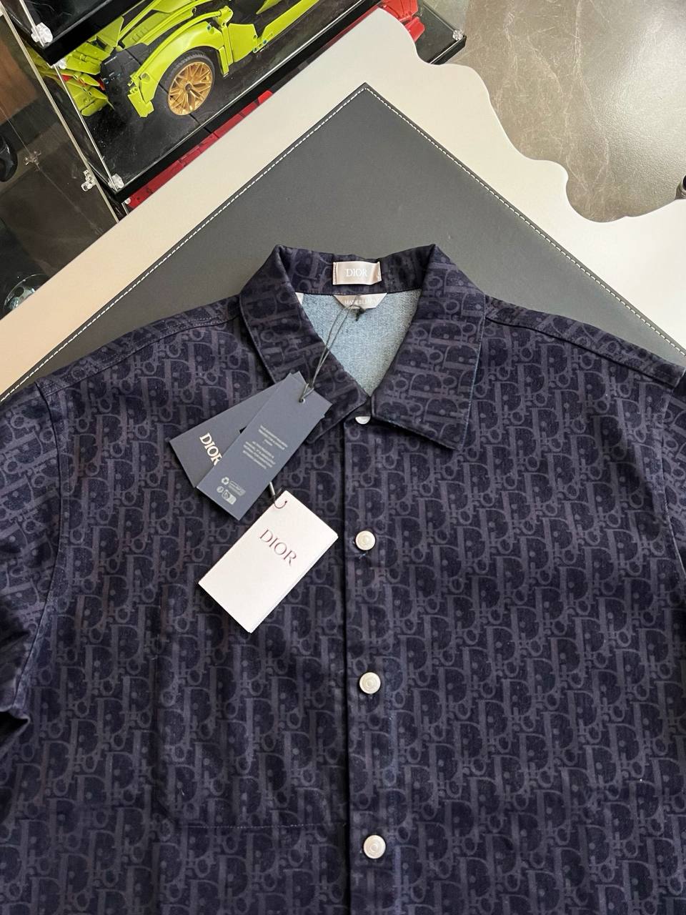 Дизайн подчеркивает классику: классический воротник-стойка с жесткой окантовкой для четких линий, длинные рукава с манжетами на пуговицах, подходящими для запонок. Ярлык с логотипом CD на внутренней стороне подчеркивает аутентичность.