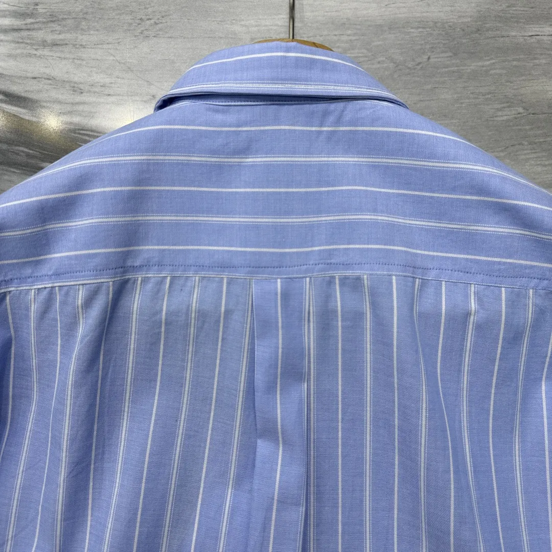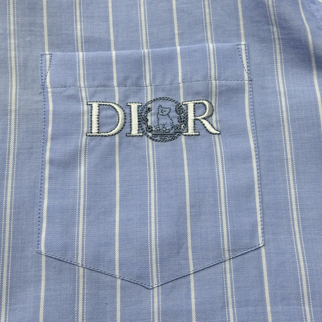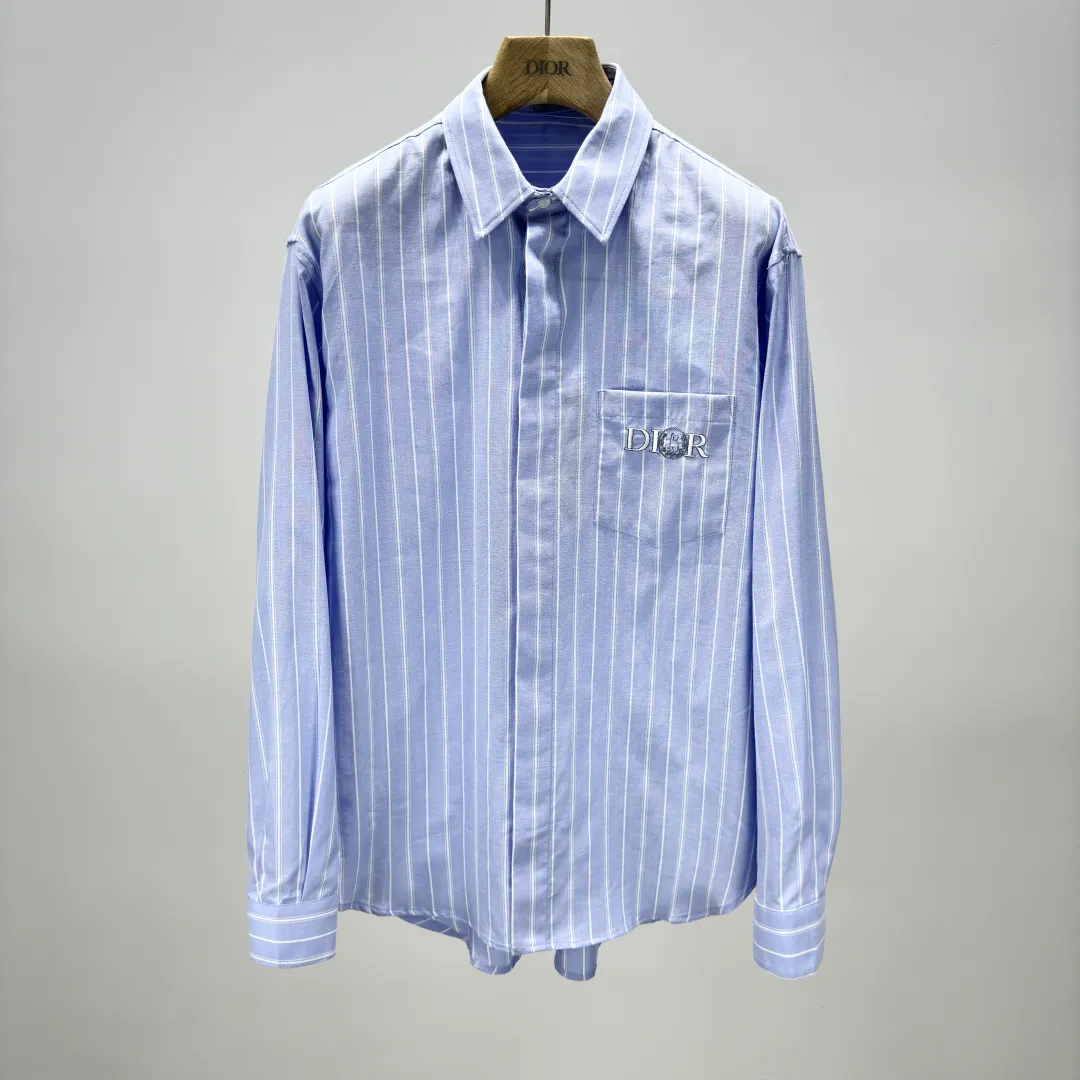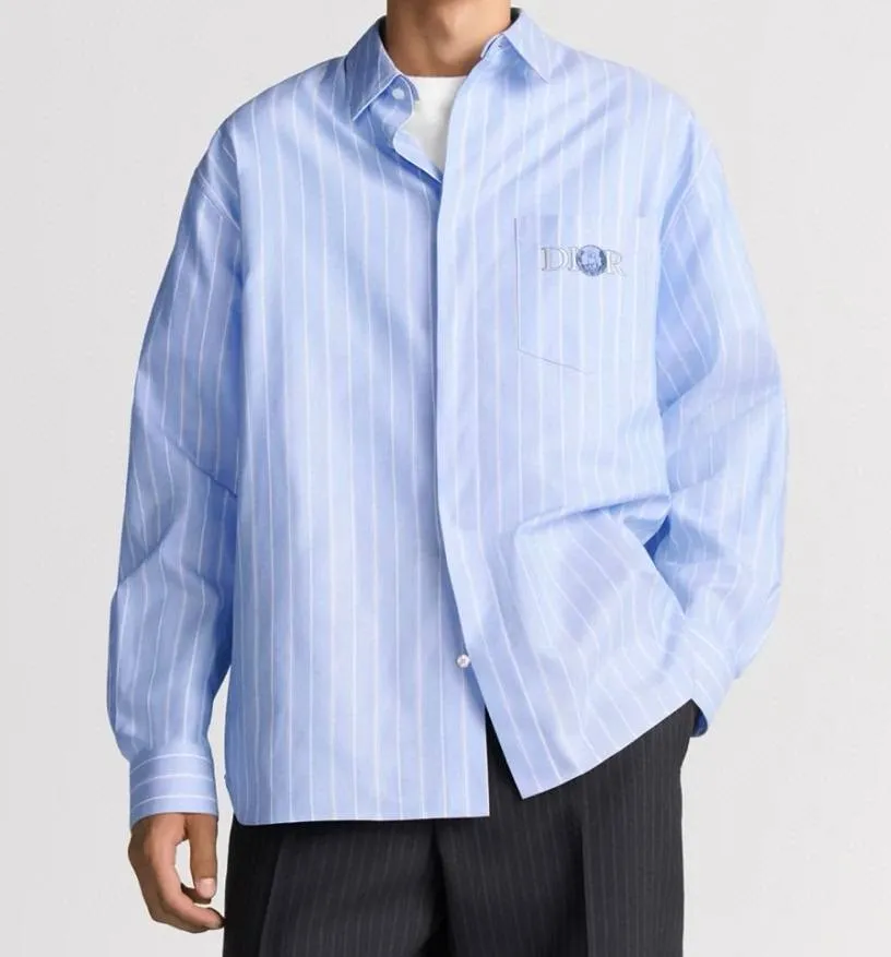 Эта рубашка объединяет в себе классическую элегантность и современный дизайн, являясь ярким примером сотрудничества Dior с художником HYLTON NEL. Выполненная из высококачественной ткани Оксфорд в освежающей сине-белой палитре, она украшена четким полосатым узором, ставшим отличительной чертой этой сезонной коллекции. Сдержанный и изысканный, дизайн дополнен нагрудным накладным карманом, застегивающимся на потайную пуговицу. Детали, такие как потайная планка с пуговицами и слегка закругленный нижний край, подчеркивают внимание к деталям и обеспечивают комфортную посадку.
