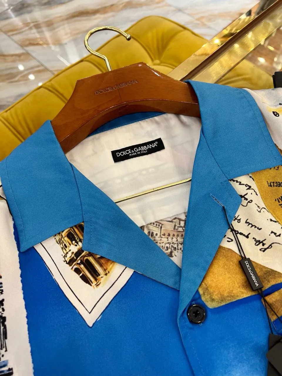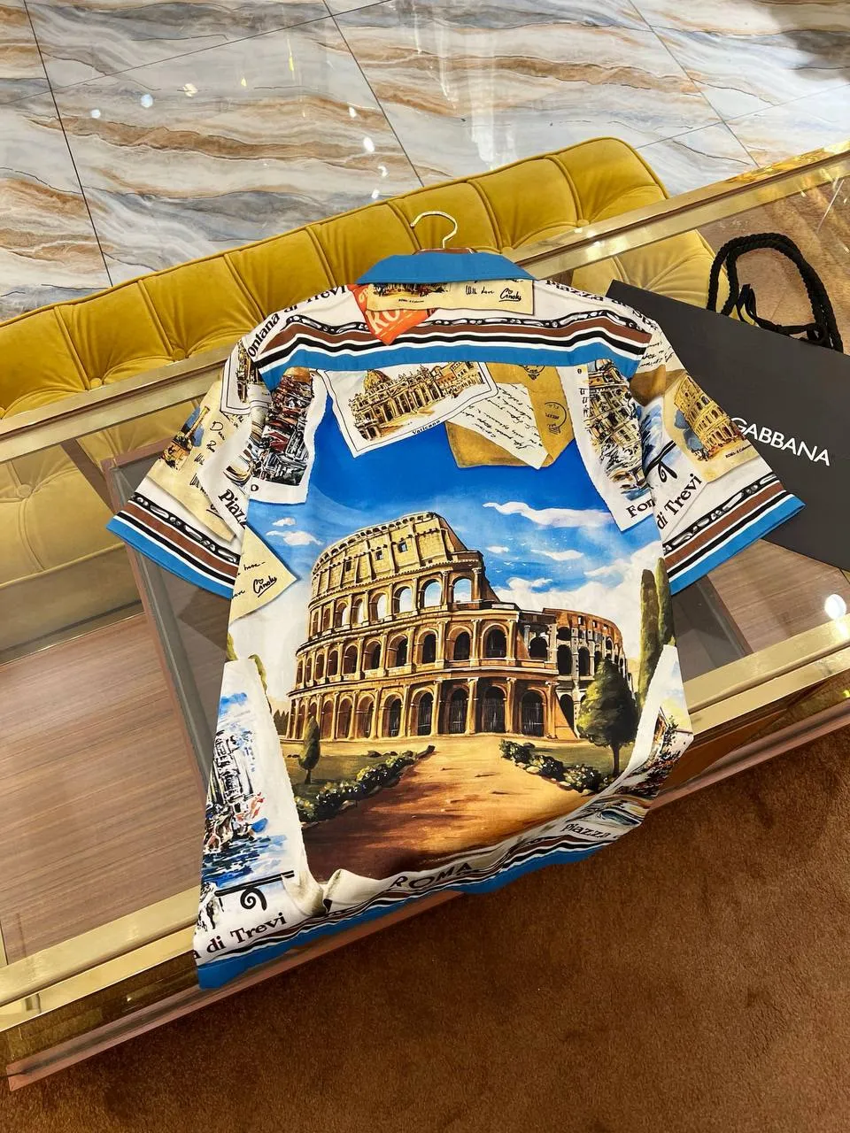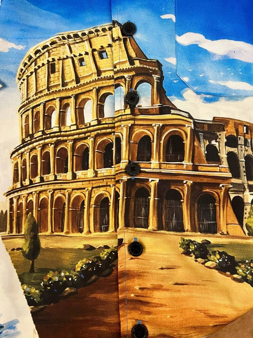 Мужская рубашка от Dolce & Gabbana из шёлка ― воплощение итальянского стиля и роскоши. Модель с коротким рукавом украшена ярким и запоминающимся принтом, на котором изображены знаковые достопримечательности Рима: Колизей, Фонтан Треви и другие символы Вечного города.