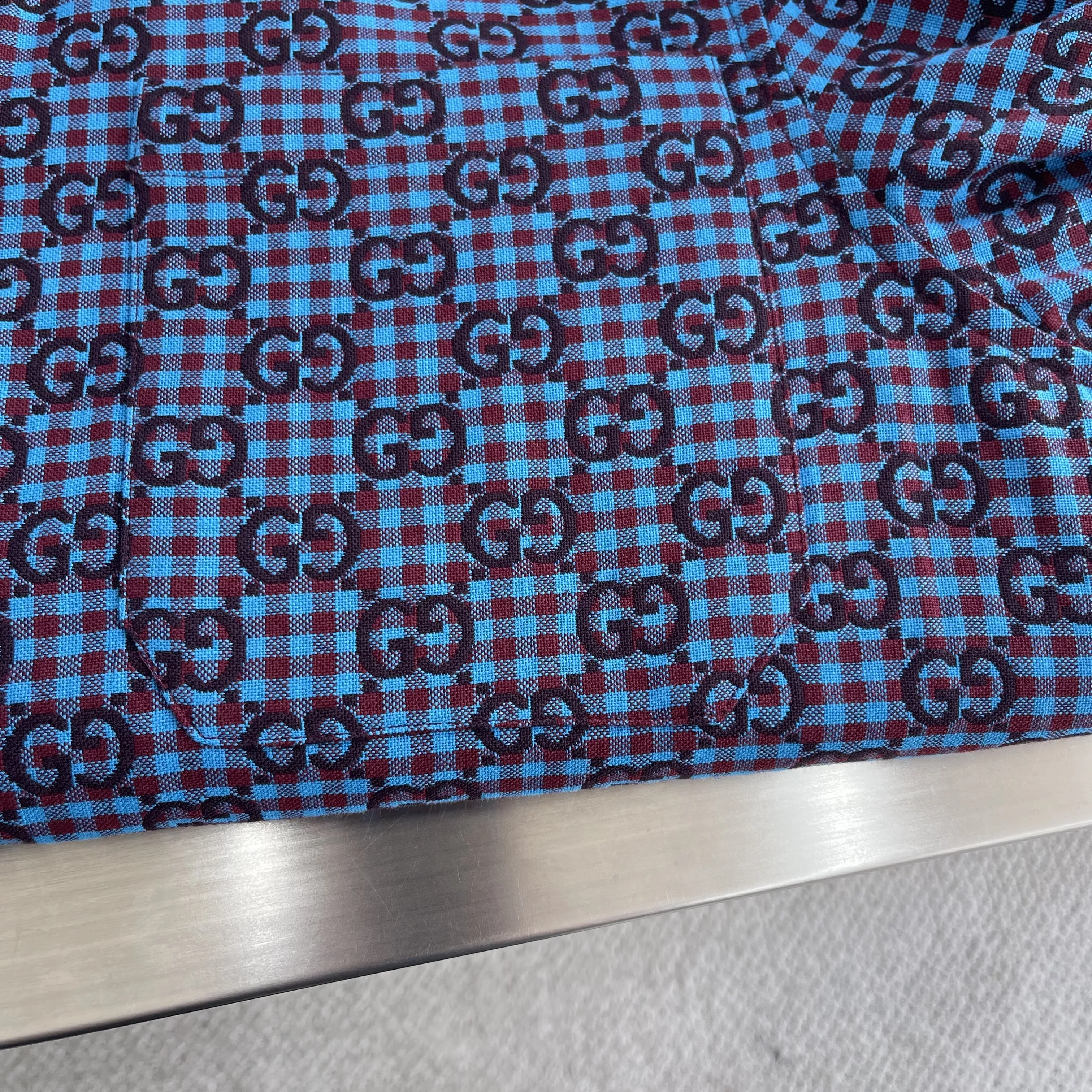 Представляем новую рубашку свободного кроя Gucci, воплощение роскошного комфорта и утонченного стиля. Выполненная из премиальной жаккардовой ткани GG Vichy, сотканной из смеси хлопка и шерсти, эта рубашка отличается нежной текстурой и изысканным узором, мгновенно привлекающим внимание. Свободный крой обеспечивает непринужденную элегантность и свободу движений. Завершают образ изящные перламутровые пуговицы, добавляя нотку изысканности и подчеркивая внимание бренда к деталям.