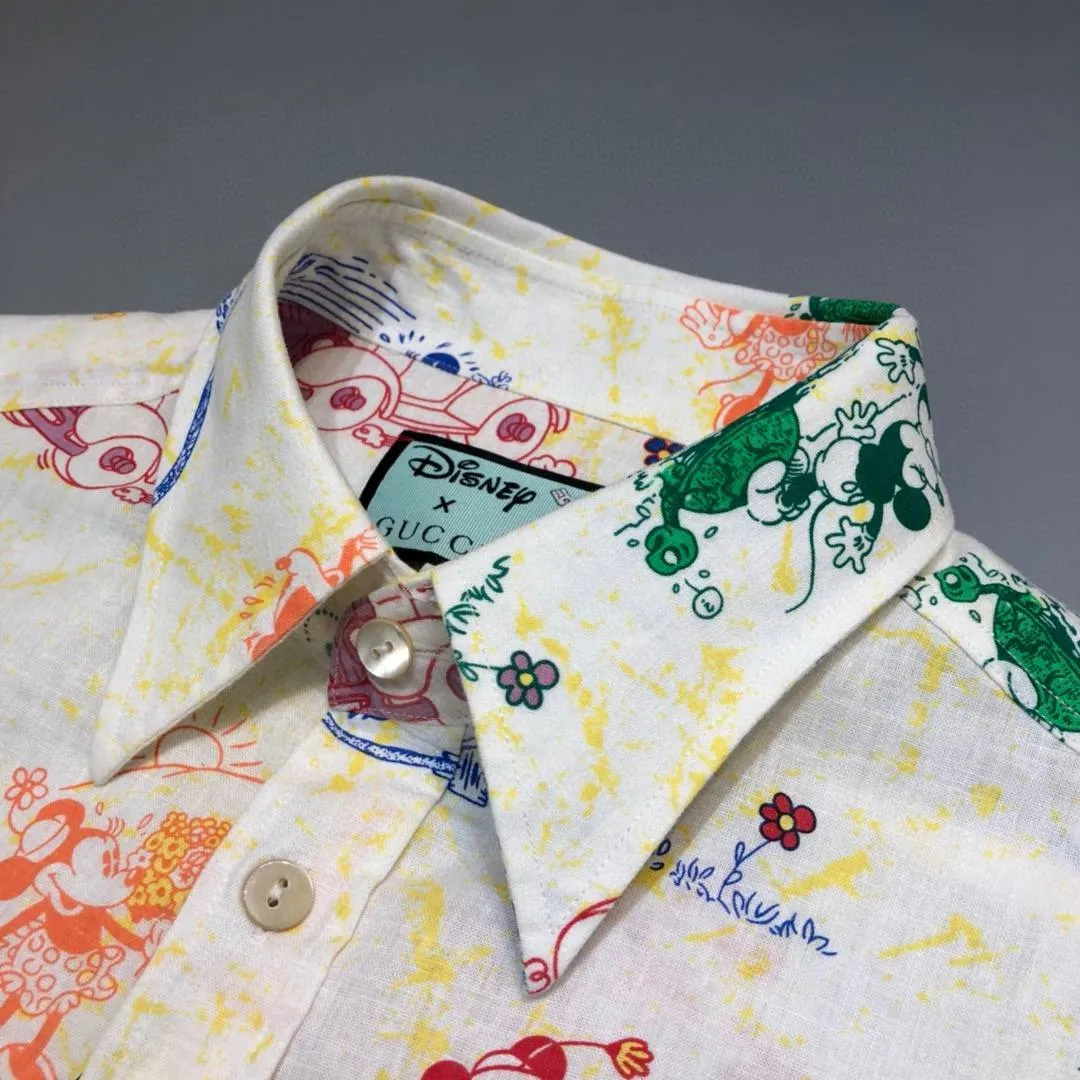 Представляем вам рубашку с коротким рукавом из ограниченной серии GUCCI, специально разработанной в коллаборации с Disney. Эта рубашка — идеальное сочетание стиля и игривости, которое привлекает внимание благодаря яркому принту с любимыми персонажами — Микки и Минни Маус, которые словно ожили на ткани! Изготовленная из высококачественного импортного хлопка, рубашка обеспечивает максимальный комфорт и дышащие свойства. Безупречное качество пошива и внимание к деталям делают эту рубашку не только стильной, но и долговечной. Она идеально подходит как для праздничных встреч, так и для повседневной носки, придавая вашему гардеробу свежий и уникальный акцент.