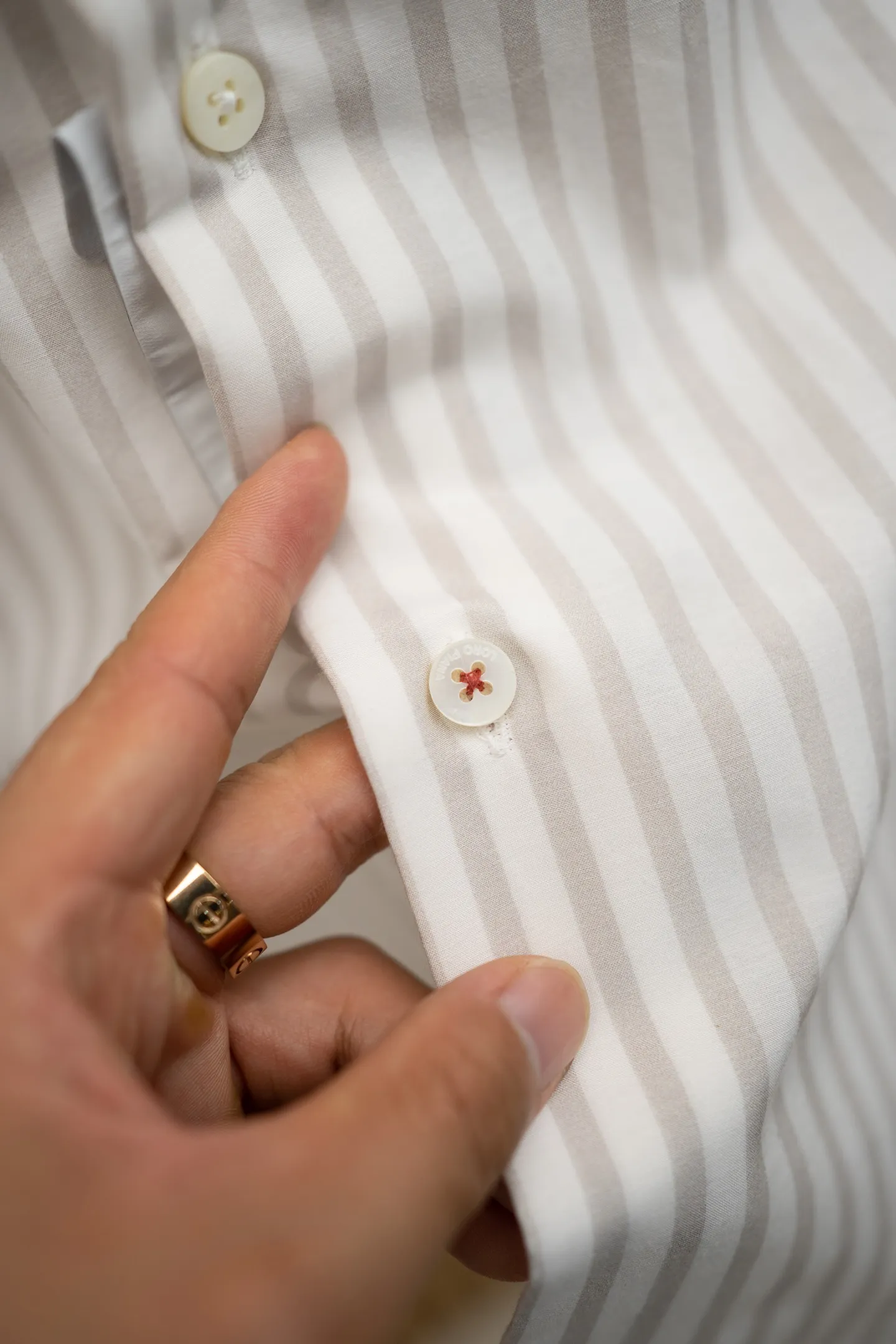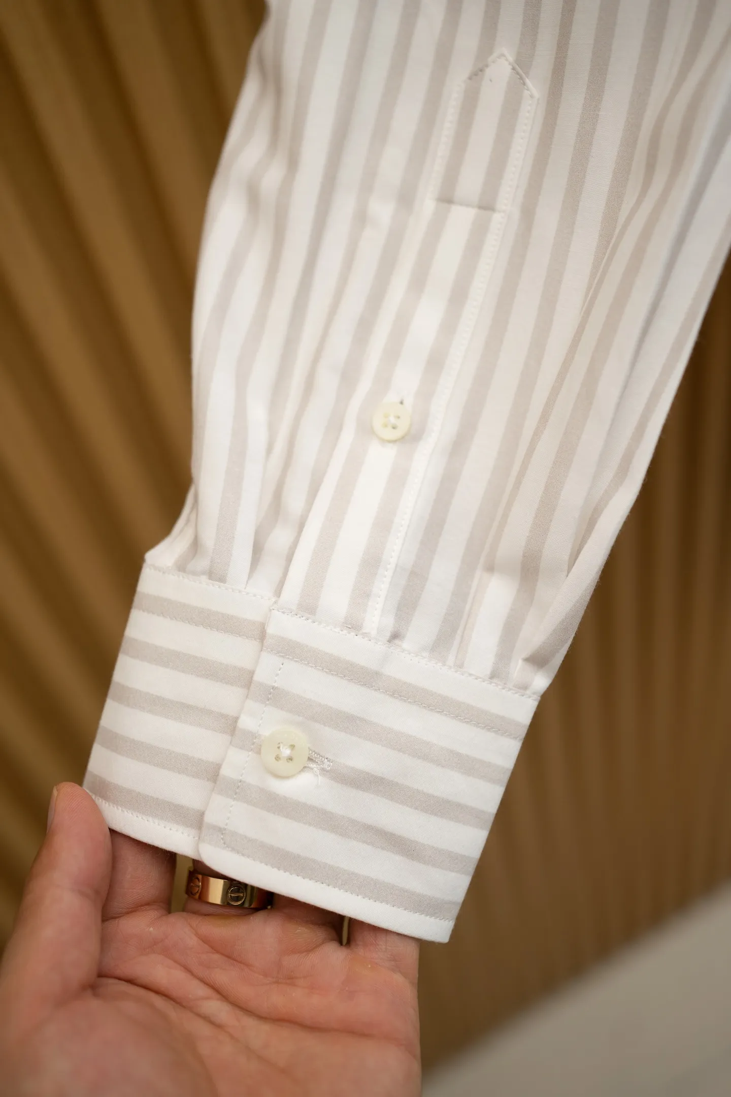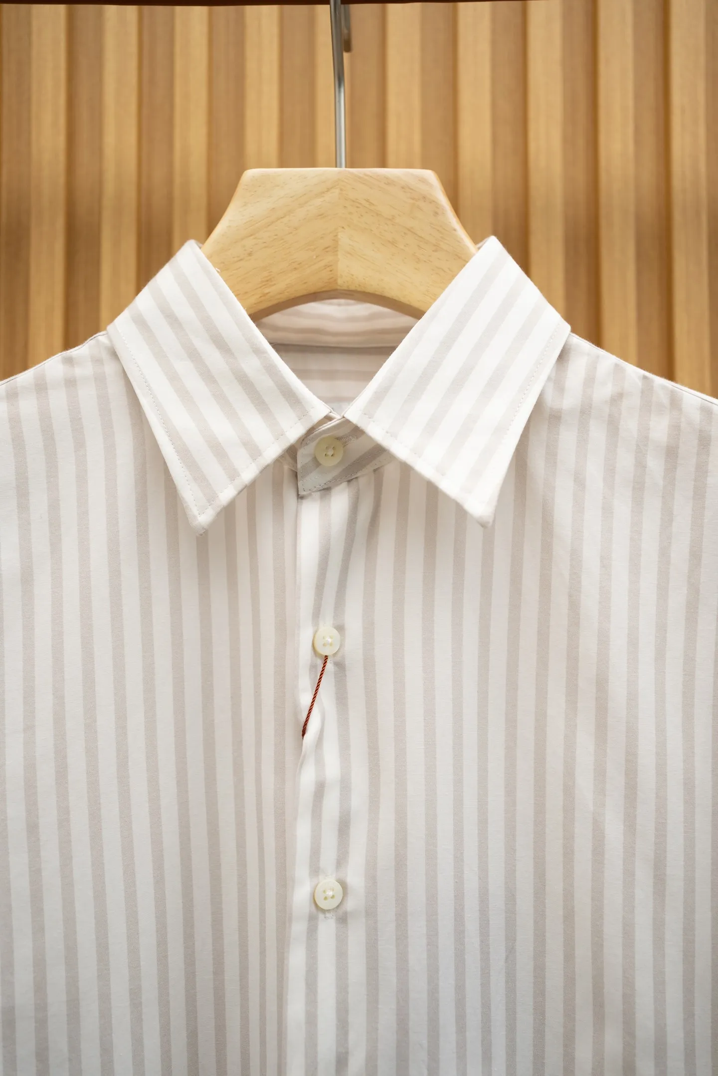 Классический воротник и аккуратная застёжка на пуговицы подчёркивают безупречный стиль рубашки. Нейтральная полоска подойдёт как для деловых, так и для повседневных образов. Идеальный выбор для ценителей высокого качества и итальянской элегантности.