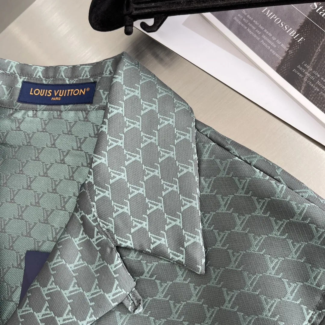 Откройте для себя свежий бриз элегантности с новой рубашкой LV. Выполненная из роскошного микса шелка и шерсти, эта рубашка с открытым воротником вдохновлена миром парусного спорта. Уникальный жаккардовый узор LV Fishnet с логотипом LV создает завораживающий красочный эффект на глубоком фоне. Идеально сочетается с шортами из этой же коллекции для создания безупречного образа.