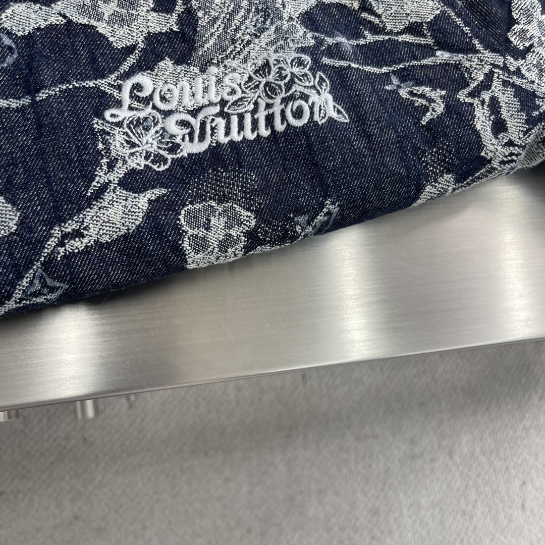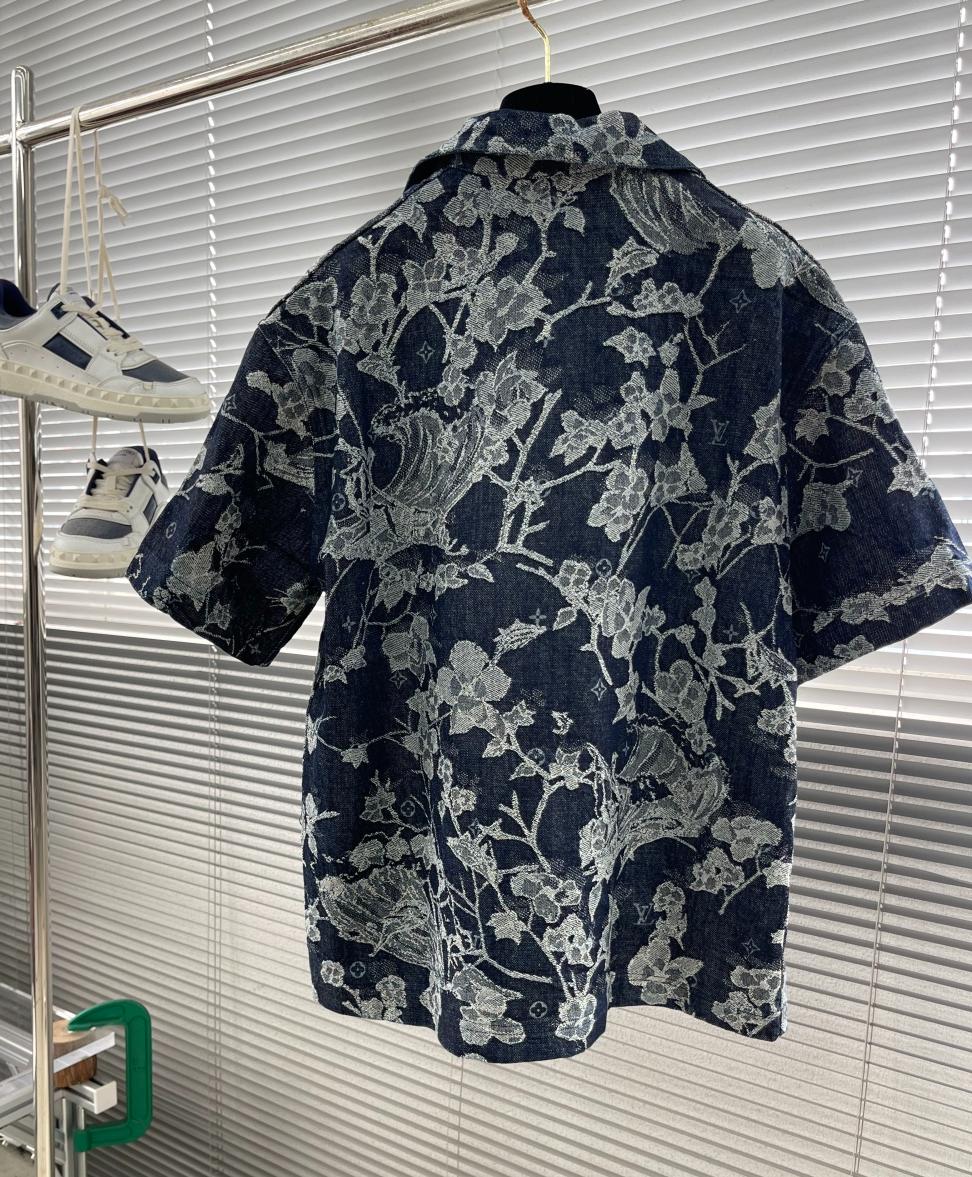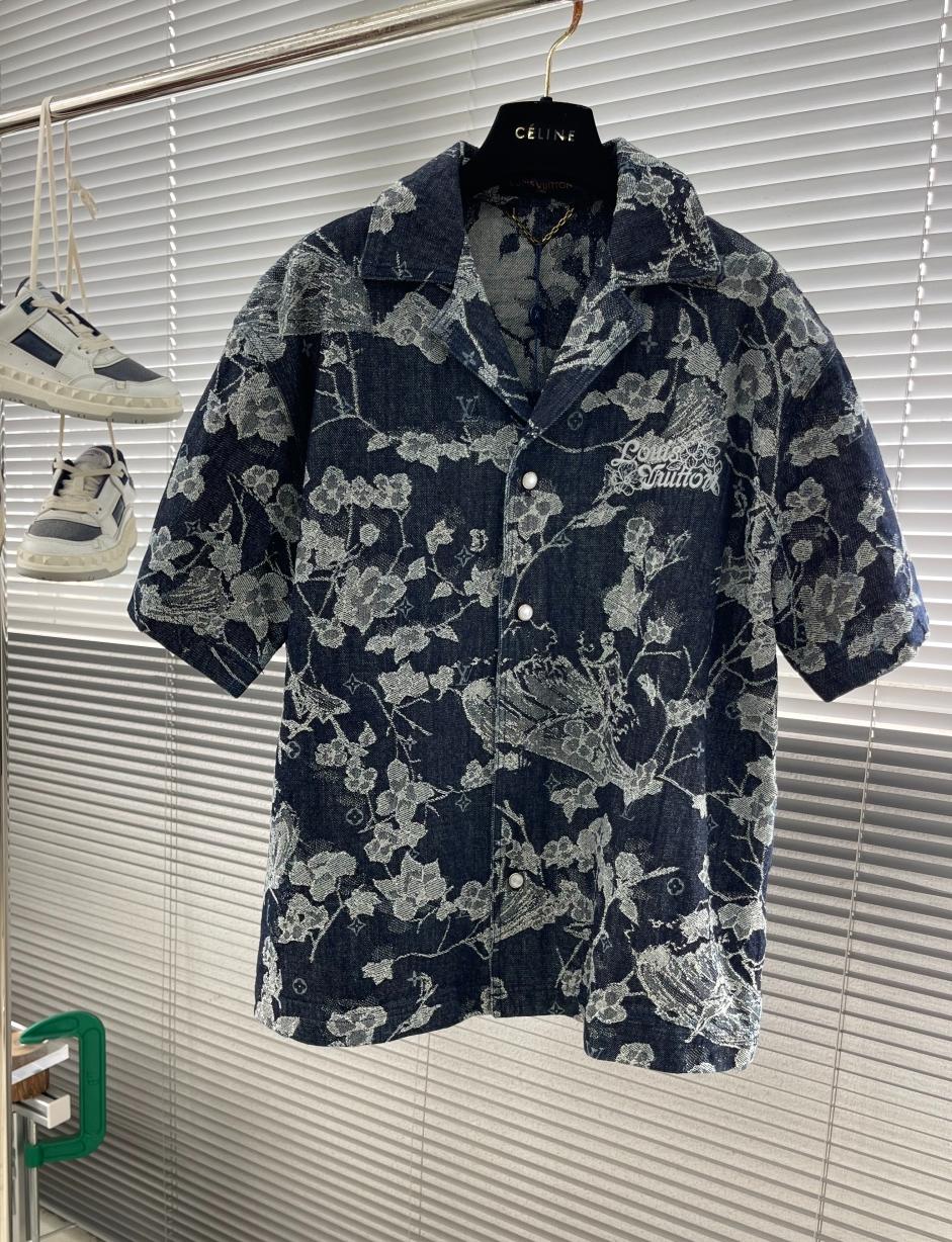 На груди расположен вышитый логотип Louis Vuitton, дополняющий общий дизайн. Классический воротник, короткий рукав и свободный крой обеспечивают комфорт и универсальность.