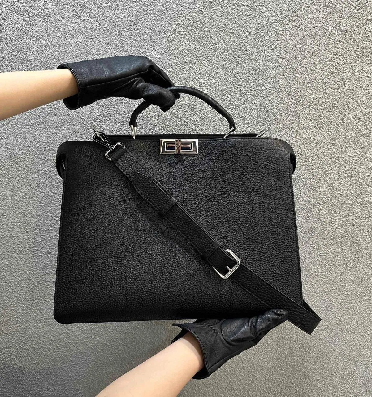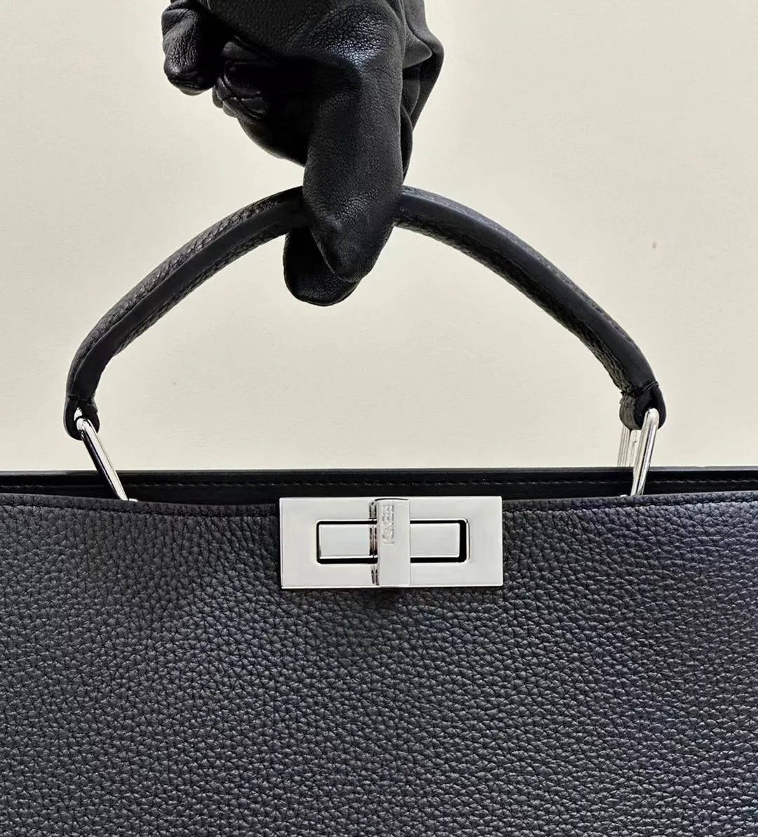 Сумка FENDI Peekaboo ISeeU — это элегантный аксессуар, выполненный из качественной черной кожи Cuoio Romano, который идеально подойдет как для повседневной носки, так и для специальных случаев.