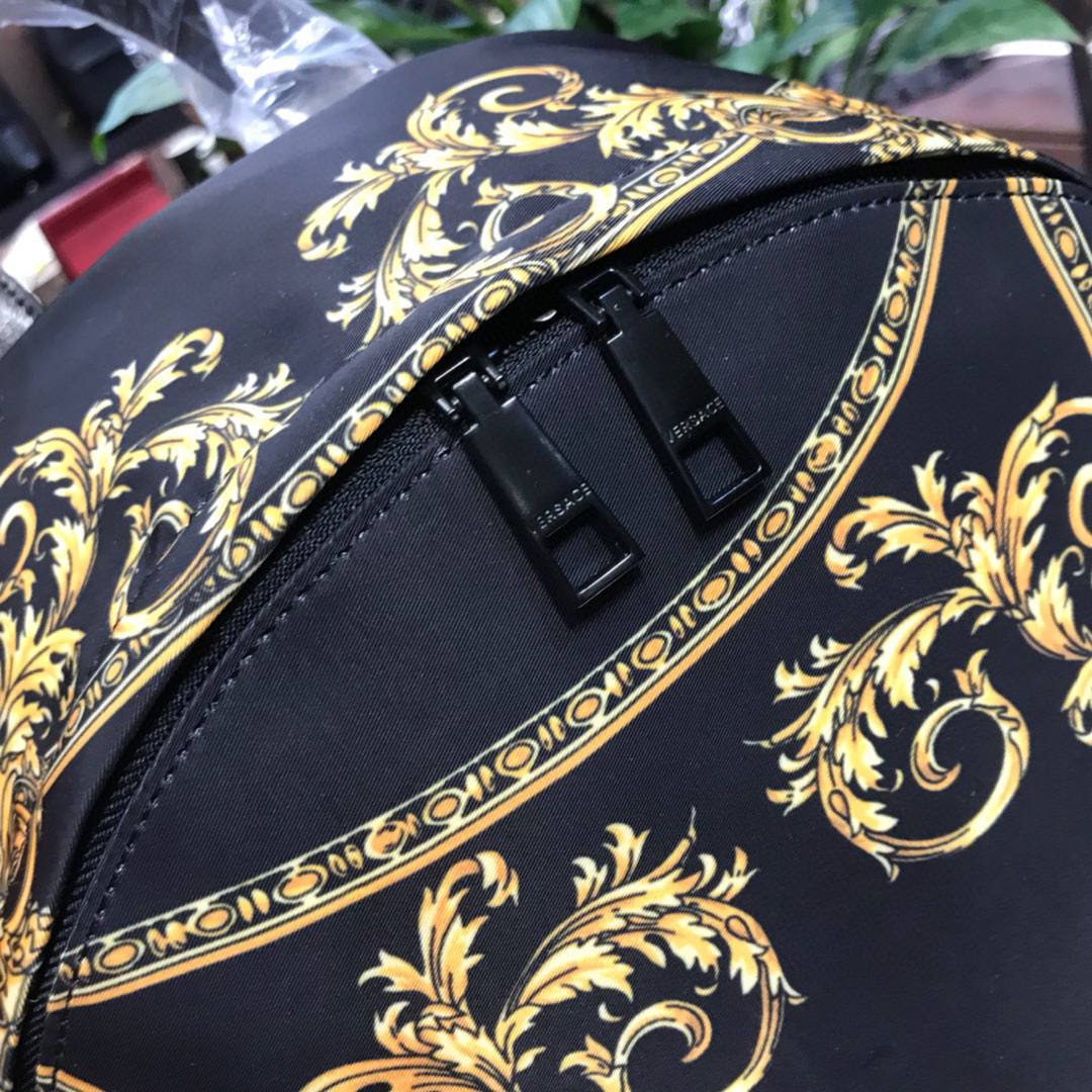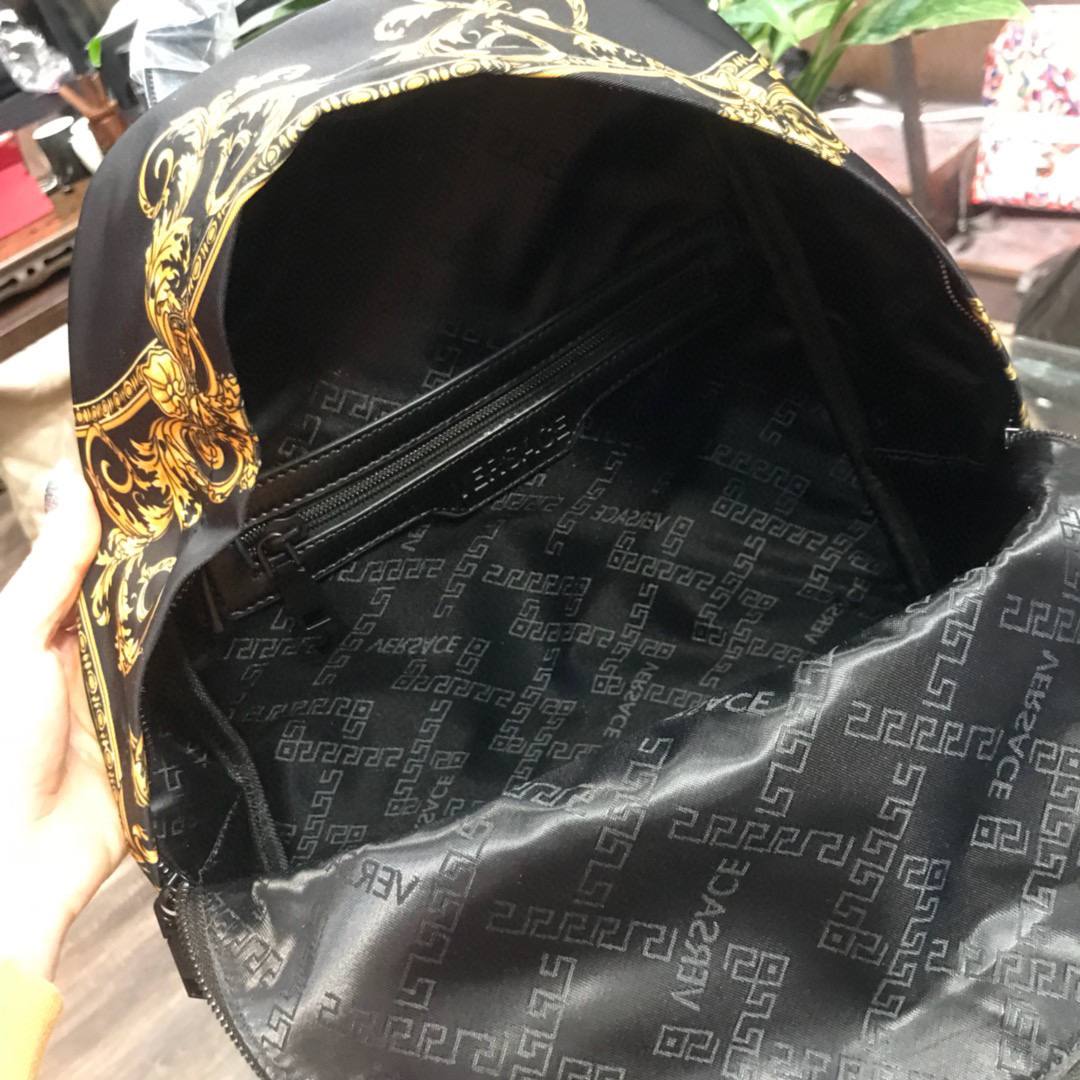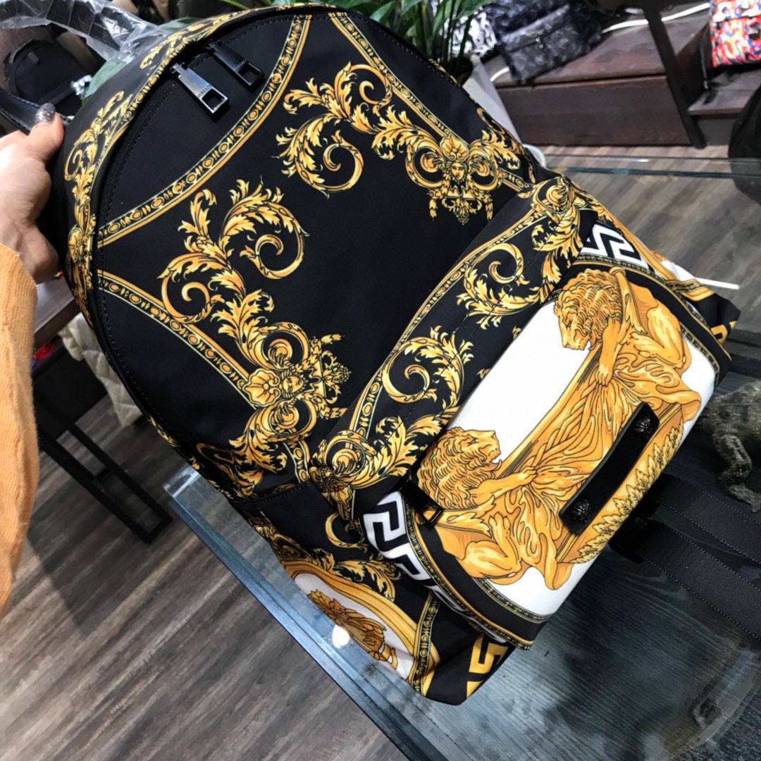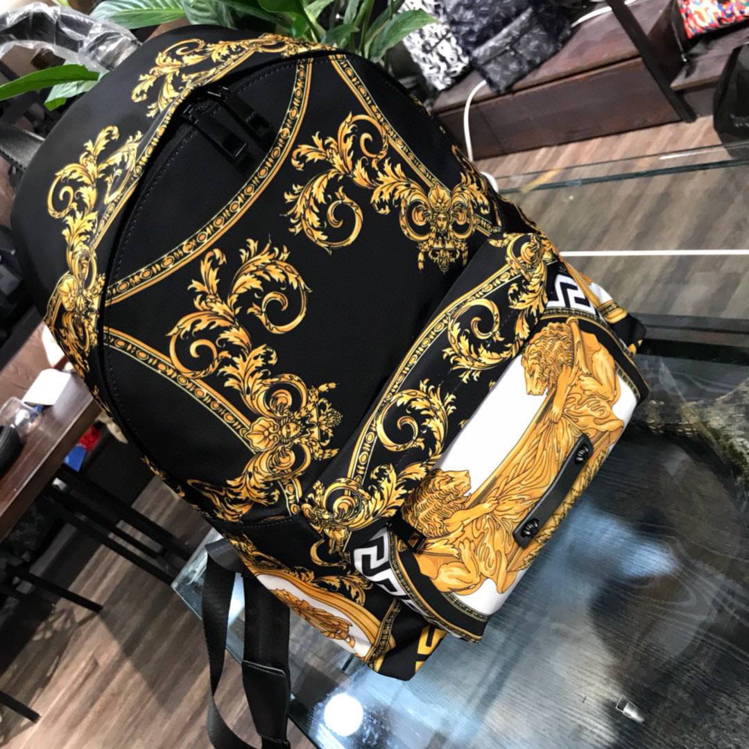 VERSACE рюкзак — это элегантный и стильный аксессуар, который объединяет роскошь и функциональность. Выполненный в черном цвете, он украшен принтом золотистого цвета, отражающим фирменный стиль бренда. Спереди находится накладной карман, который удачно дополняет общий дизайн и предоставляет быстрый доступ к мелким вещам. Застежка на молнии сверху надежно закрывает основное отделение, достаточно вместительное для всего необходимого. Эта сумка прекрасно подчеркнёт индивидуальность и вкус своего владельца.
