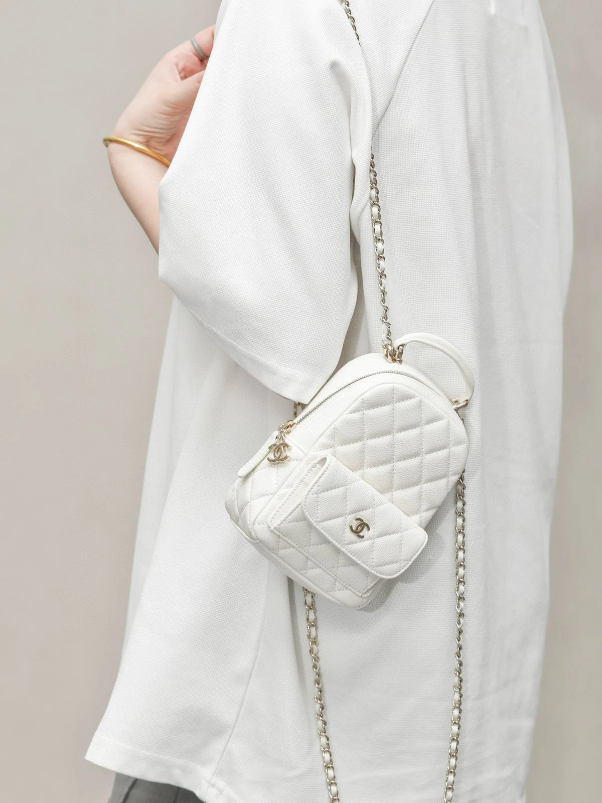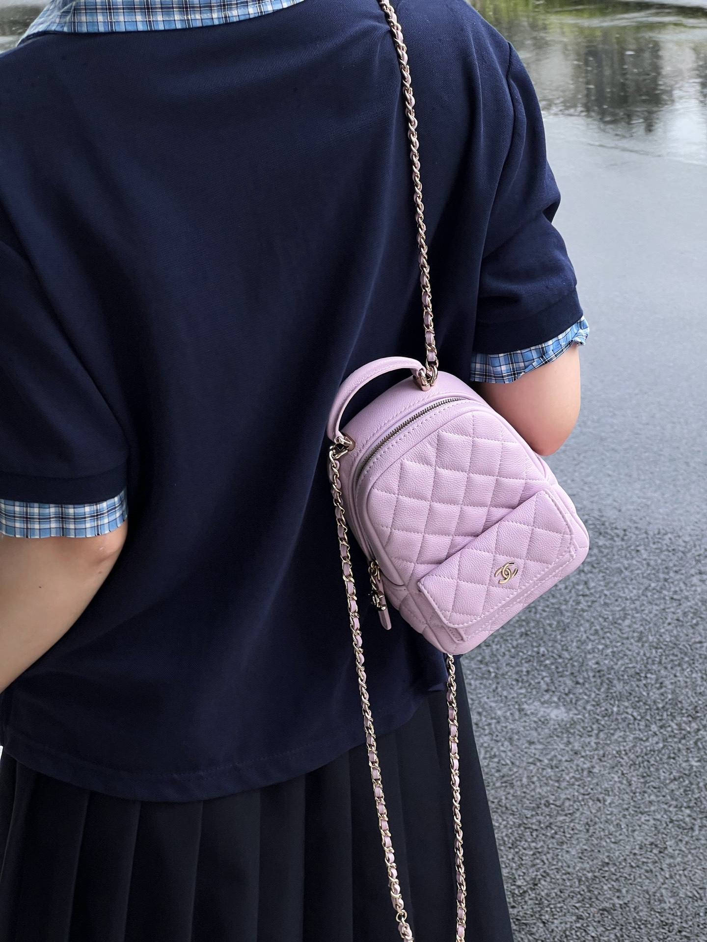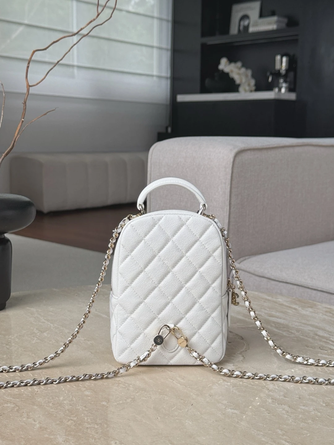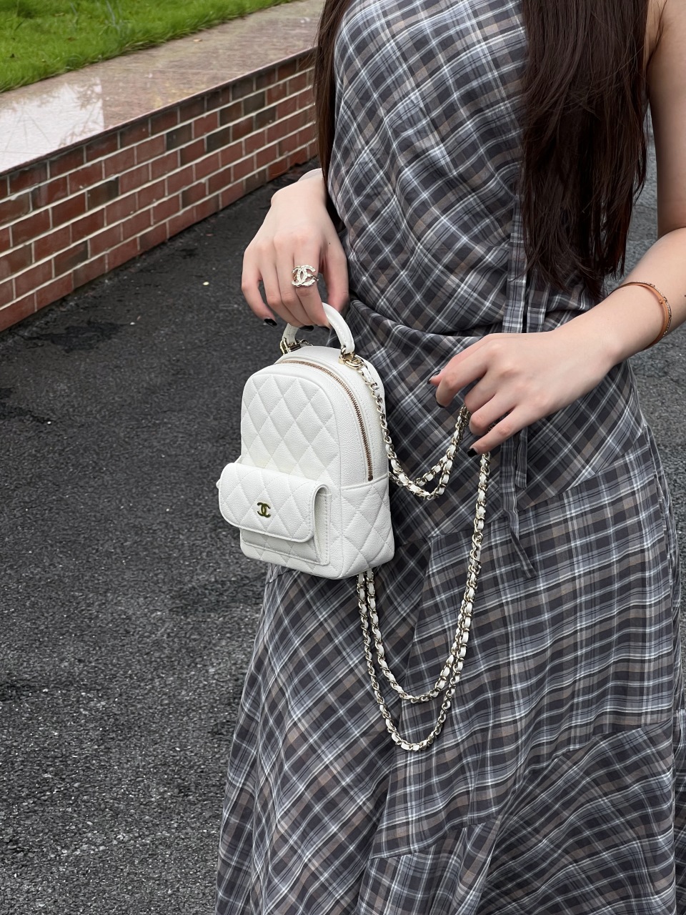 Удобная ручка сверху и длинная цепочная лямка позволяют носить рюкзак на плечо или в руках, а благодаря небольшому размеру модель идеально подойдёт для прогулок по городу и вечерних выходов.