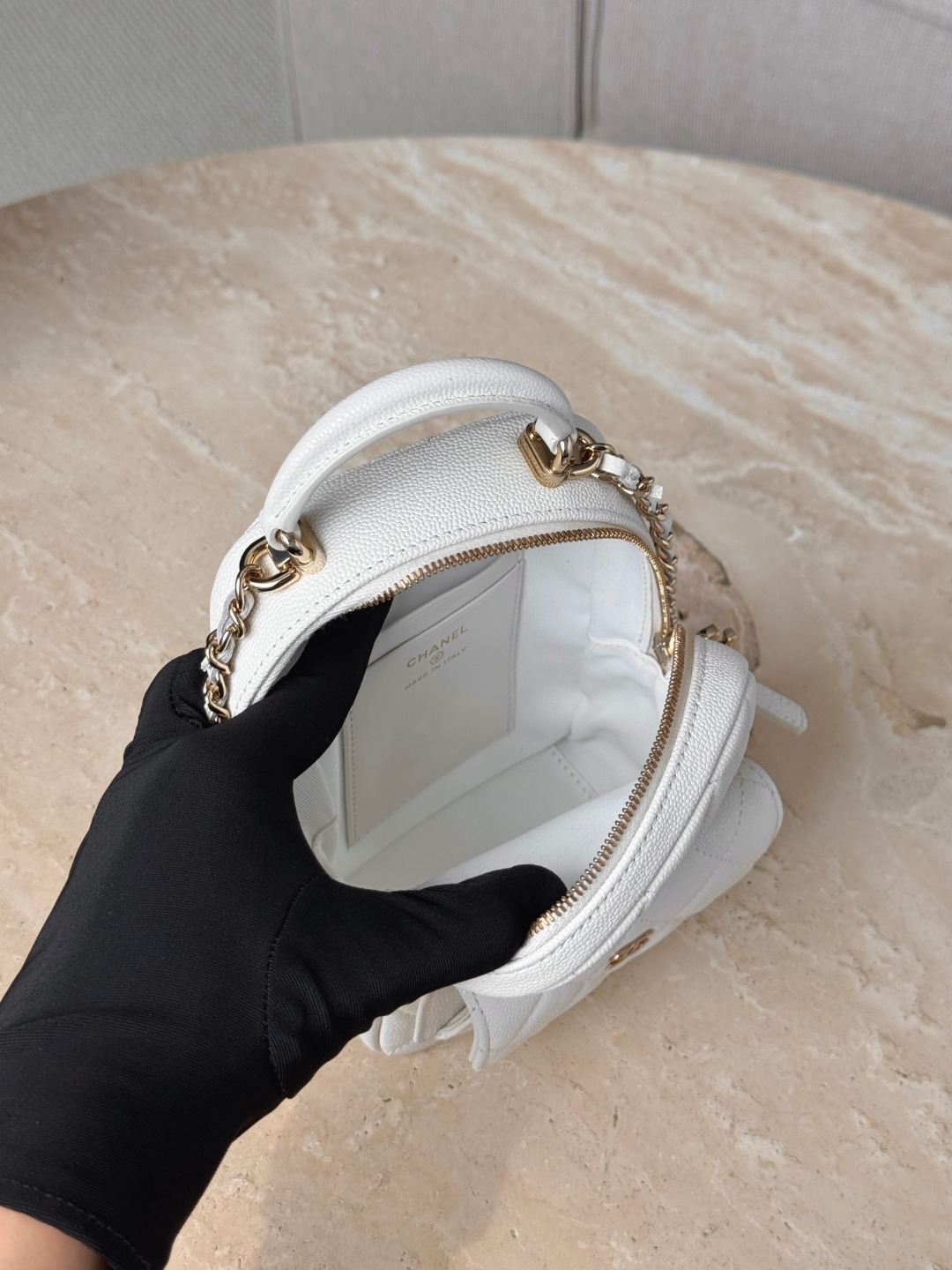 Женский рюкзак 25P Mini — это воплощение элегантности и современного шика в компактном формате. Изготовленный из высококачественной черной кожи с культовой стеганой строчкой, рюкзак украшен узнаваемой эмблемой Chanel на переднем кармане. Контрастная белая окантовка подчеркивает чистоту линий и придаёт аксессуару особую выразительность.