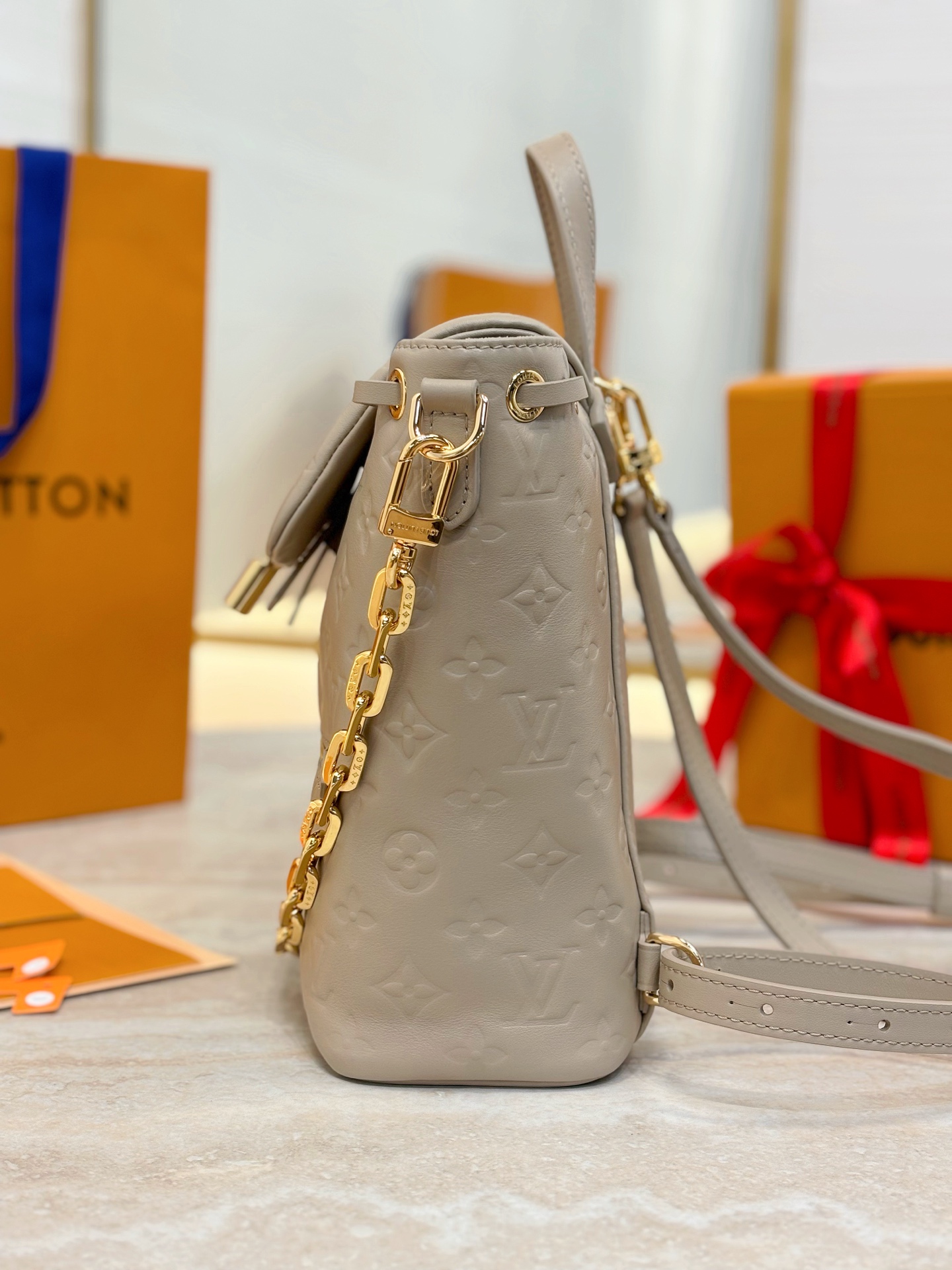 Рюкзак PM из линейки Coussin является отличным примером сочетания функциональности и элегантности. Его мягкая кожа с тиснением монограммы придаёт изделию стильный и современный вид, а культовый замок LV добавляет нотку роскоши.