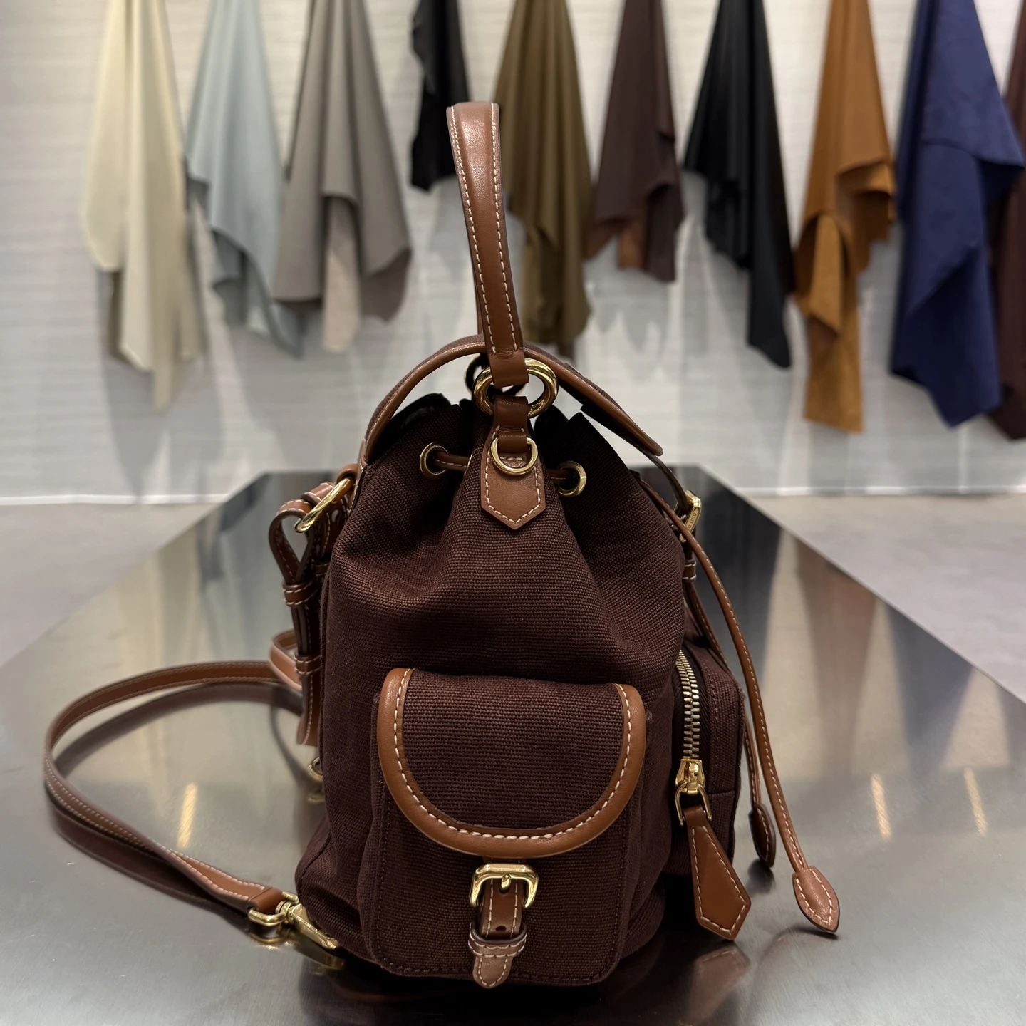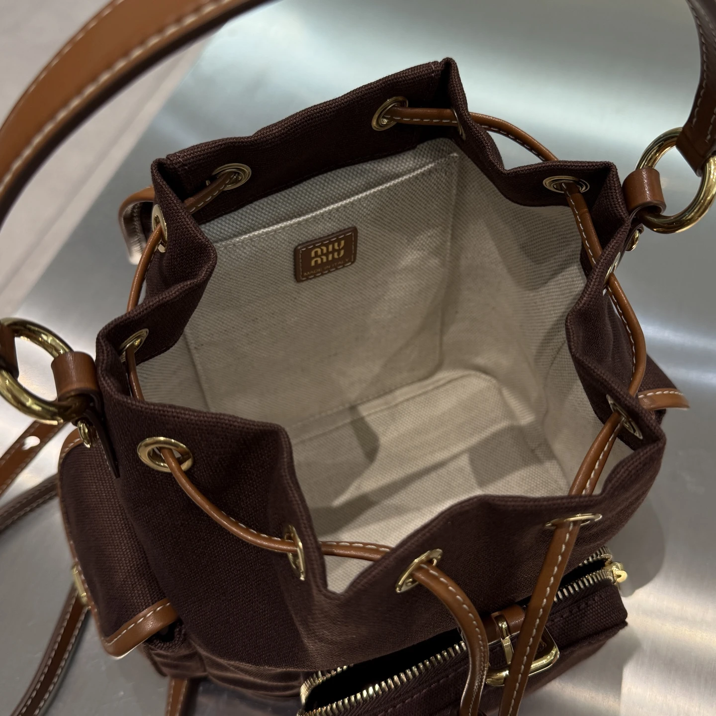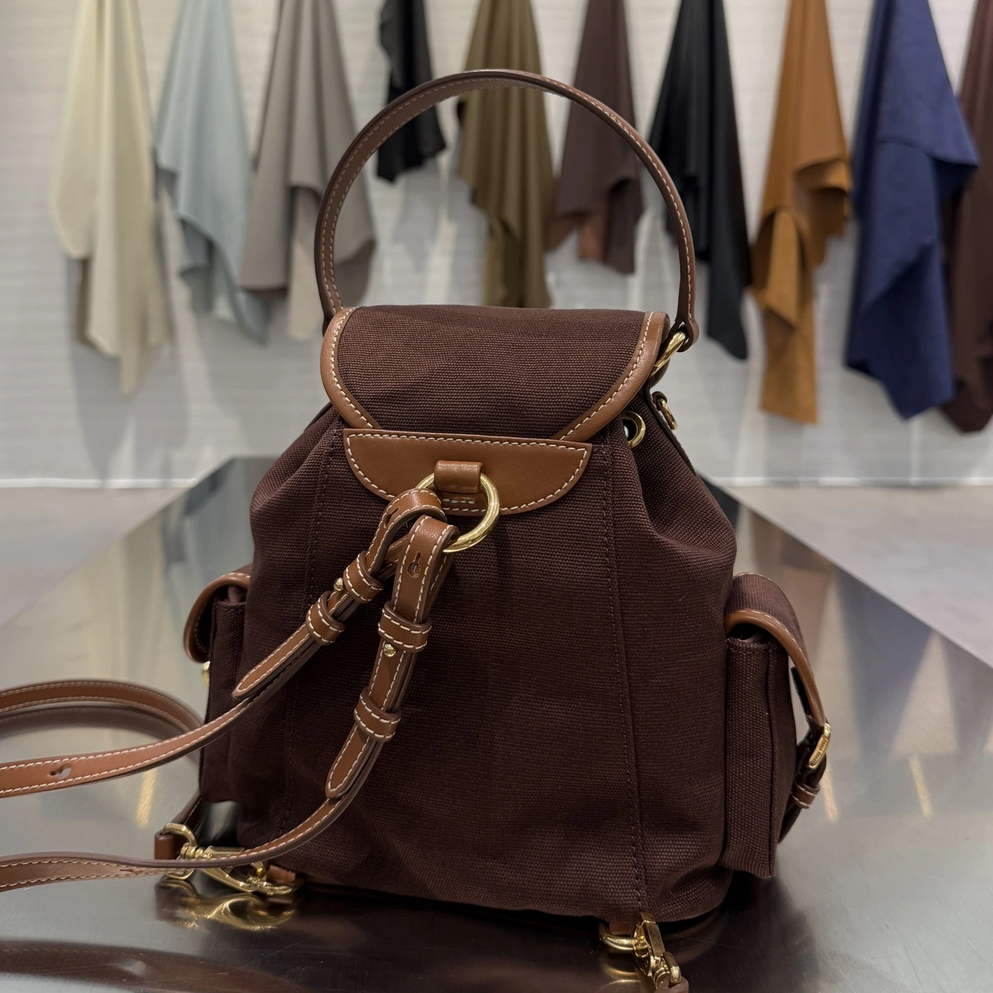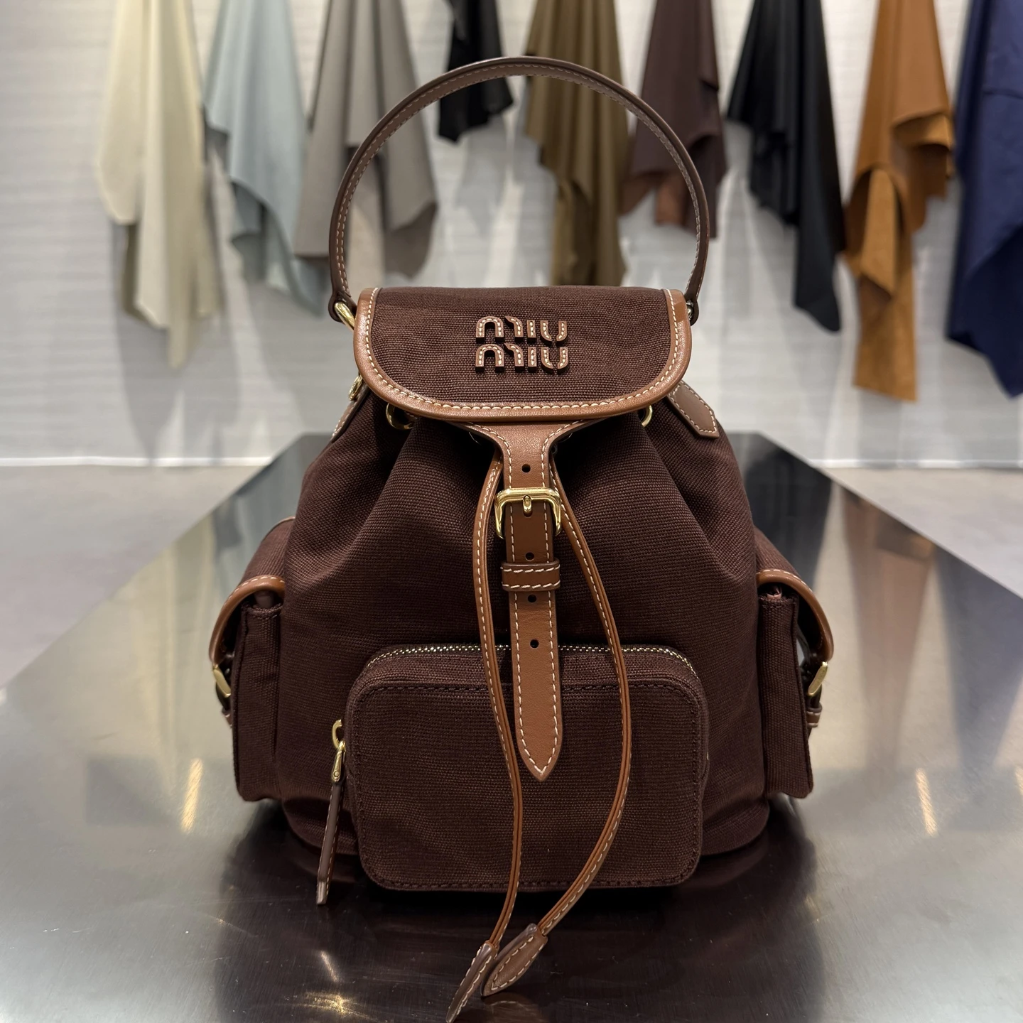 Стильный рюкзак Miu Miu из плотной ткани с отделкой из натуральной кожи — практичный и современный аксессуар на каждый день. Лёгкий и вместительный, он удобен в носке благодаря регулируемым ремням, а фирменный логотип и аккуратная фурнитура подчёркивают его премиальный характер. Отличный выбор для городского ритма и активного образа жизни.