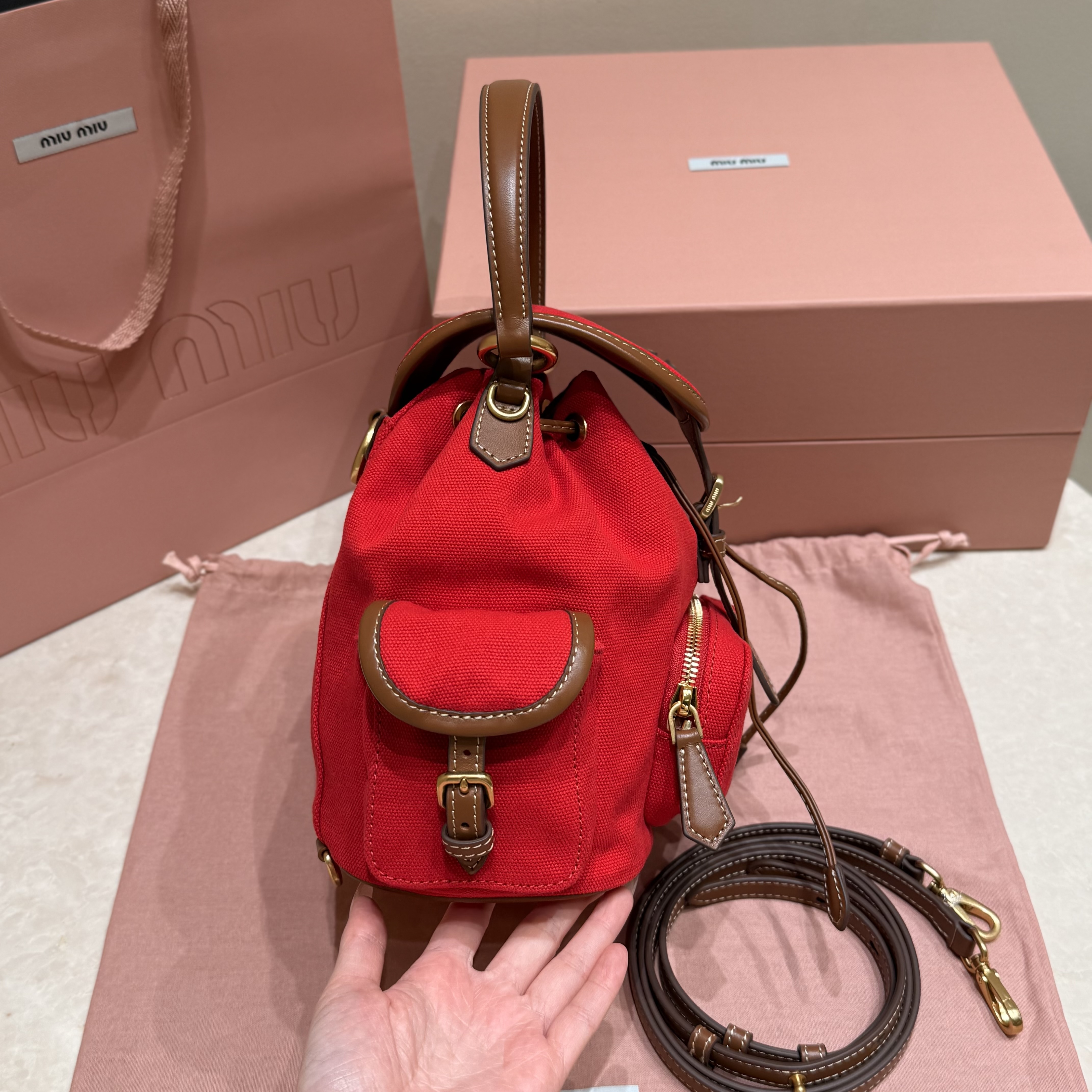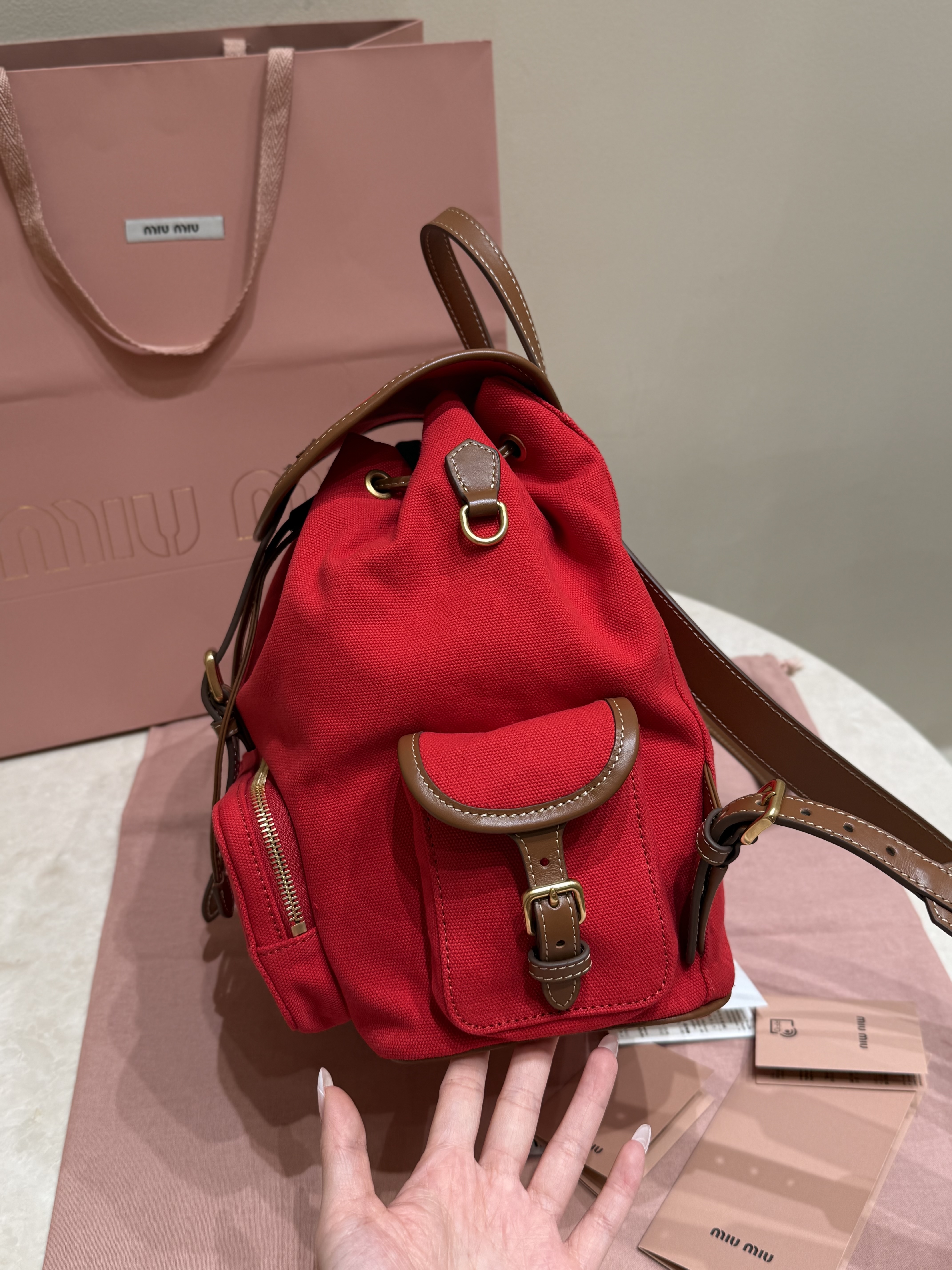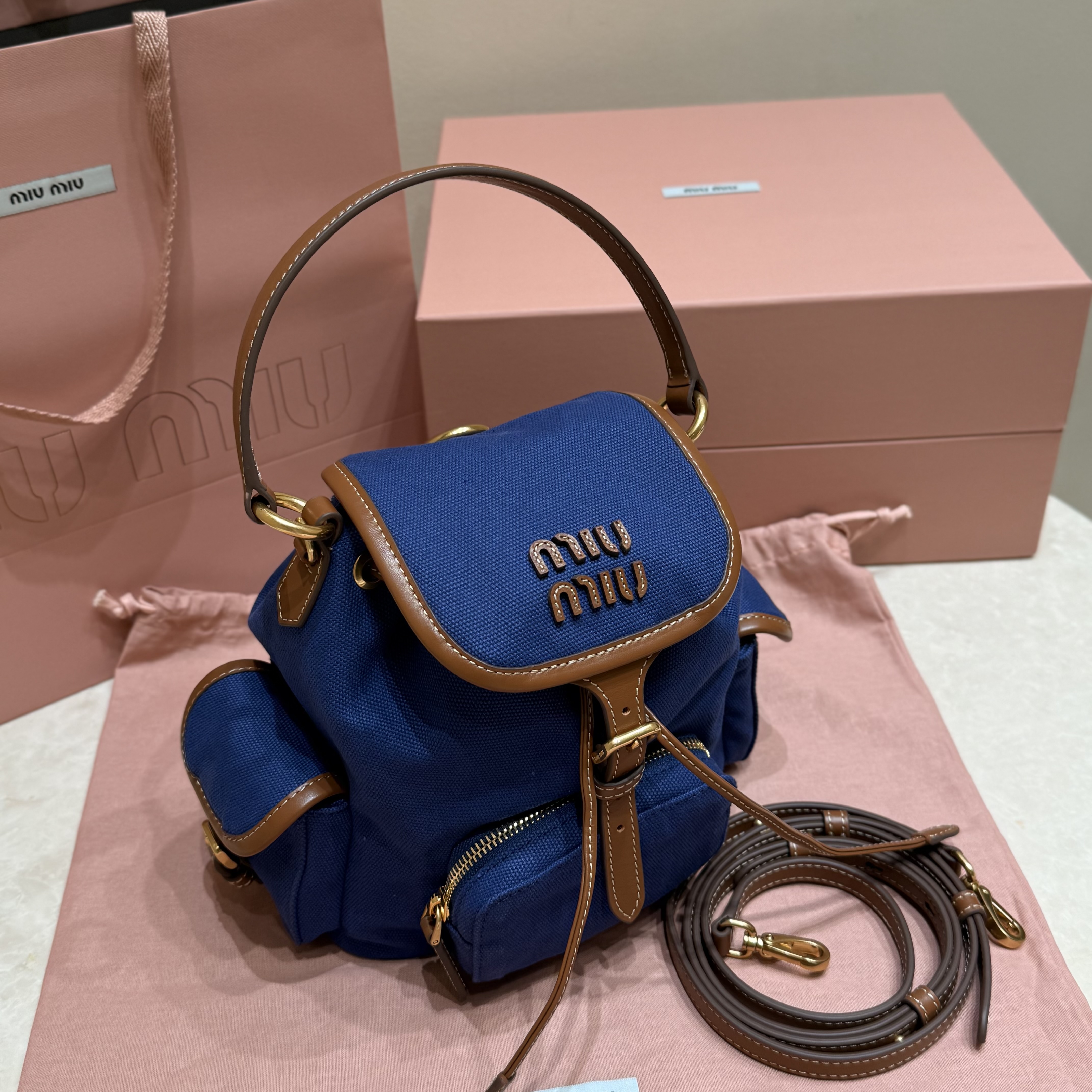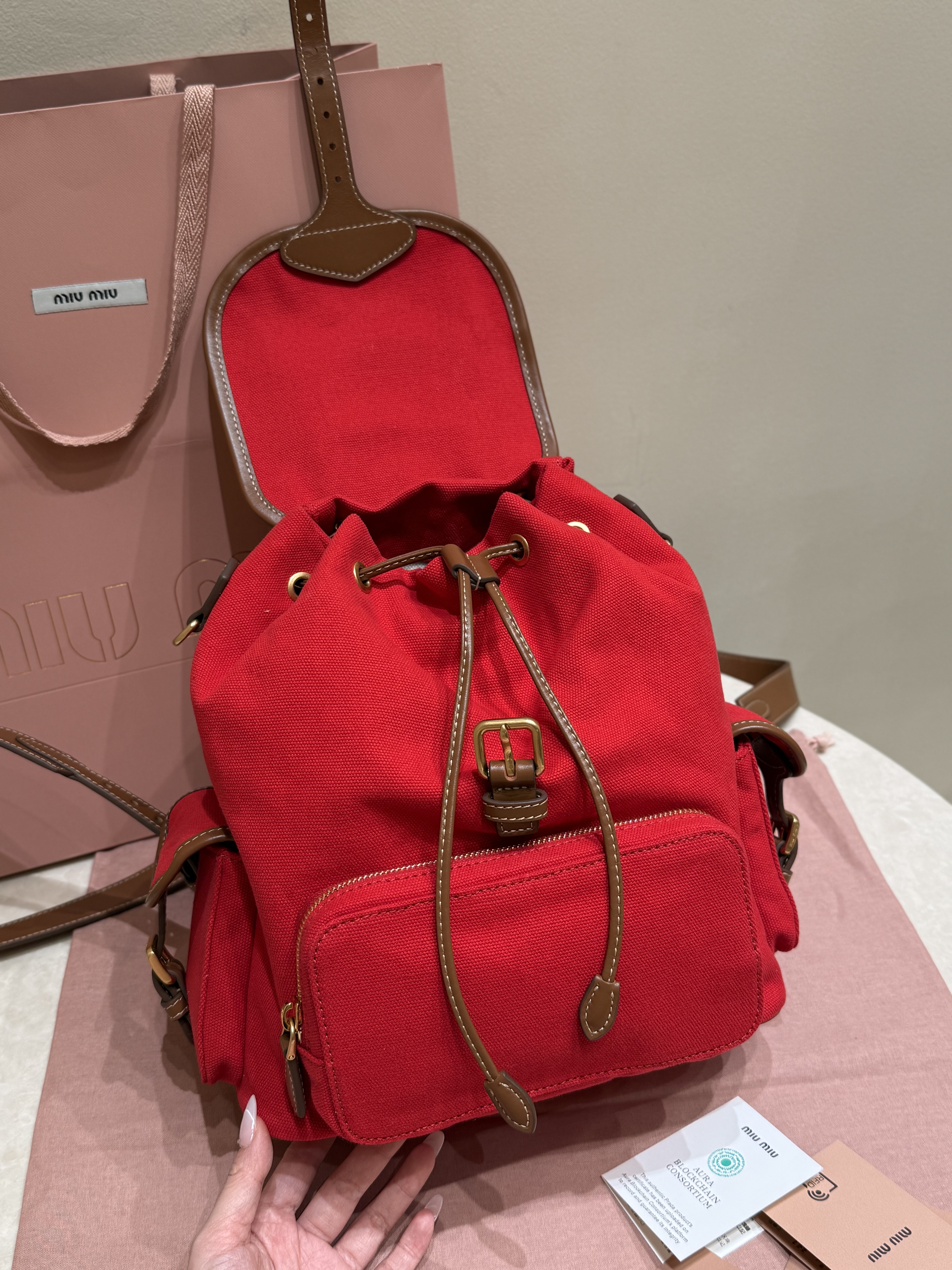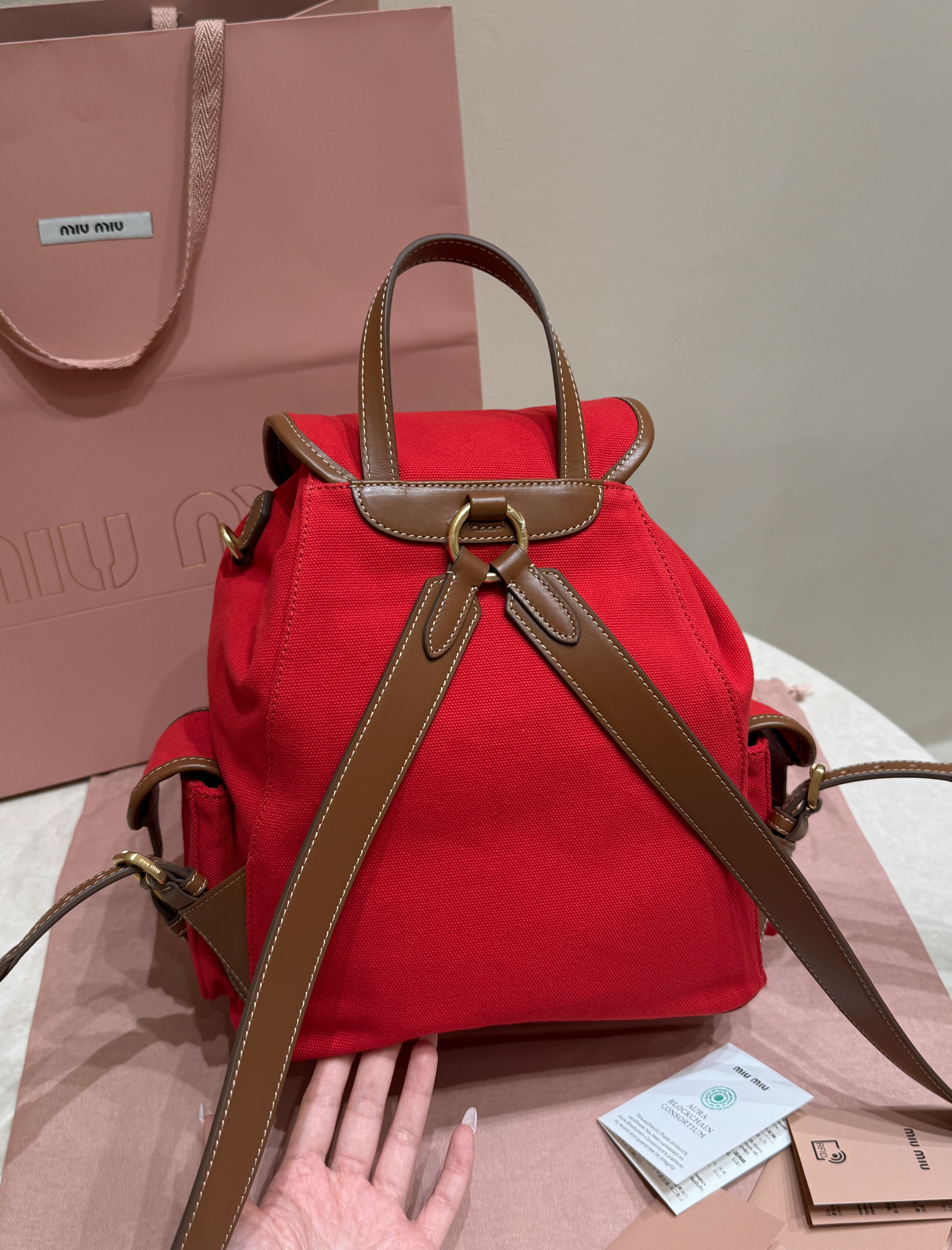 Рюкзак Miu Miu из холста и кожи, вдохновленный школьной эстетикой, — это яркий пример сочетания ремесленного мастерства и практичного дизайна. Этот аксессуар отражает современный и игривый дух бренда, идеально подходя для тех, кто ценит стиль и функциональность в одном изделии.