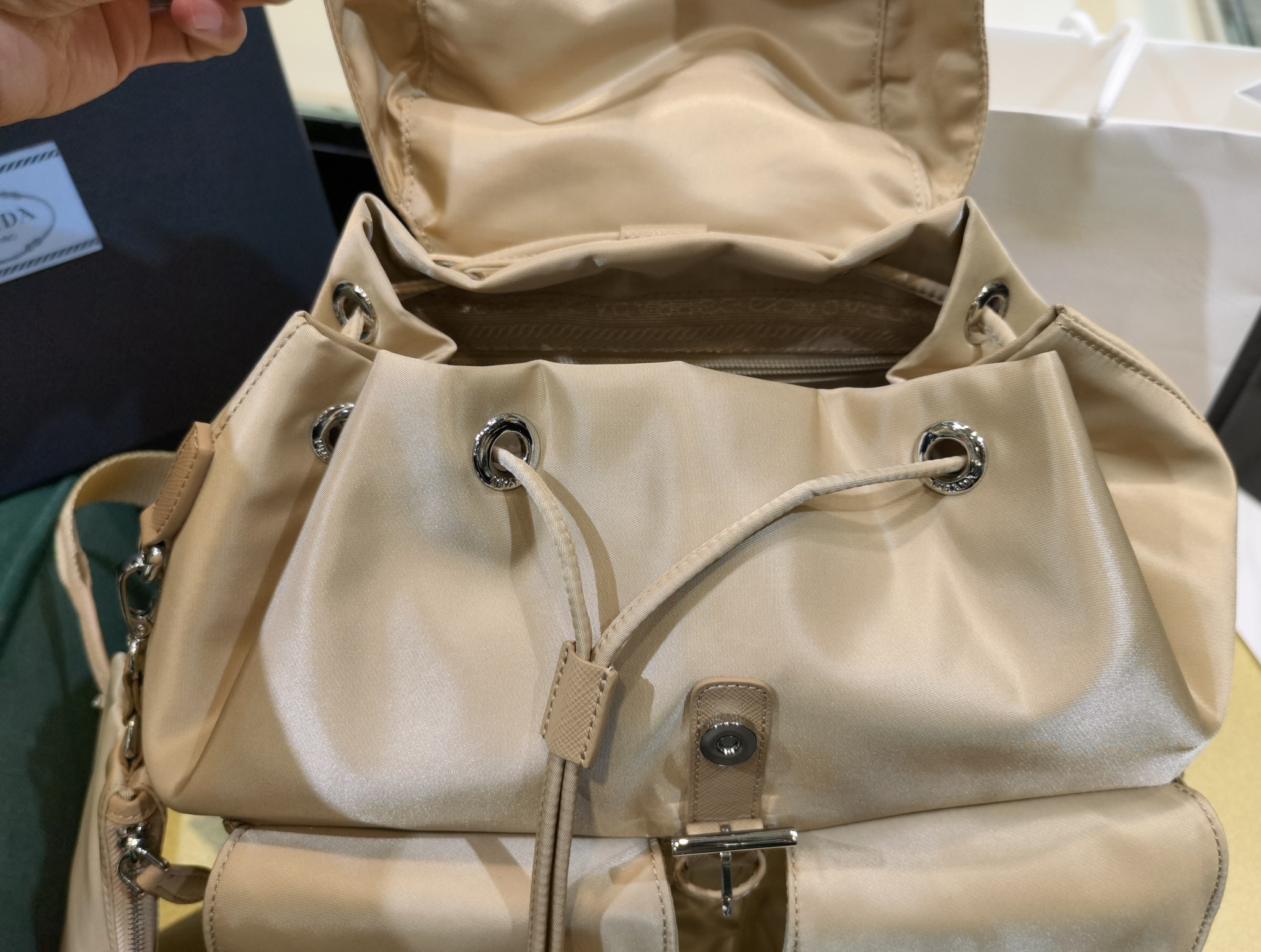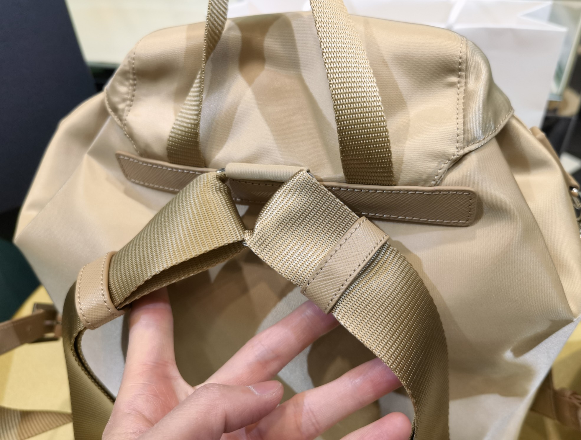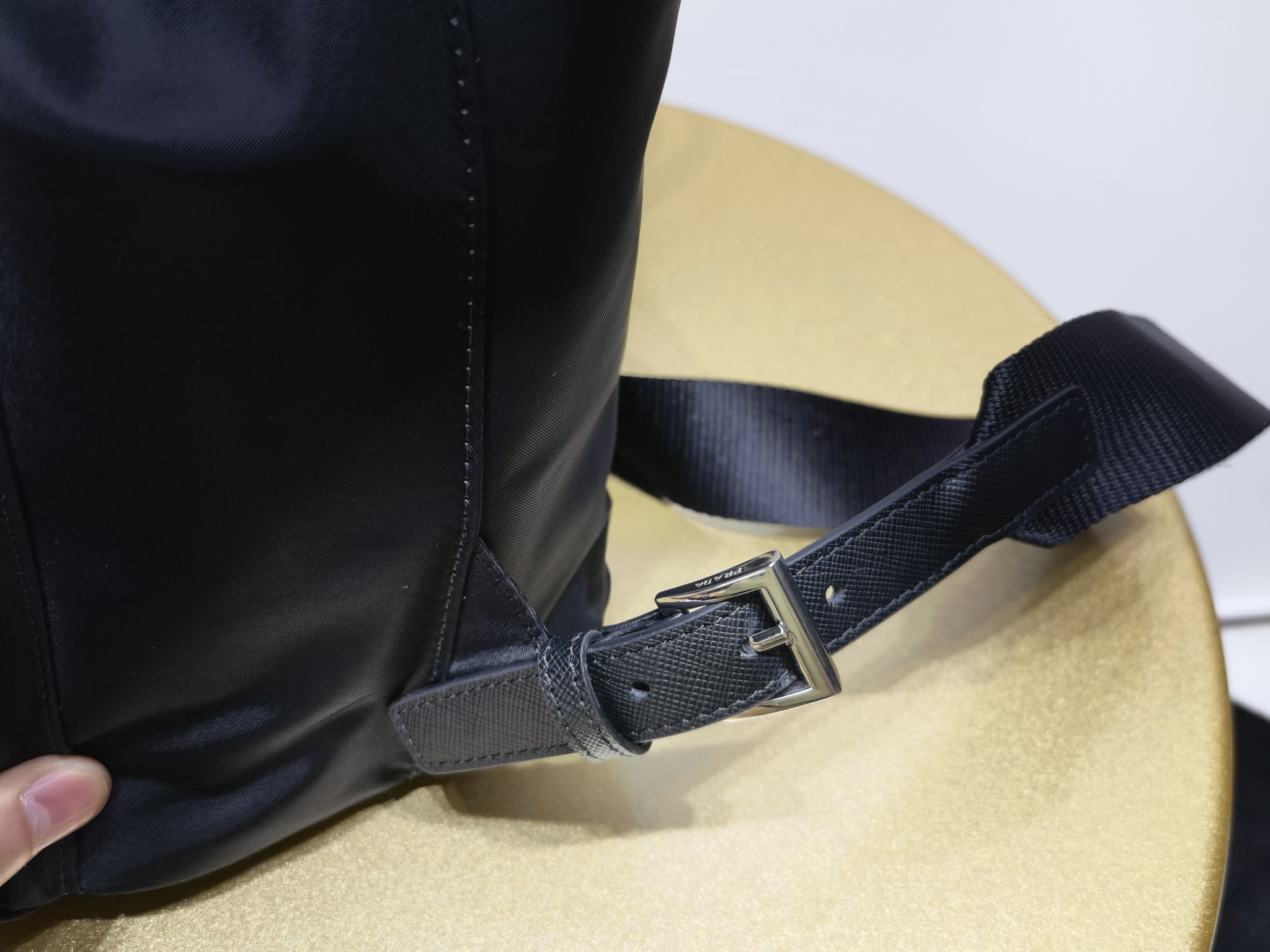 Этот рюкзак от Prada сочетает в себе современный дизайн и классическую элегантность. Использование ткани Re-Nylon подчеркивает экологичность продукта, так как этот материал производится из переработанных материалов. Кожа Saffiano, известная своей прочностью и стойкостью к износу, добавляет рюкзаку роскоши и долговечности.