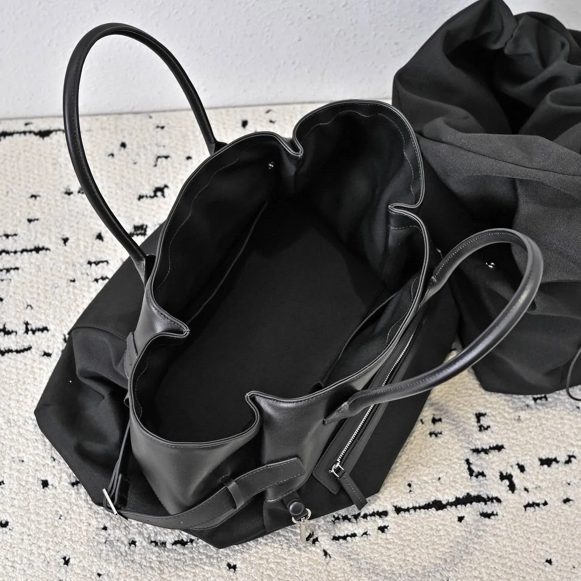 Ощутите минималистичный шик с сумкой-тоут ROW Margaux 17. Эта большая сумка, вывернутая наизнанку, выполнена из тактильного нейлона и кожи, создавая неповторимый образ. Её лаконичная форма и продуманные детали, такие как внешние карманы и боковые завязки, делают её идеальным аксессуаром для современной женщины.