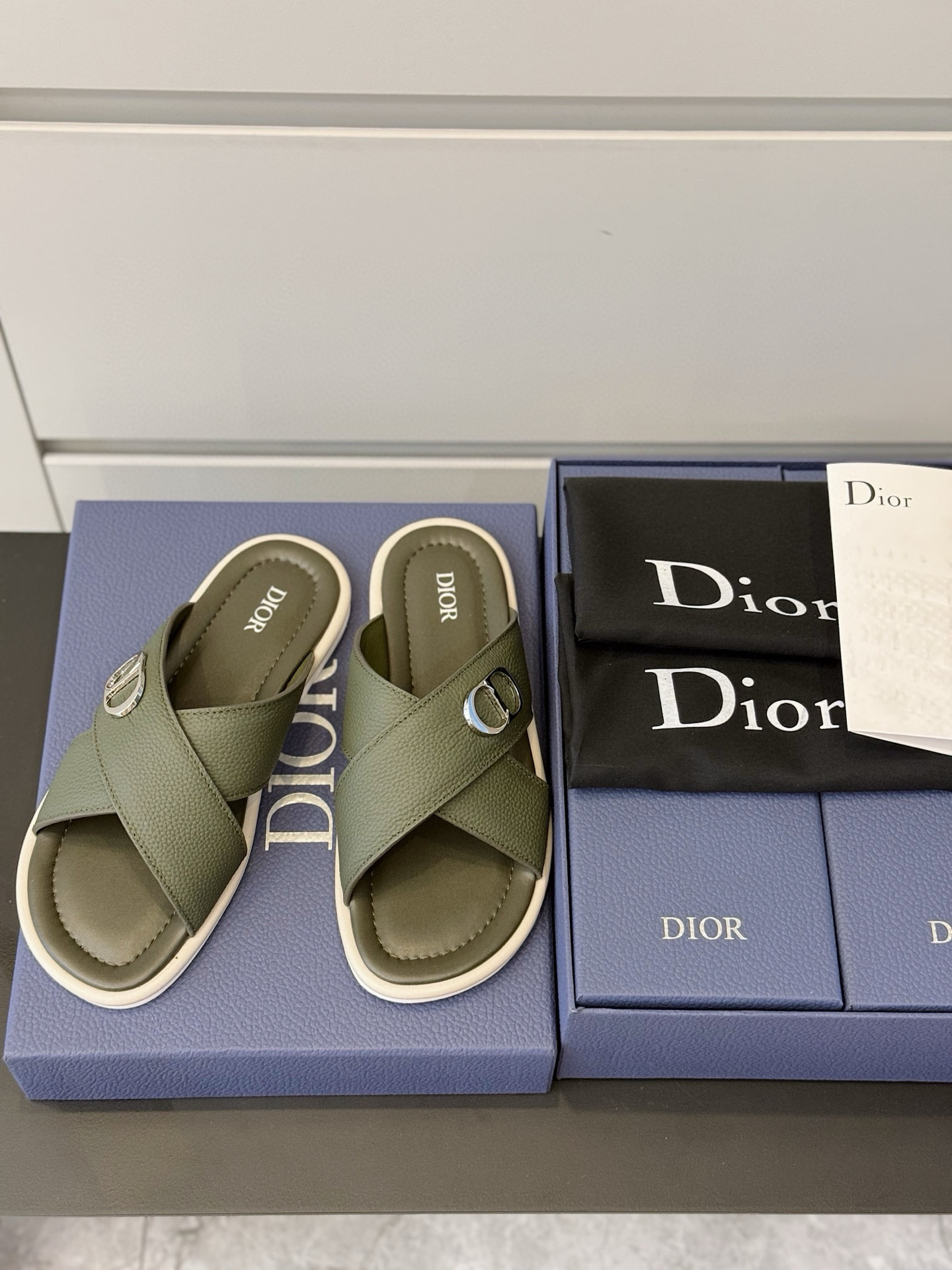 CHRISTIAN DIOR Мужские шлёпанцы из кожи Aqua
