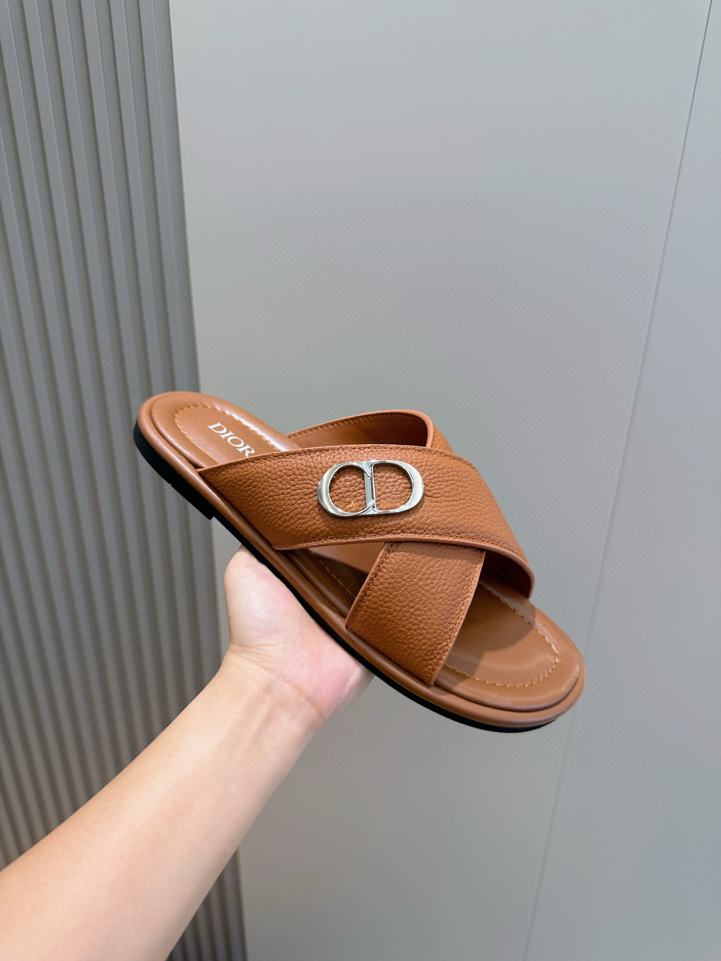 Стильные и элегантные тапки-шлёпанцы Dior — воплощение премиального комфорта и утончённого дизайна. Модель выполнена из высококачественной натуральной кожи с фактурной поверхностью, что обеспечивает долговечность и приятные тактильные ощущения. Крестовые ремешки украшены фирменным логотипом Dior, придавая обуви узнаваемый и статусный вид.